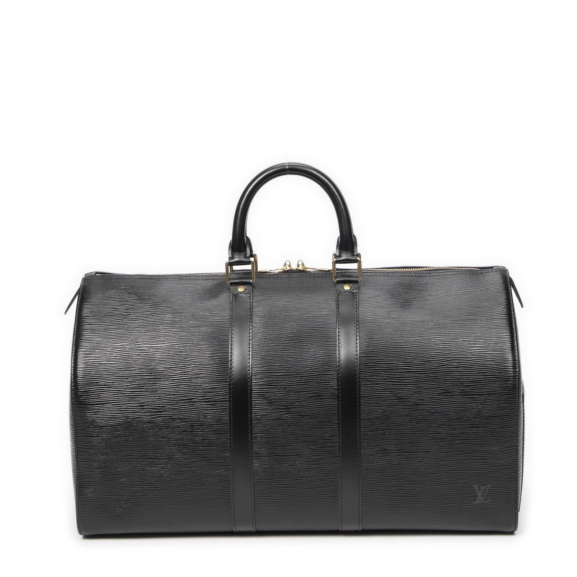 Louis Vuitton Travel Bag Keepall 45 in Black Epi and Golden Brass hardware. The product is in Excellent Condition (A).