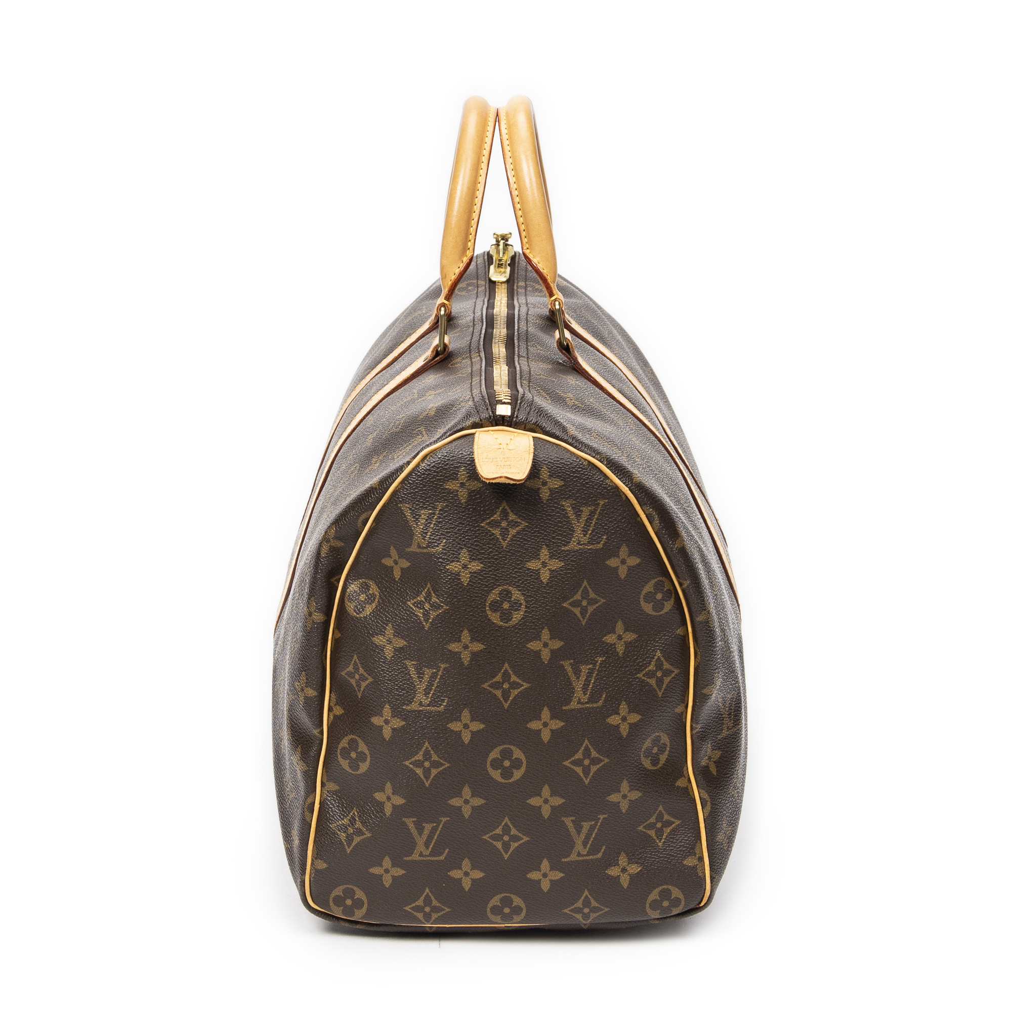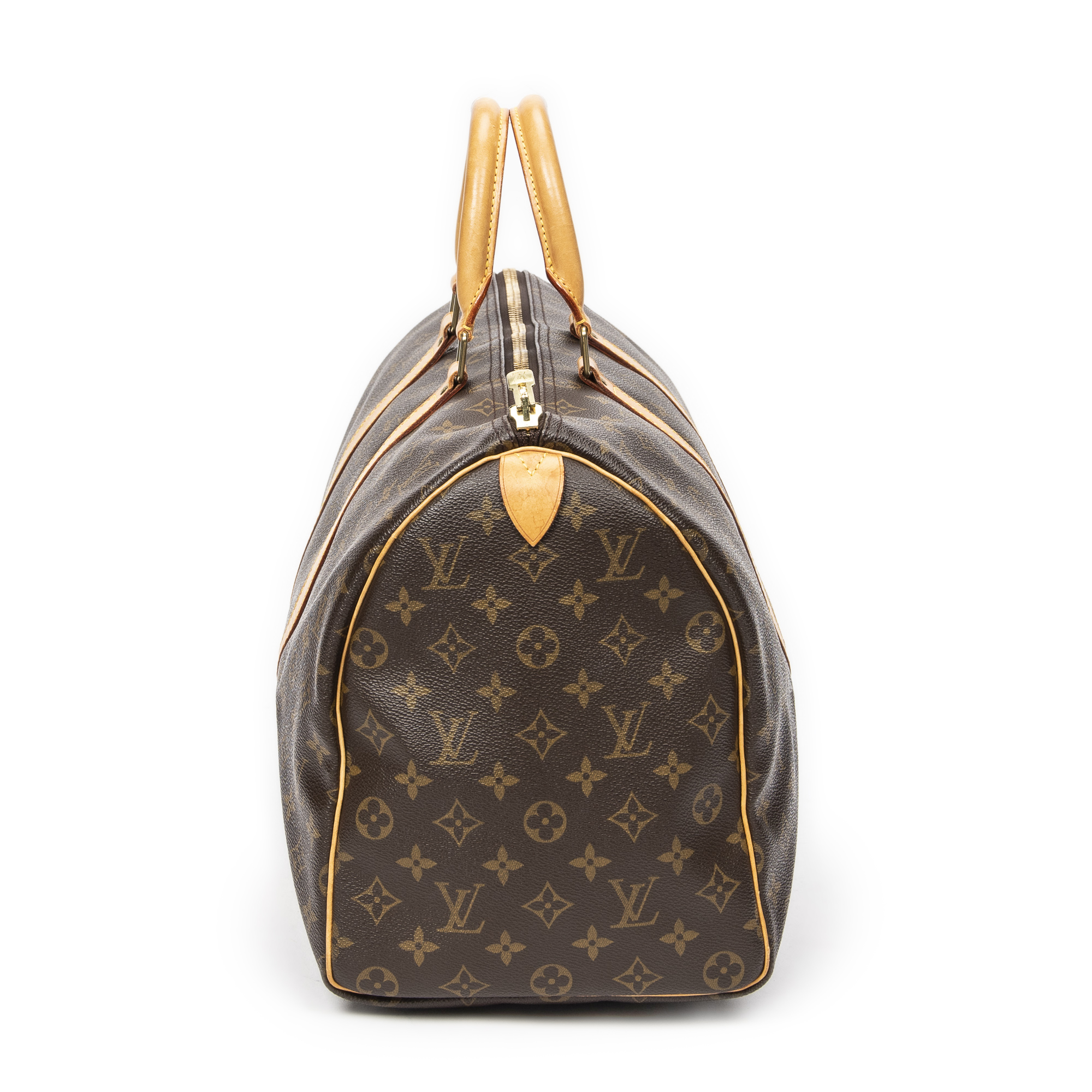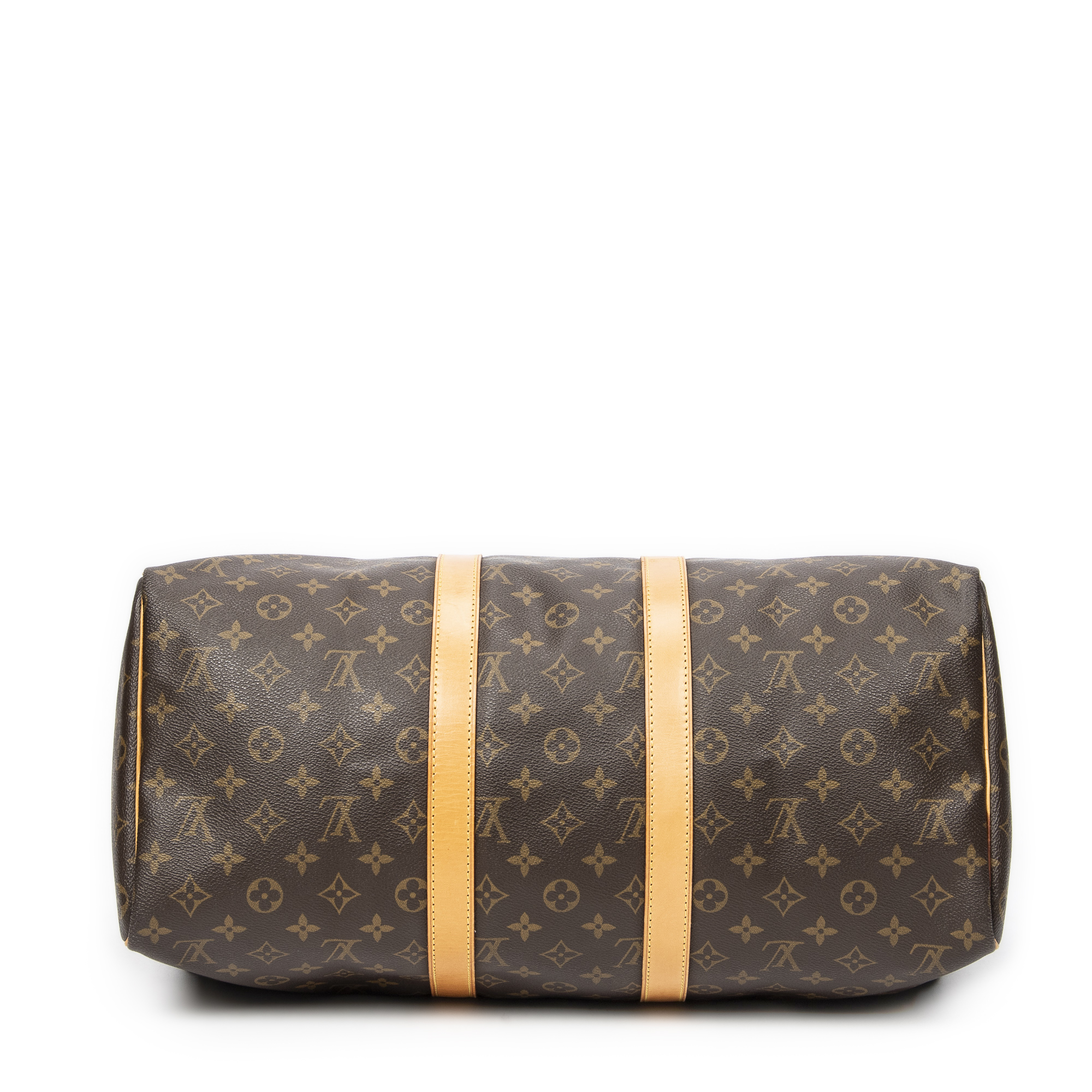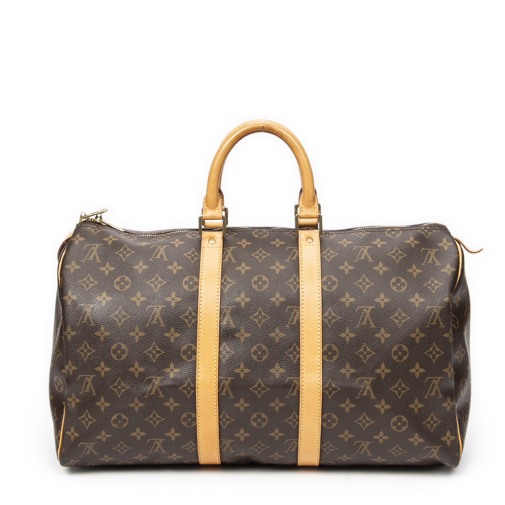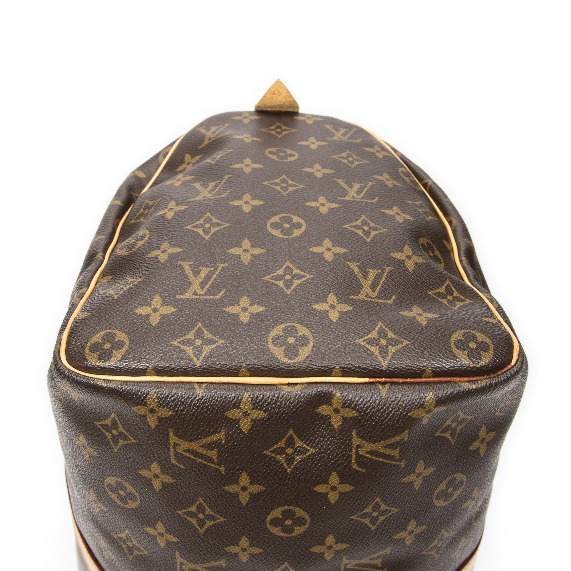 Louis Vuitton Travel Bag Keepall 45 in Brown Monogram Canvas and Golden Brass hardware. The product is in Excellent Condition (A).