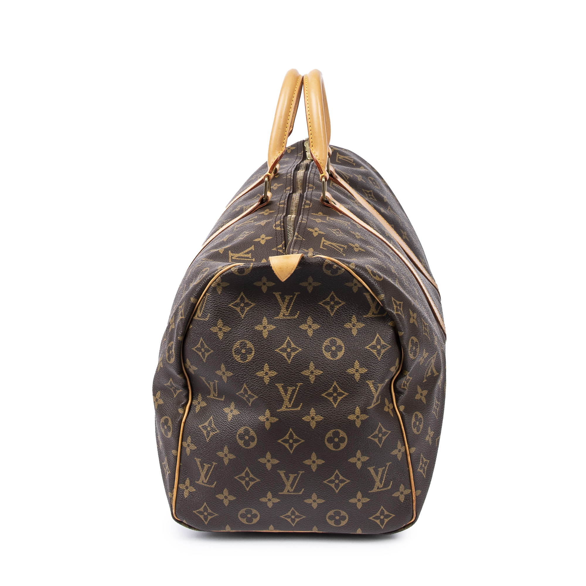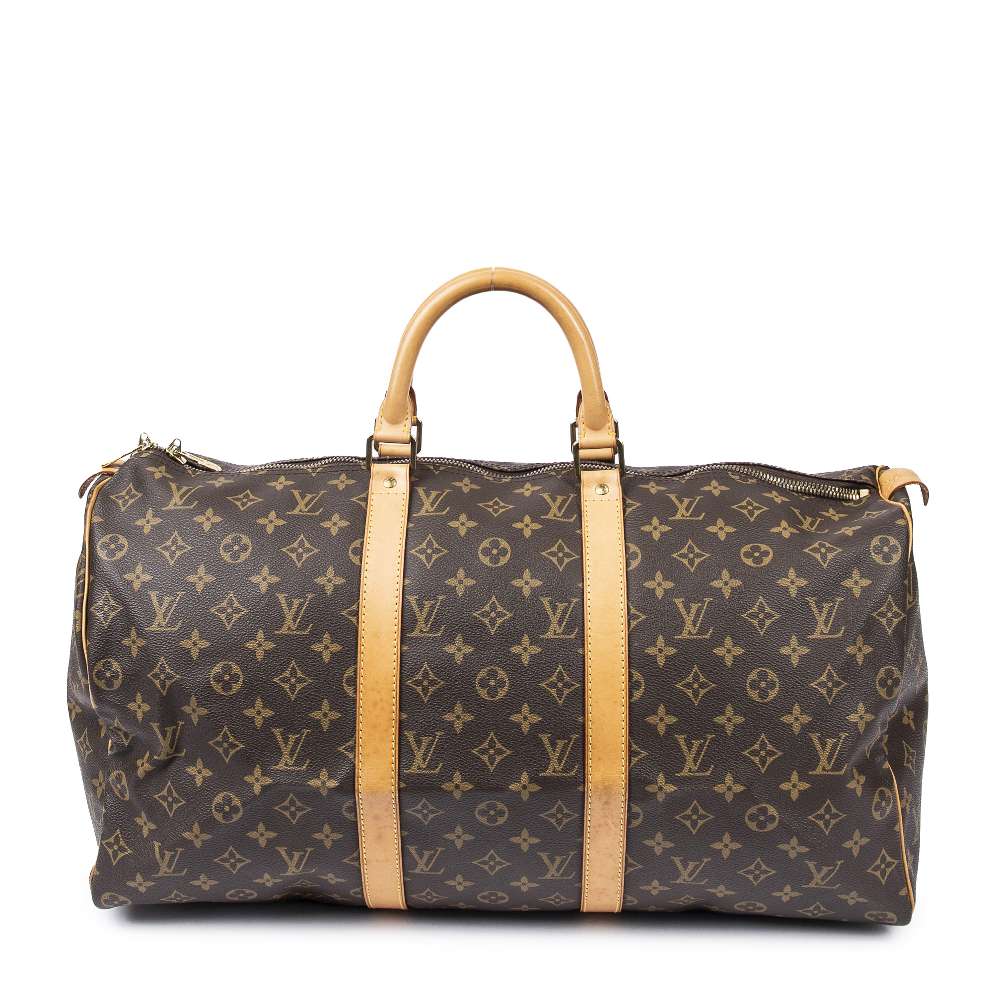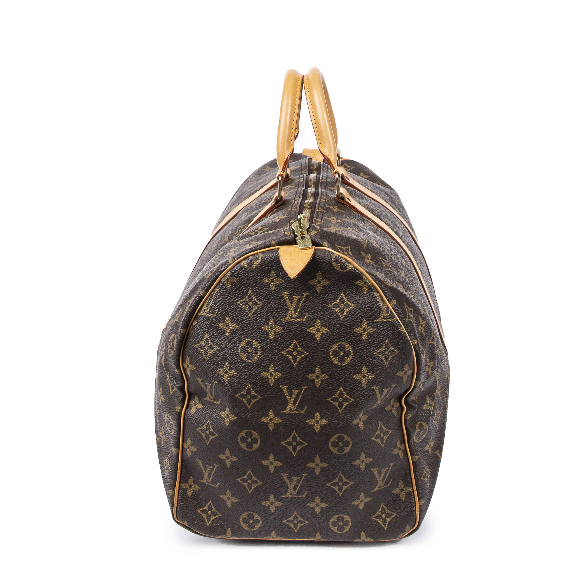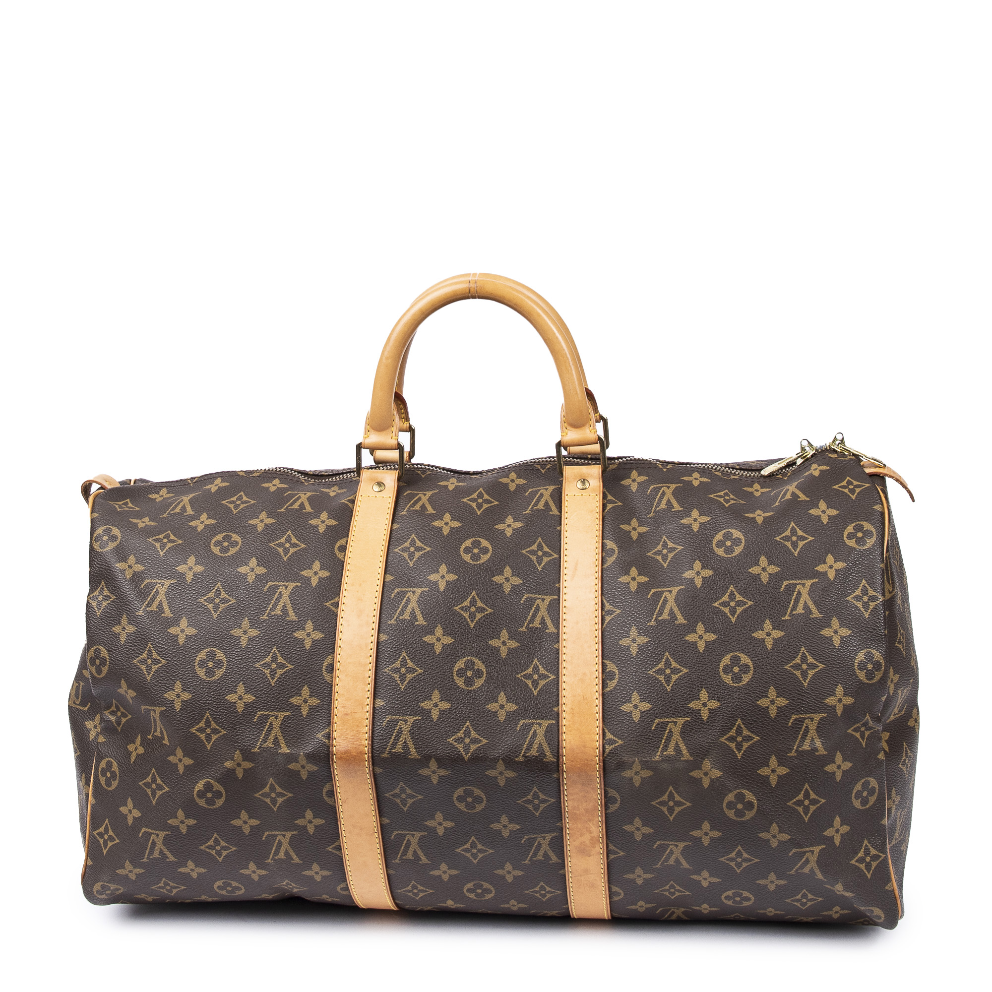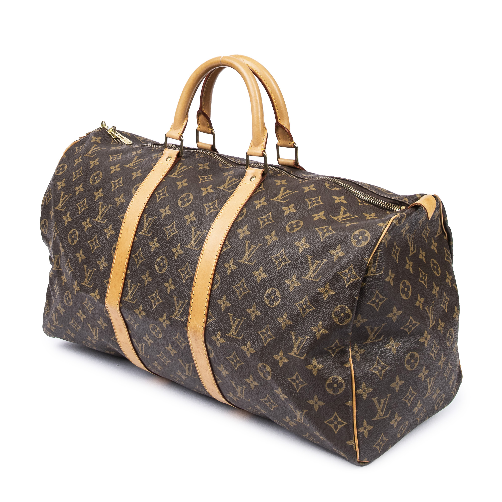Louis Vuitton Travel Bag Keepall 50 in Brown Monogram Canvas and Golden Brass hardware. The product is in Excellent Condition (A).