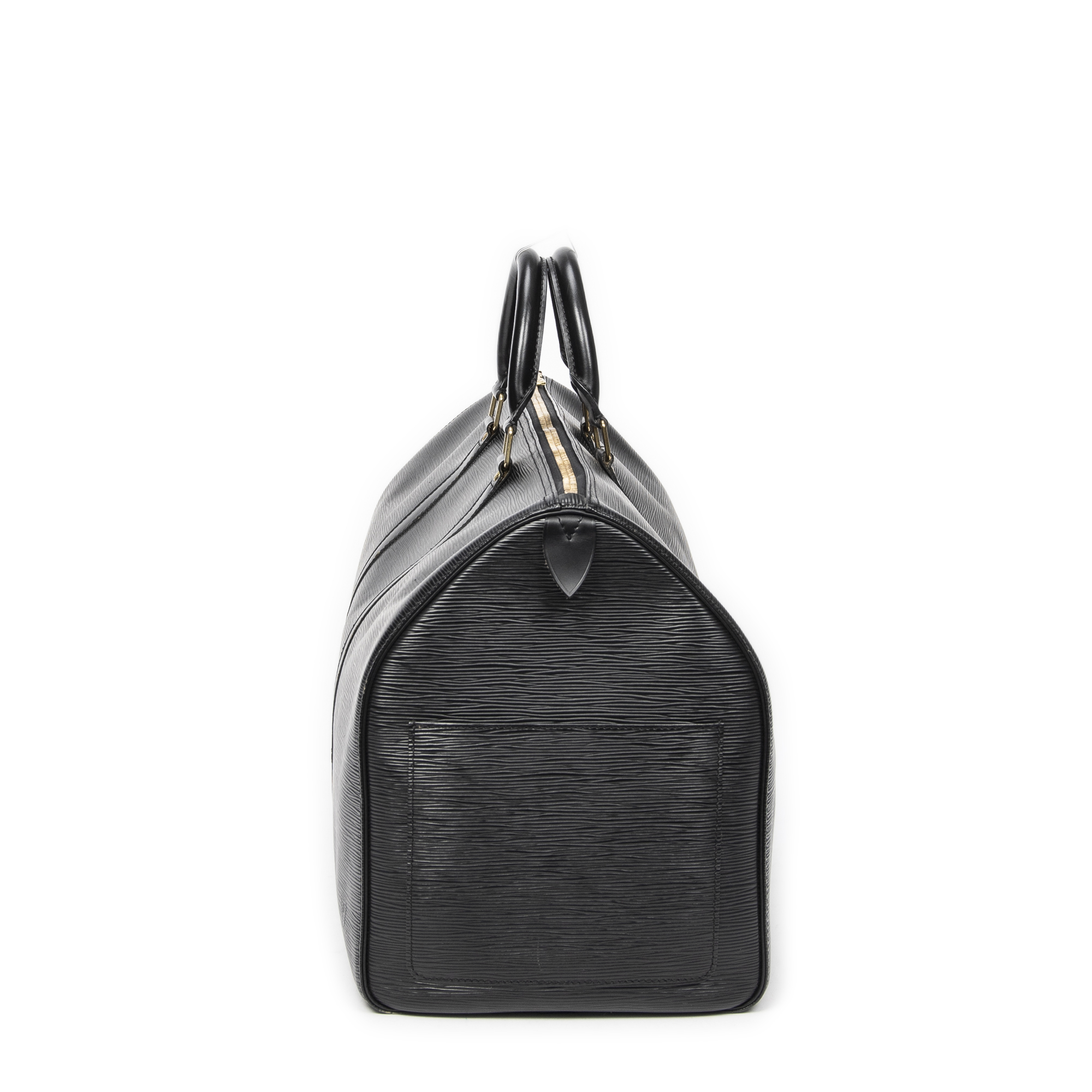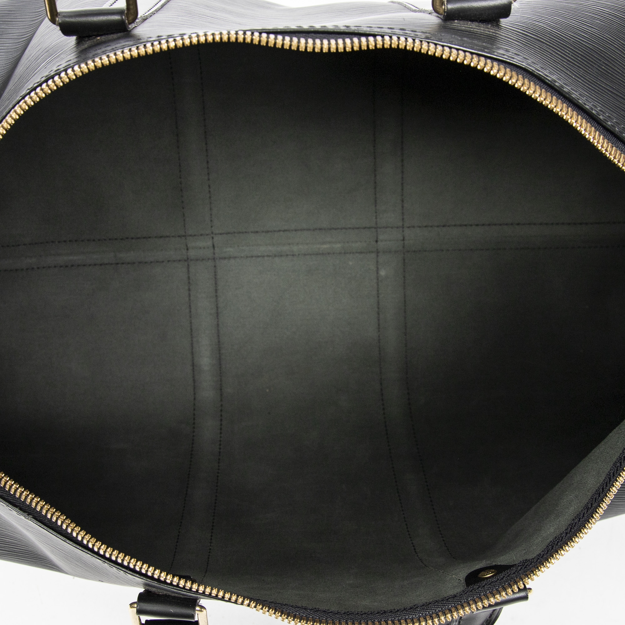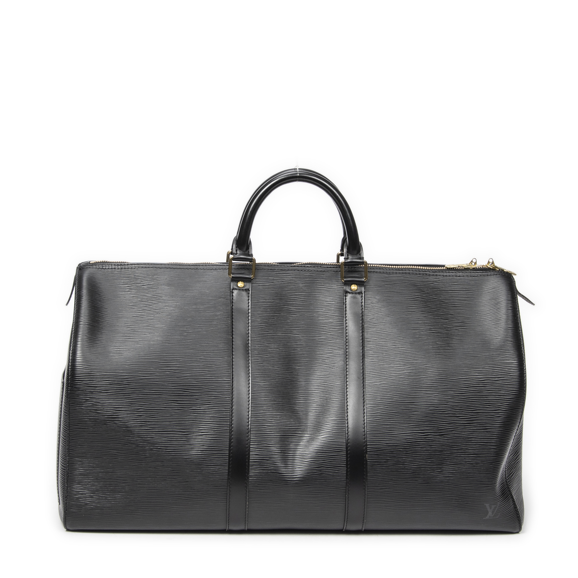 Louis Vuitton Travel Bag Keepall 50 in Black Epi and Golden Brass hardware. The product is in Excellent Condition (A).