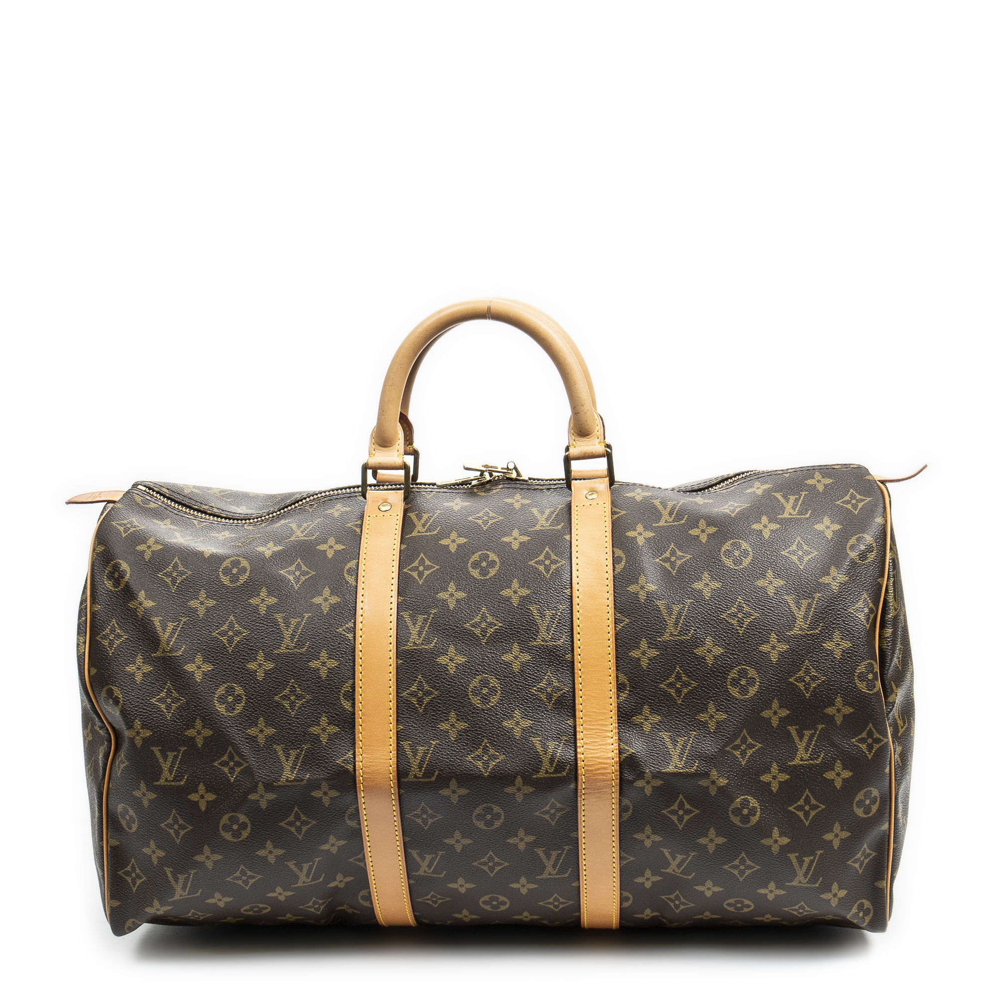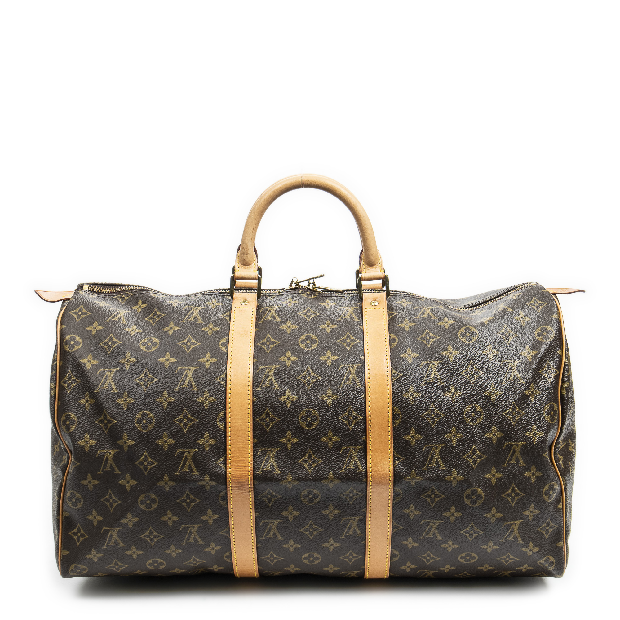 Description : Louis Vuitton Travel Bag Keepall 50 in Brown Monogram Canvas and Golden Brass hardware. The product is in Excellent Condition (A). Dimensions: 50x26x22 cm SKU: AAZ1117 Serial number: VI874 (April 1987) Accessories Included: Delivery: We have a 5 to 7 business days delivery policy, hassle-free and duties/tariffs included! BrandCo Paris finds rare and top condition items at great deals, they are worth your patience! Shop with confidence - All BrandCo Paris items are carefully selected and authenticated by our team of experts. All the items come with an authenticity certificate and packaging delivered by BrandCo Paris. Item Condition Grading Table N (Like New) AA (Perfect Condition) A (Excellent Condition) AB (Very Good Condition) B (Good/Fair)