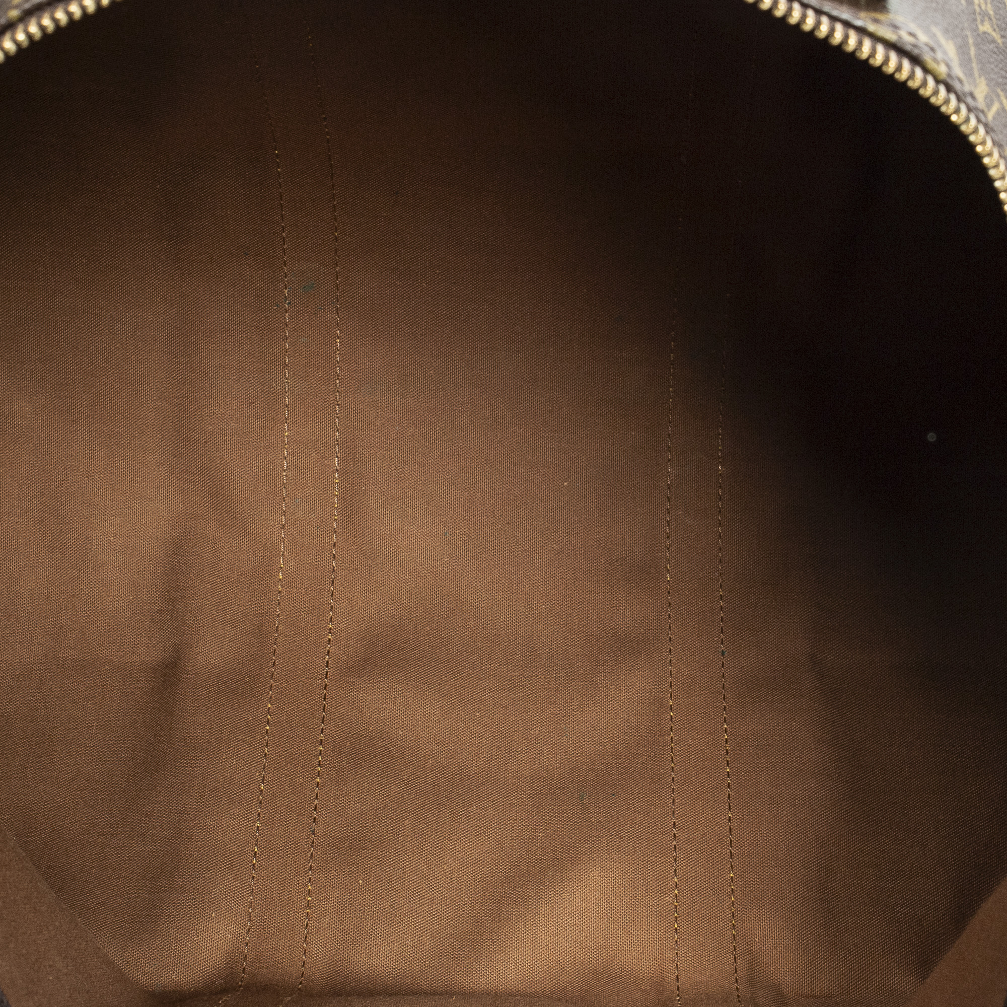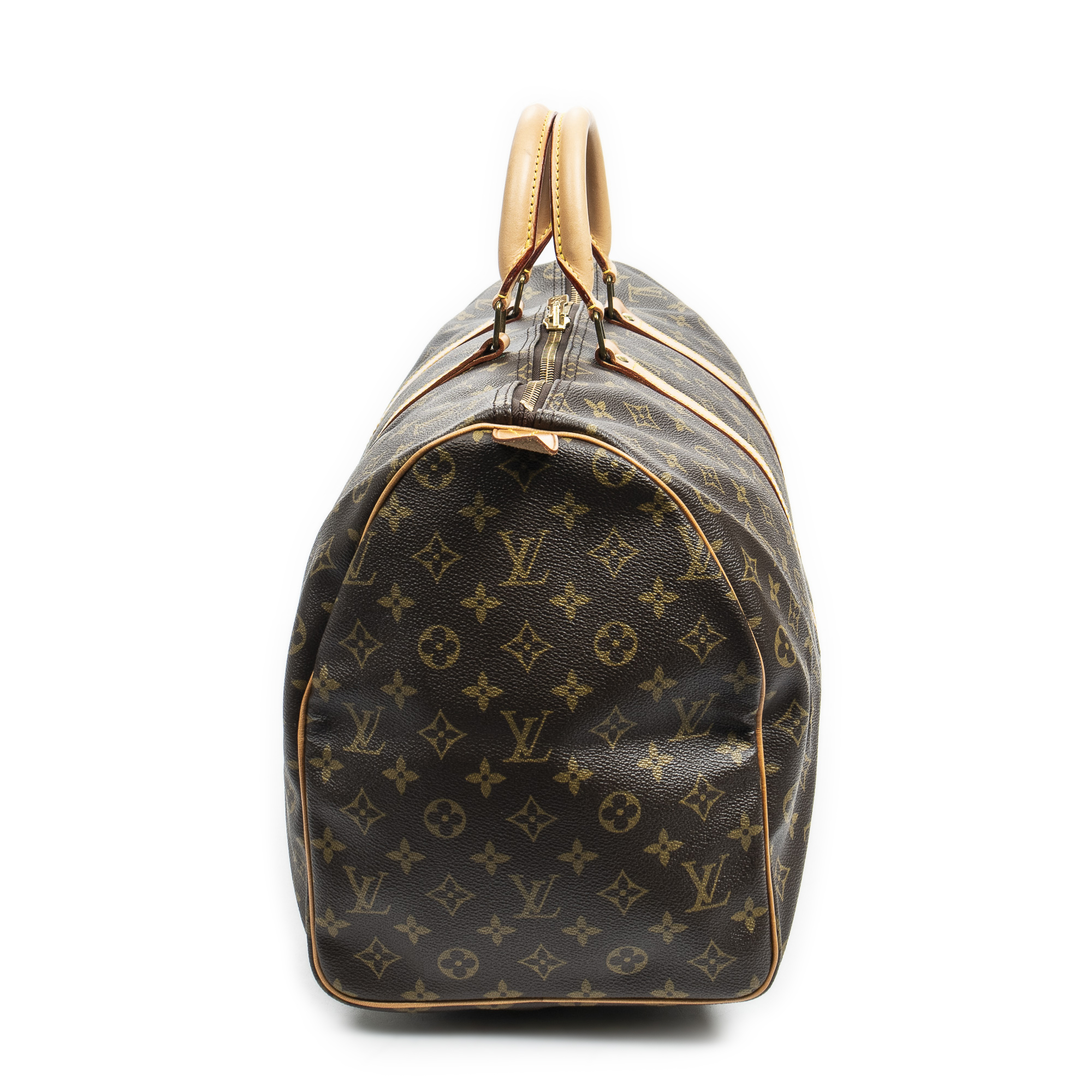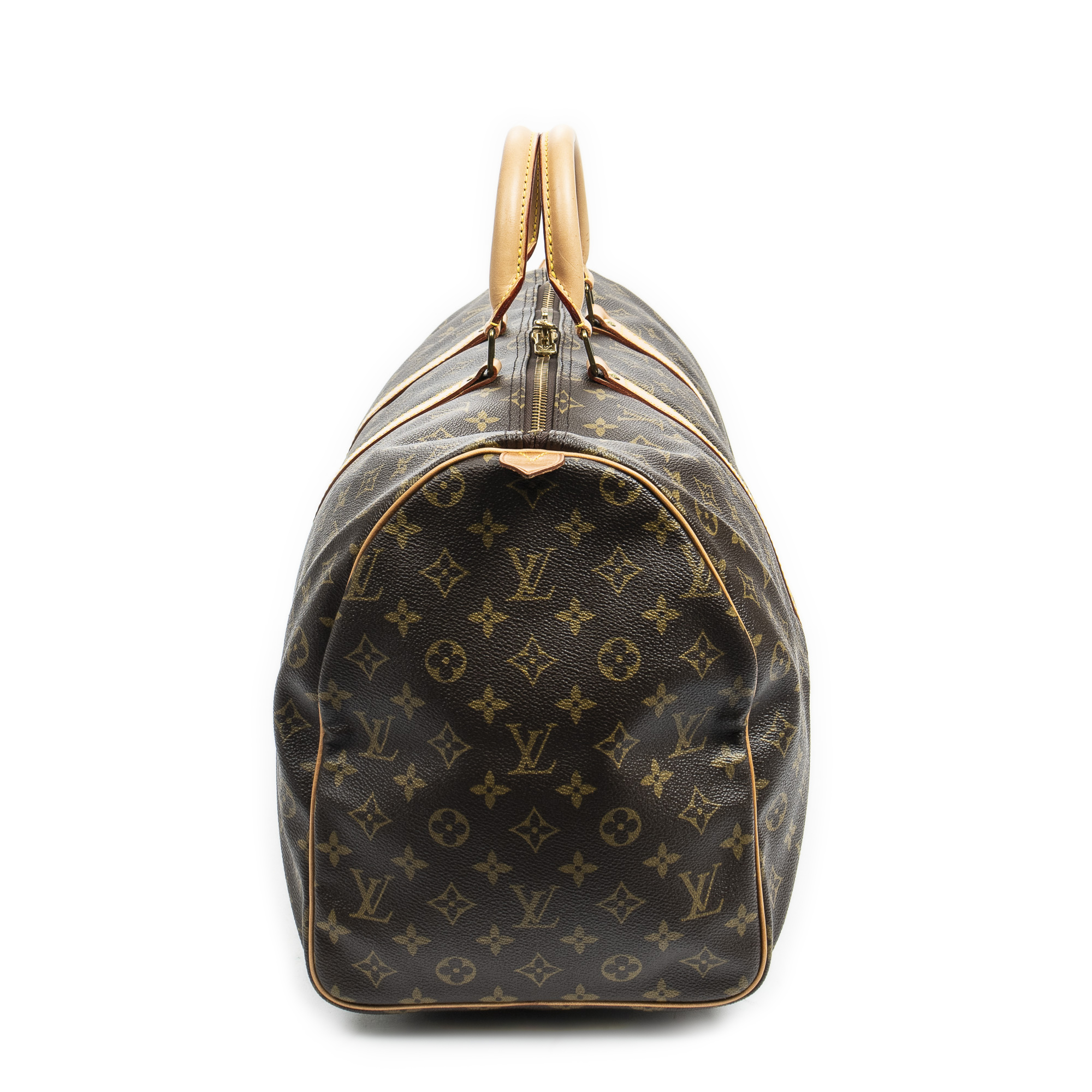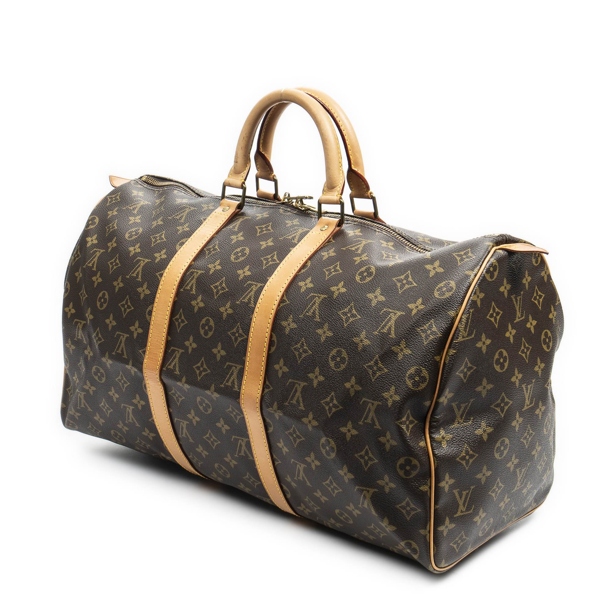 Louis Vuitton Travel Bag Keepall 50 in Brown Monogram Canvas and Golden Brass hardware. The product is in Excellent Condition (A).
