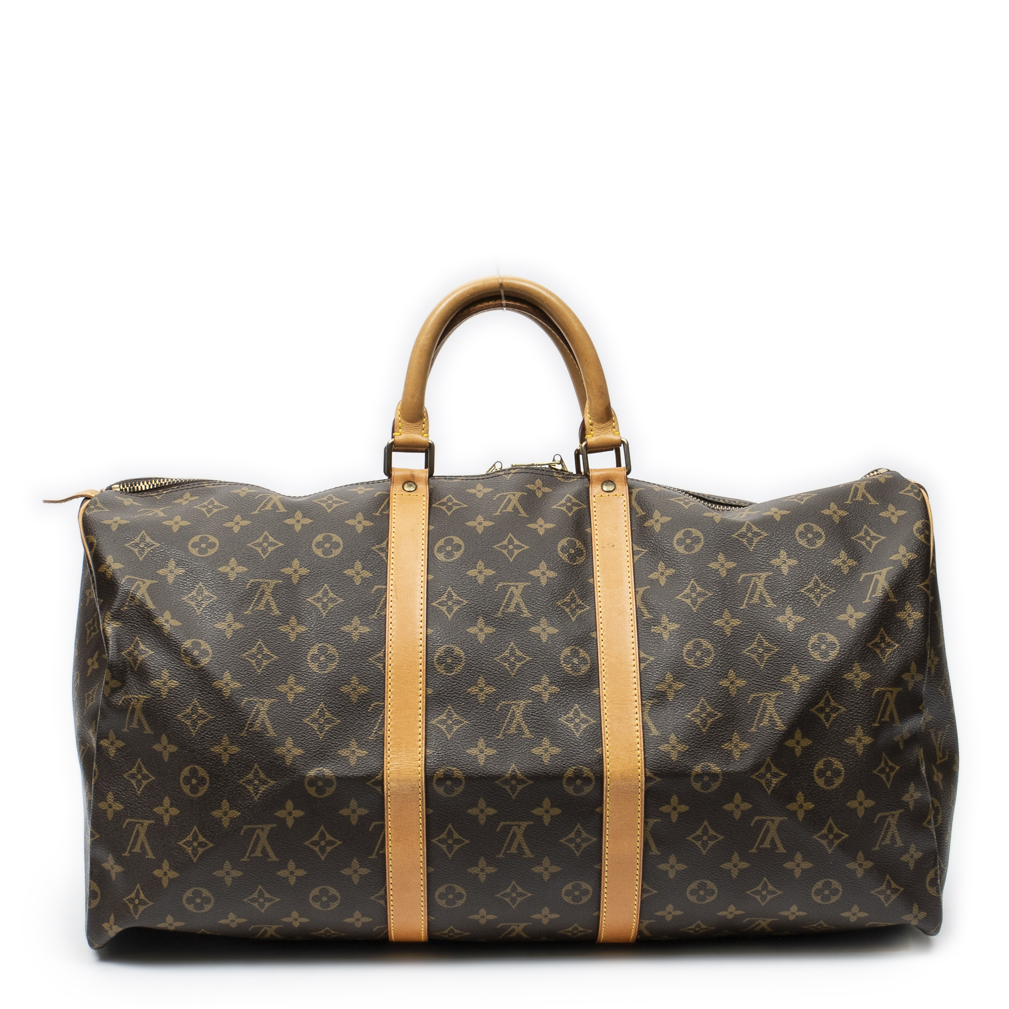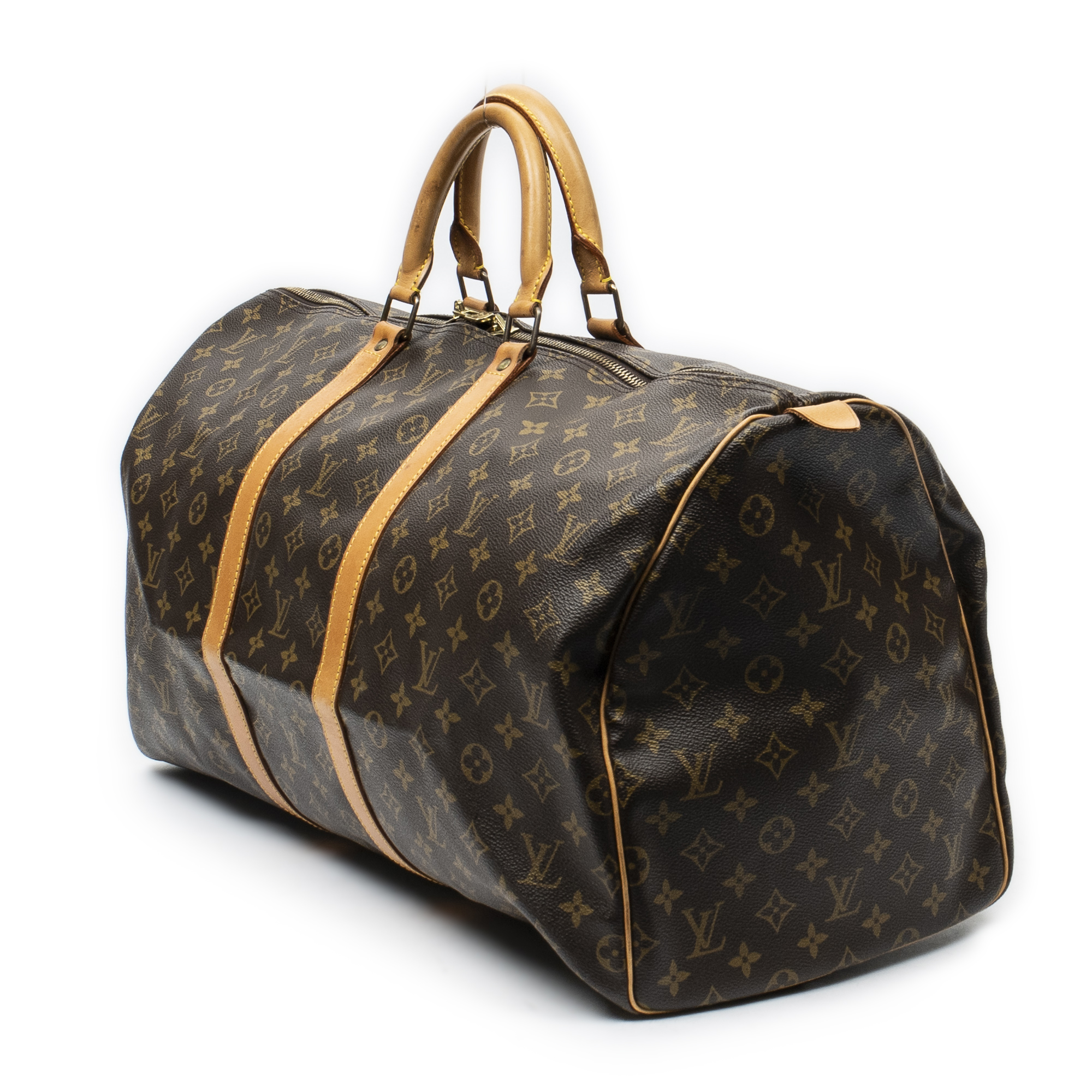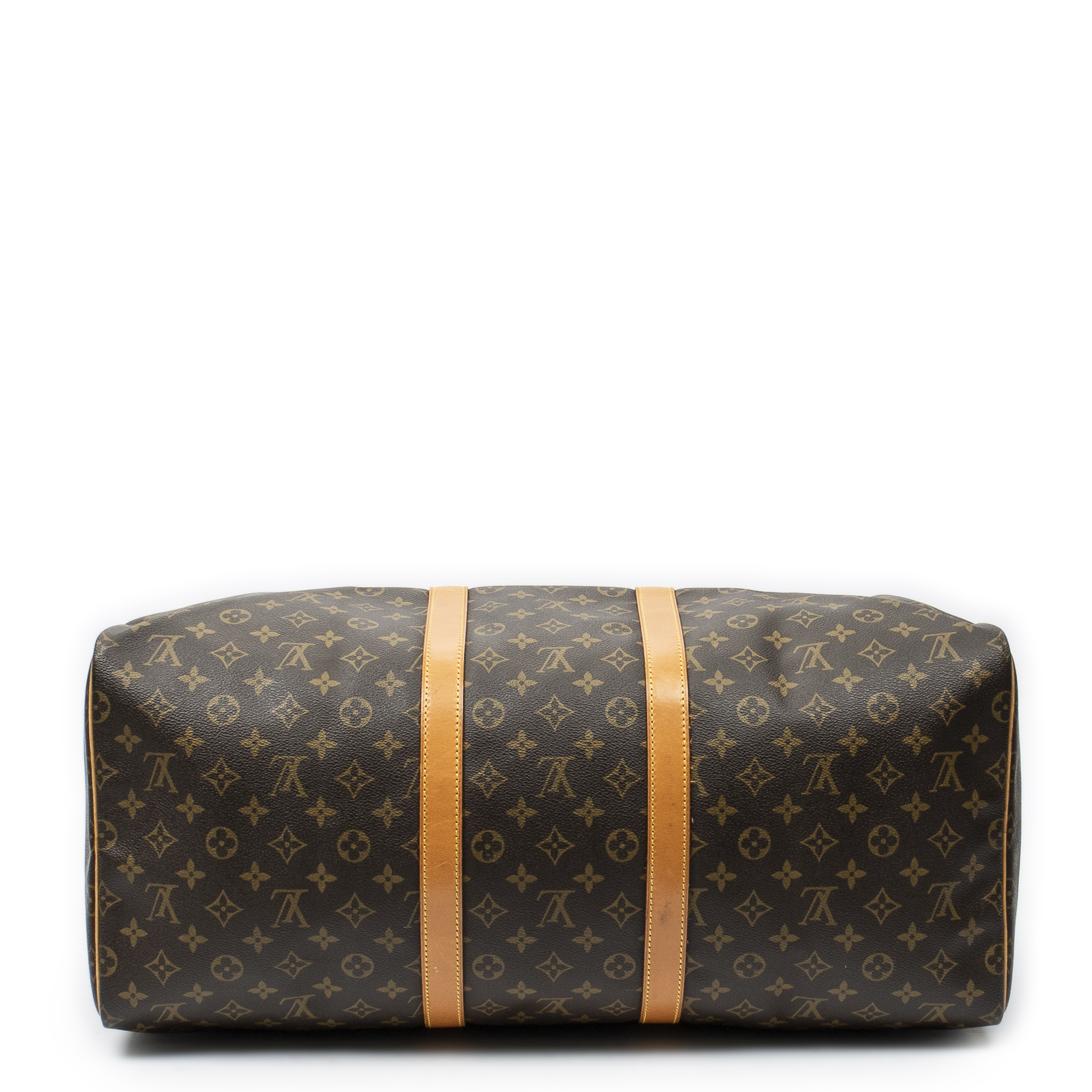 Louis Vuitton Travel Bag Keepall 55 in Brown Monogram Canvas and Golden Brass hardware. The product is in Excellent Condition (A).
