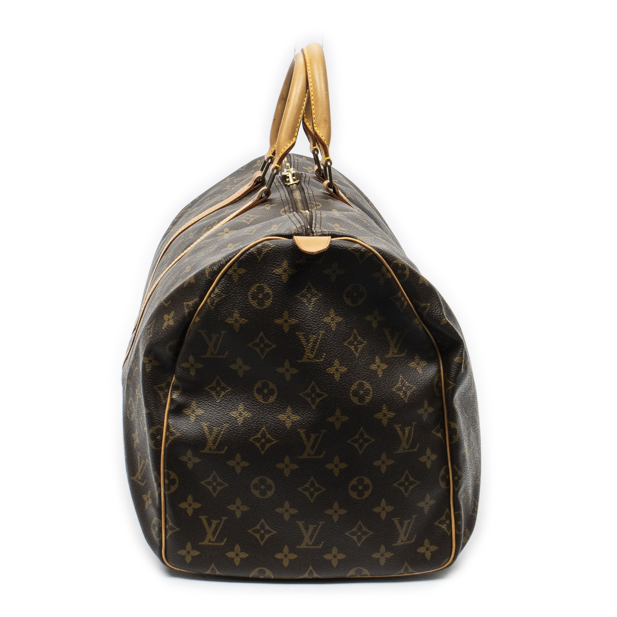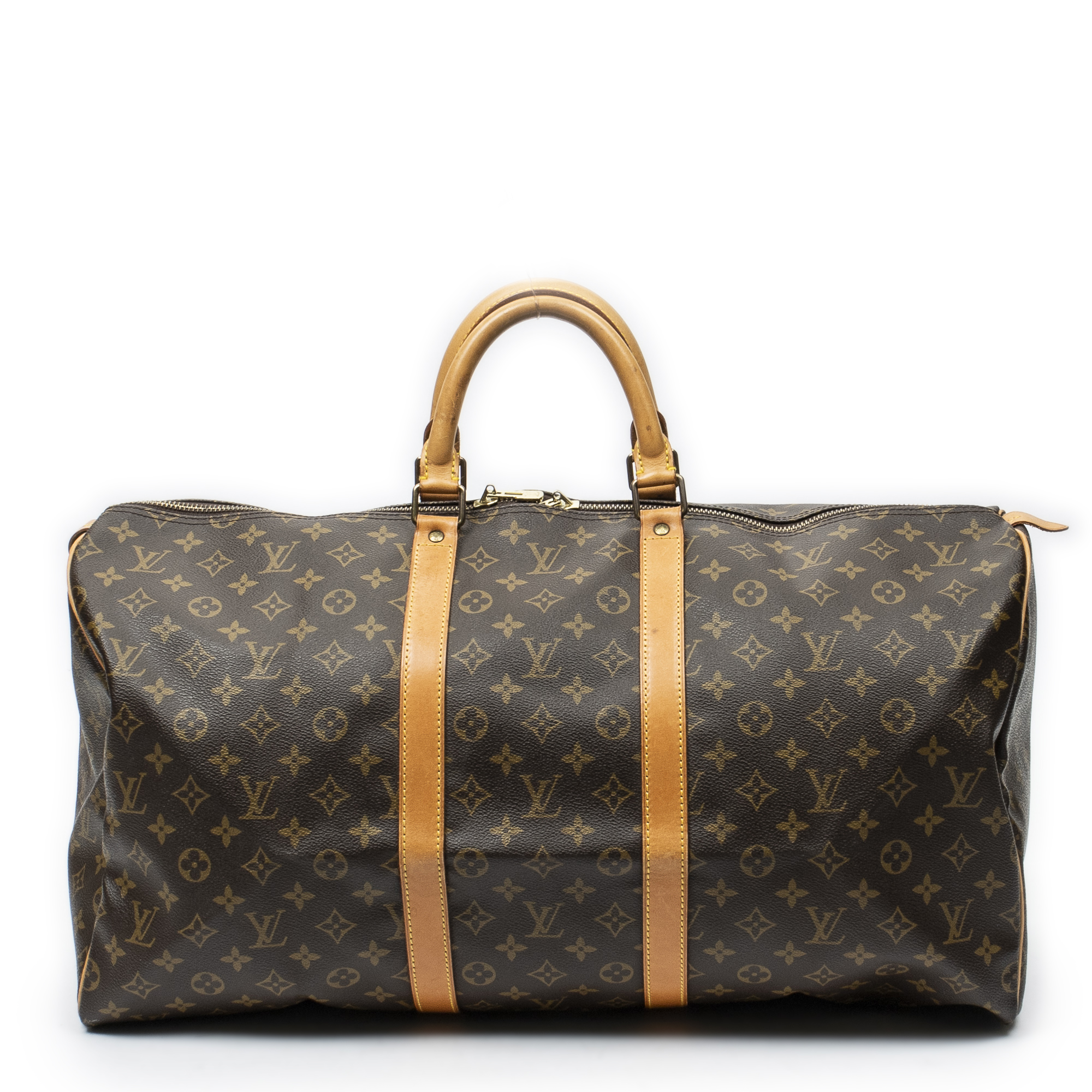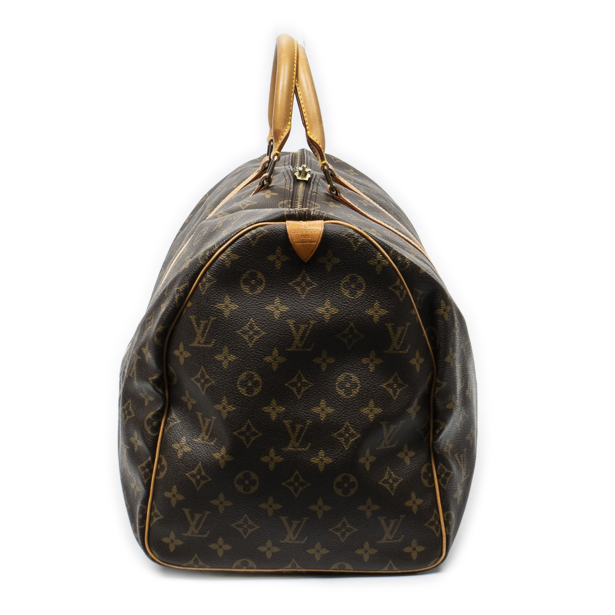 Louis Vuitton Travel Bag Keepall 55 in Brown Monogram Canvas and Golden Brass hardware. The product is in Excellent Condition (A).