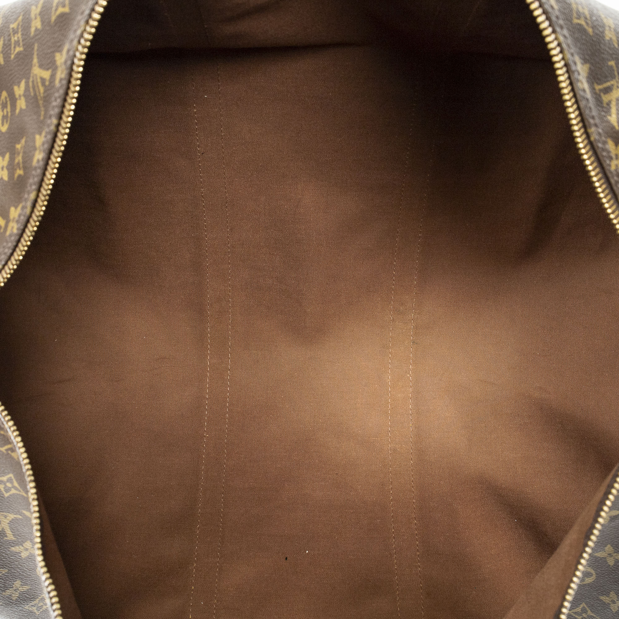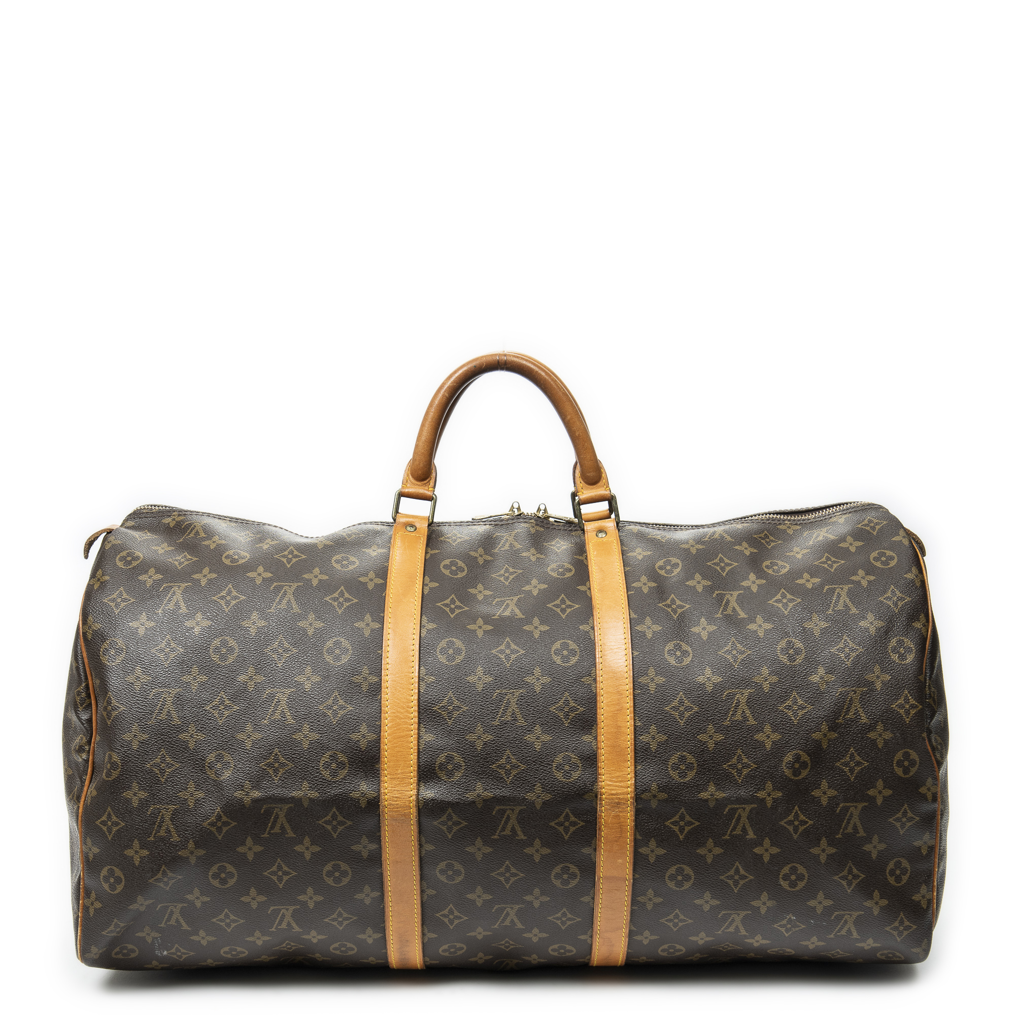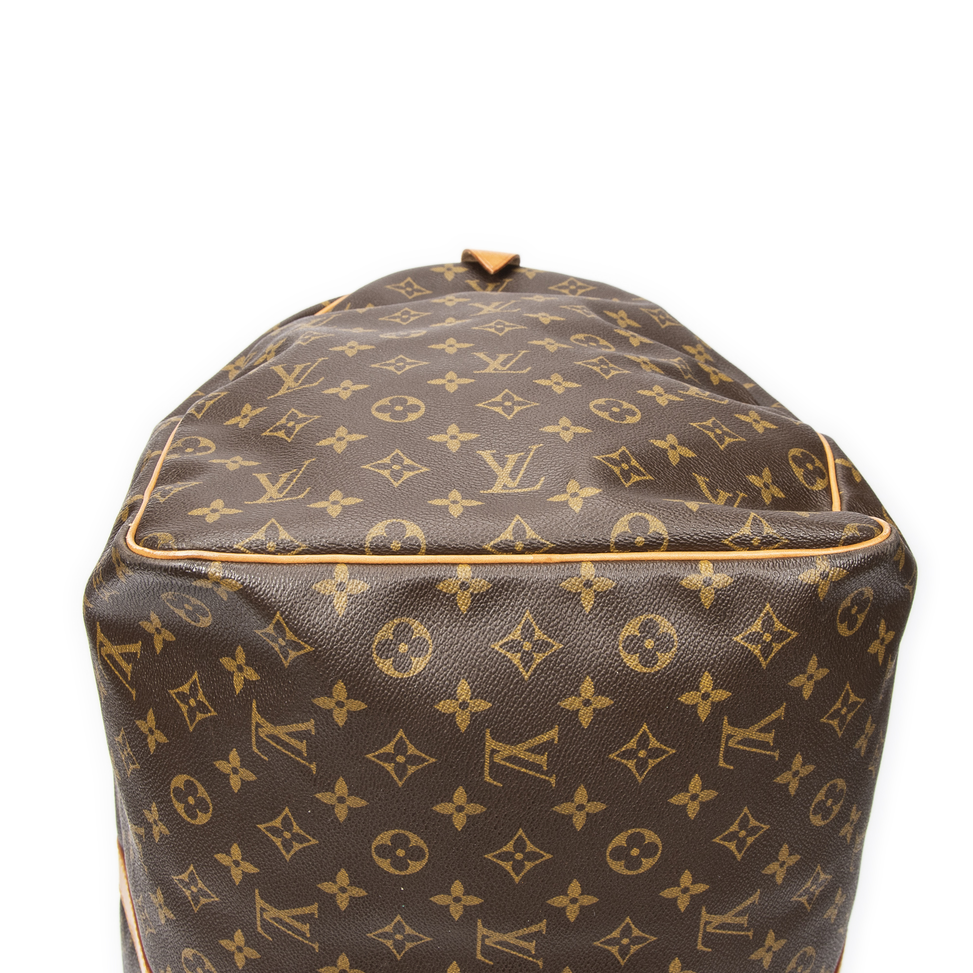 Louis Vuitton Travel Bag Keepall 60 in Brown Monogram Canvas and Golden Brass hardware. The product is in Very Good Condition (AB).