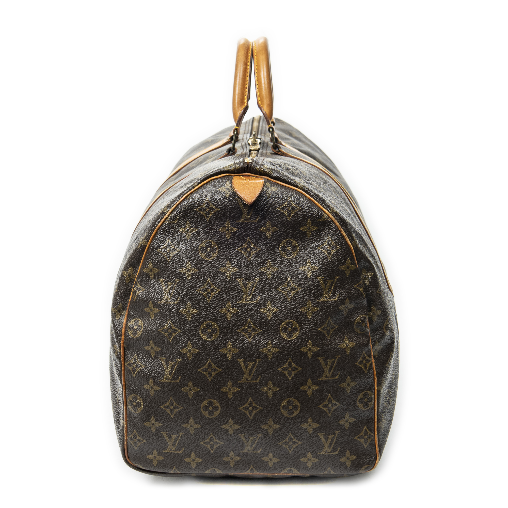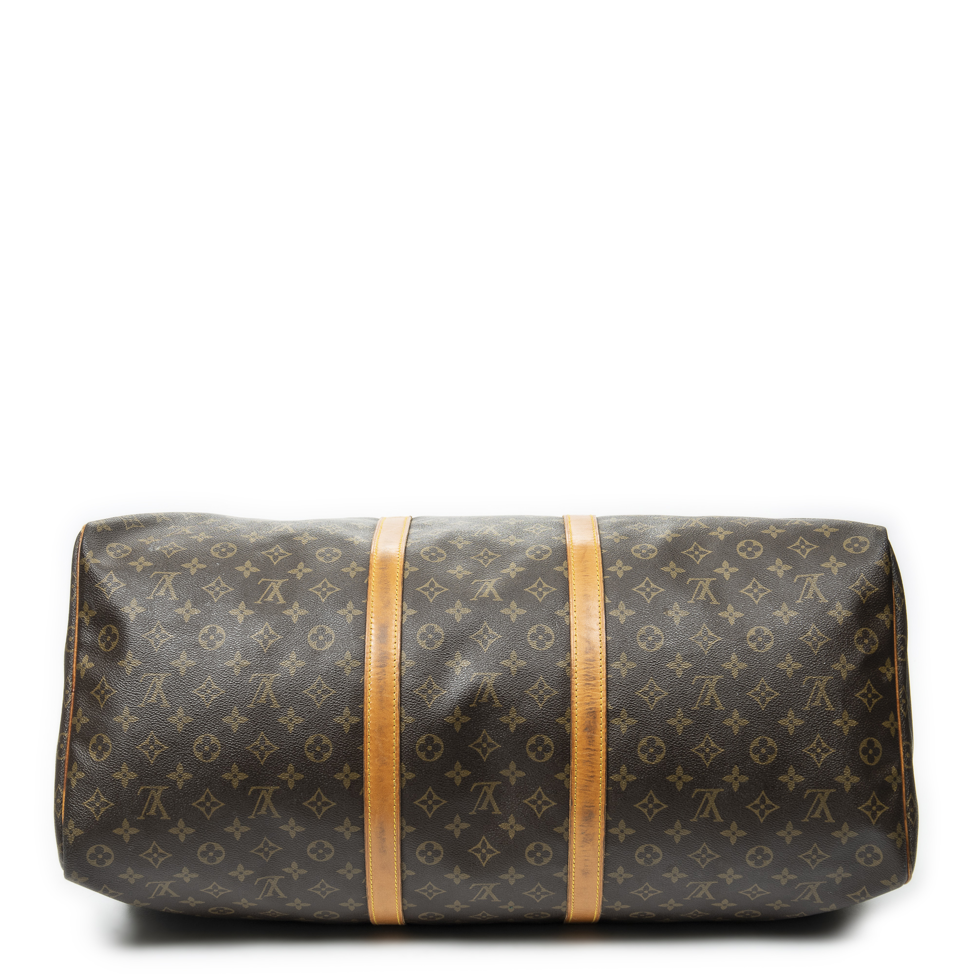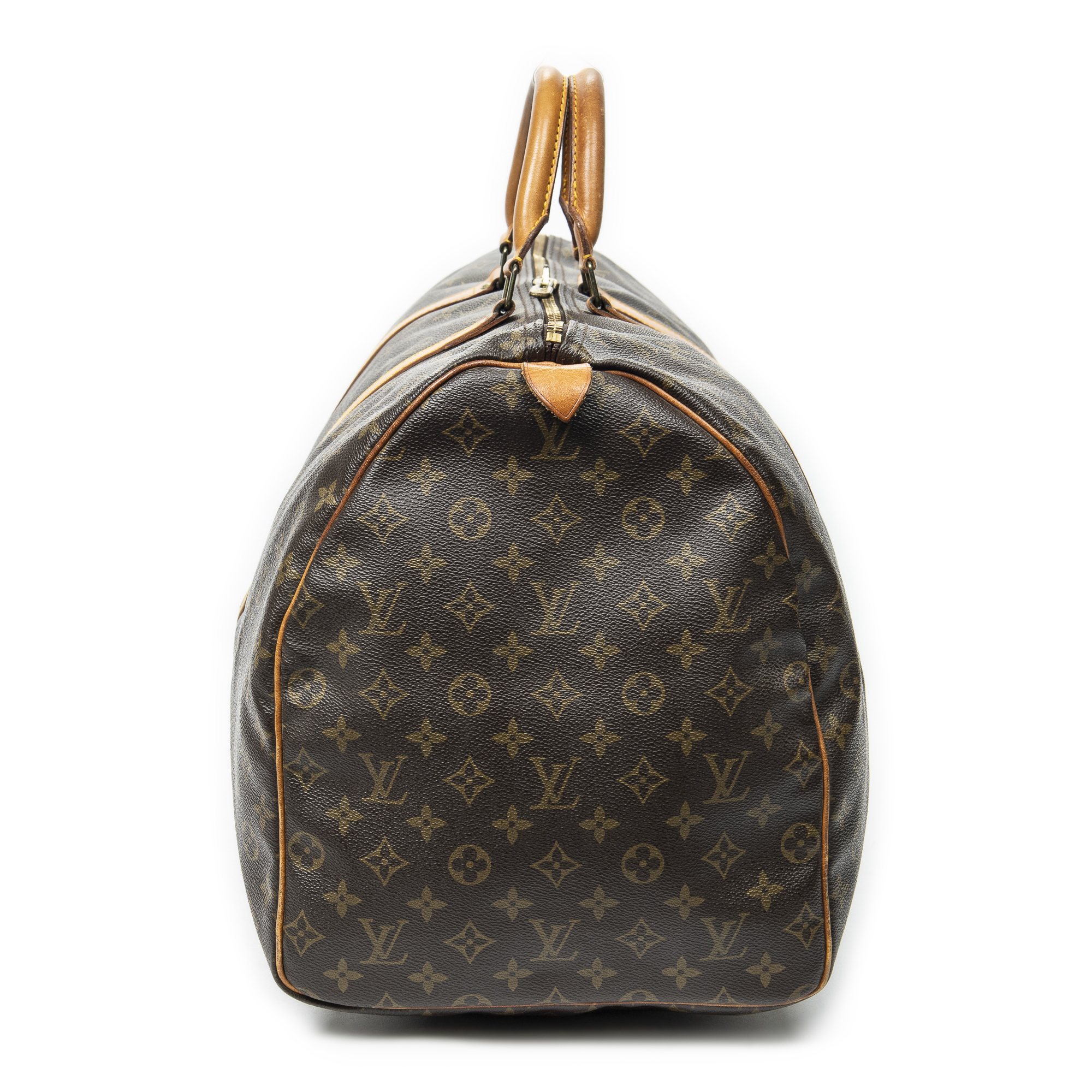 Louis Vuitton Travel Bag Keepall 60 in Brown Monogram Canvas and Golden Brass hardware. The product is in Very Good Condition (AB).