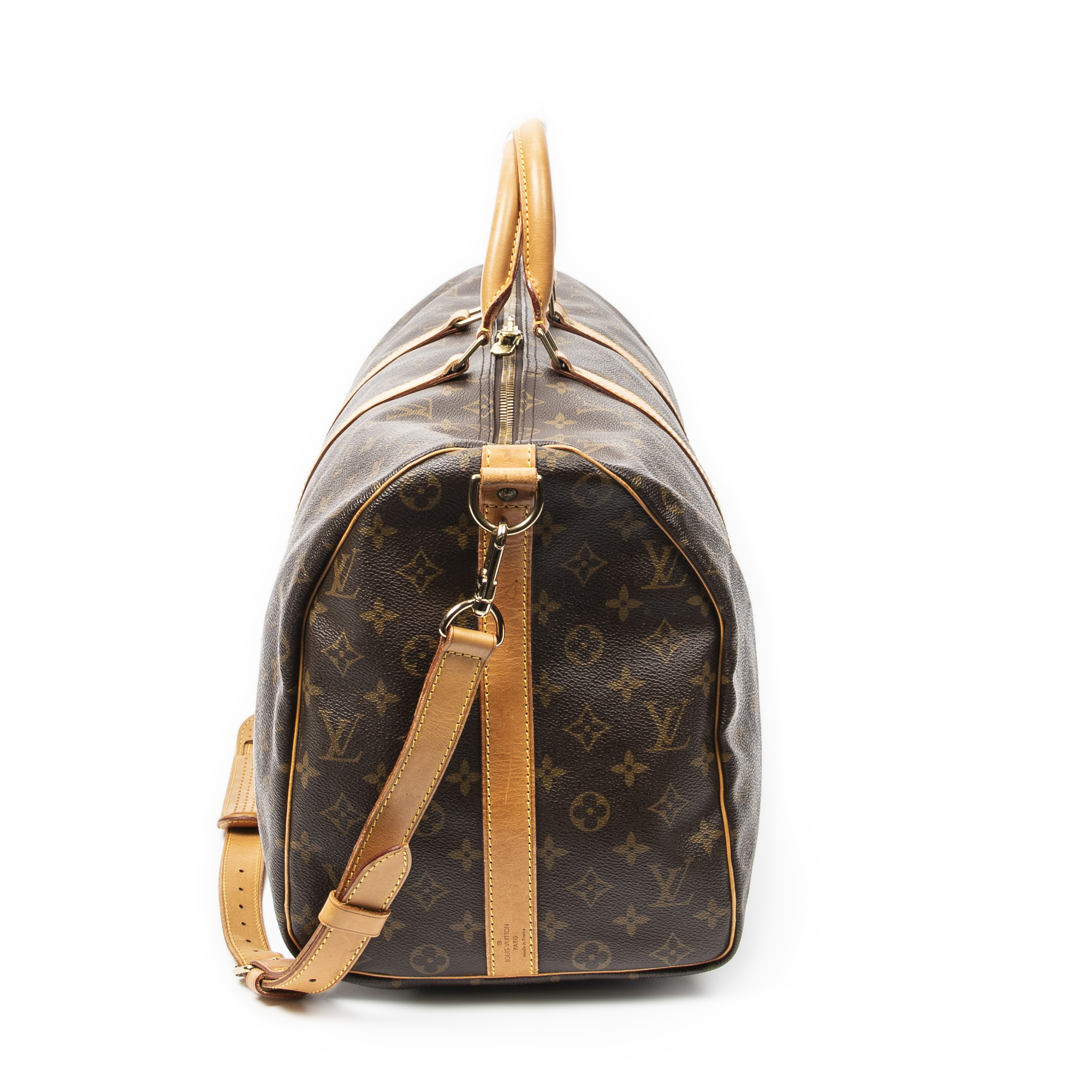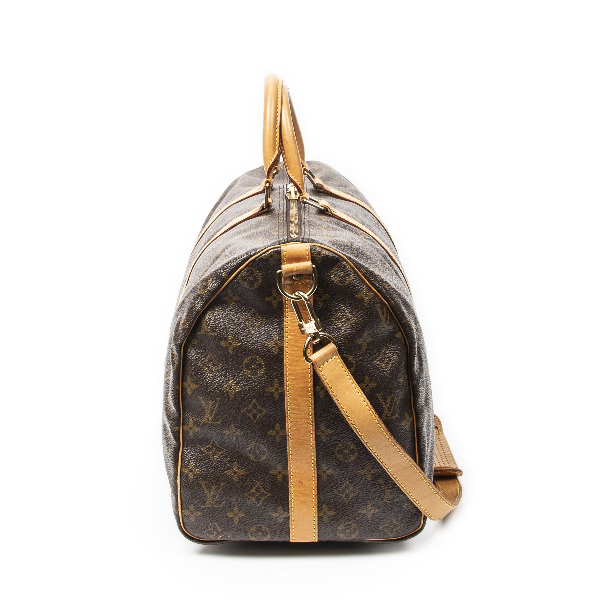 Louis Vuitton Travel Bag Keepall Bandouliere 50 in Brown Monogram Canvas and Golden Brass hardware. The product is in Excellent Condition (A).