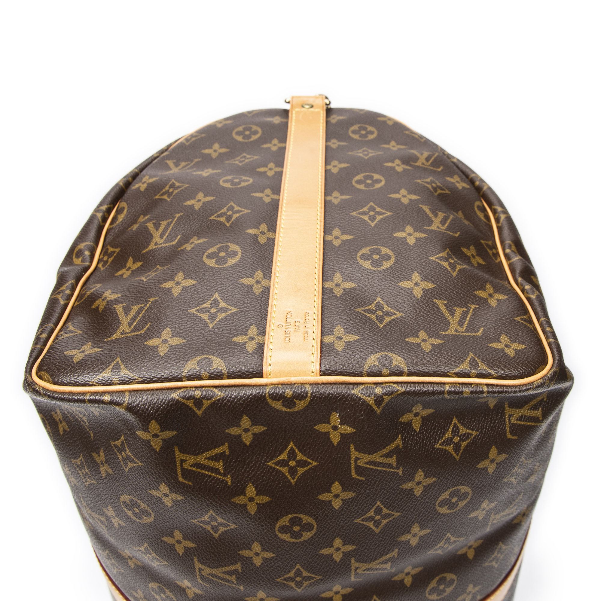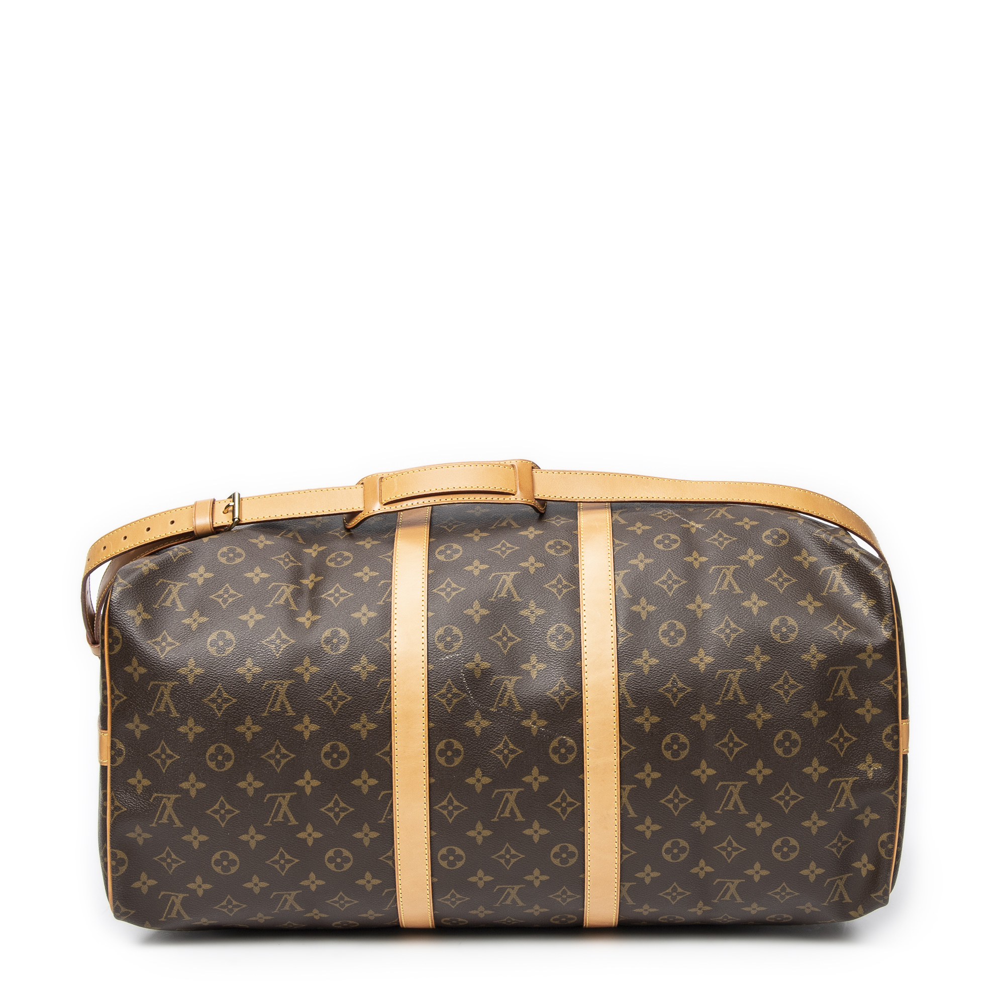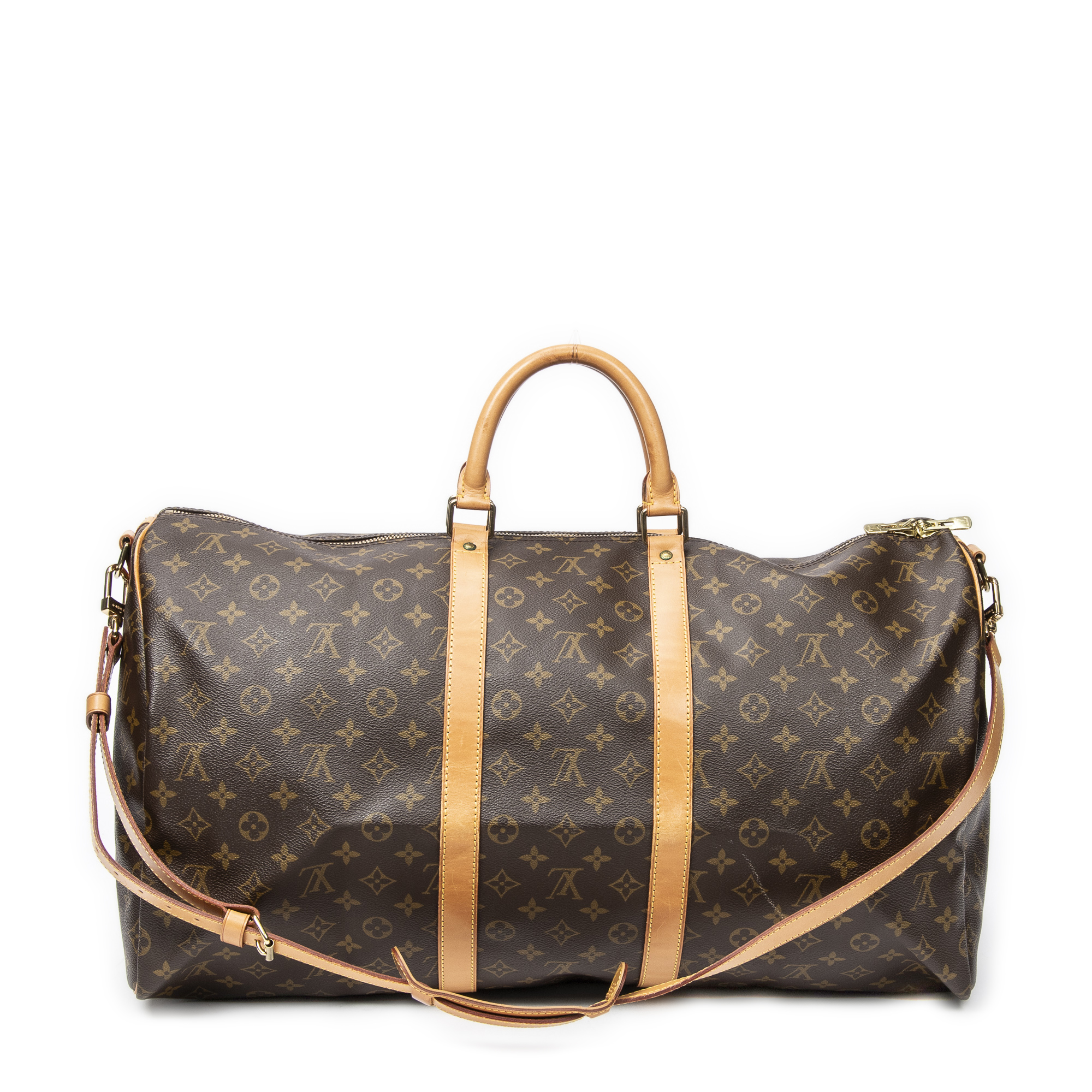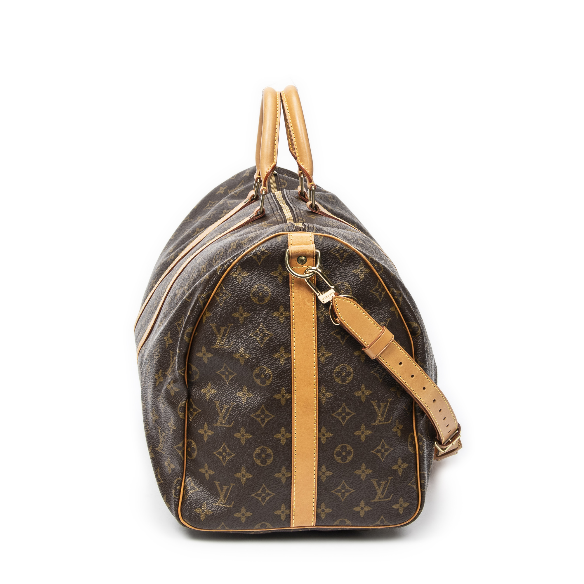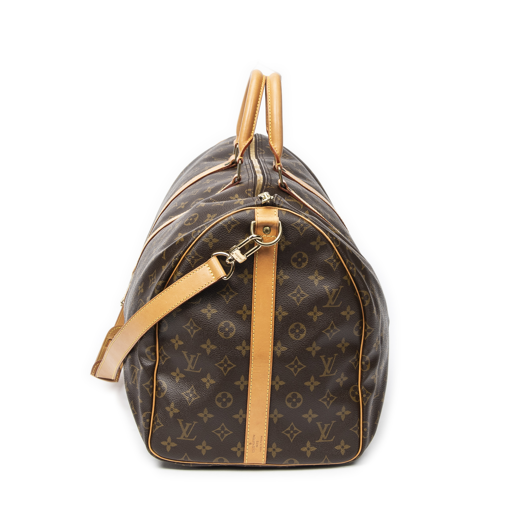 Louis Vuitton Travel Bag Keepall Bandouliere 55 in Brown Monogram Canvas and Golden Brass hardware. The product is in Excellent Condition (A).