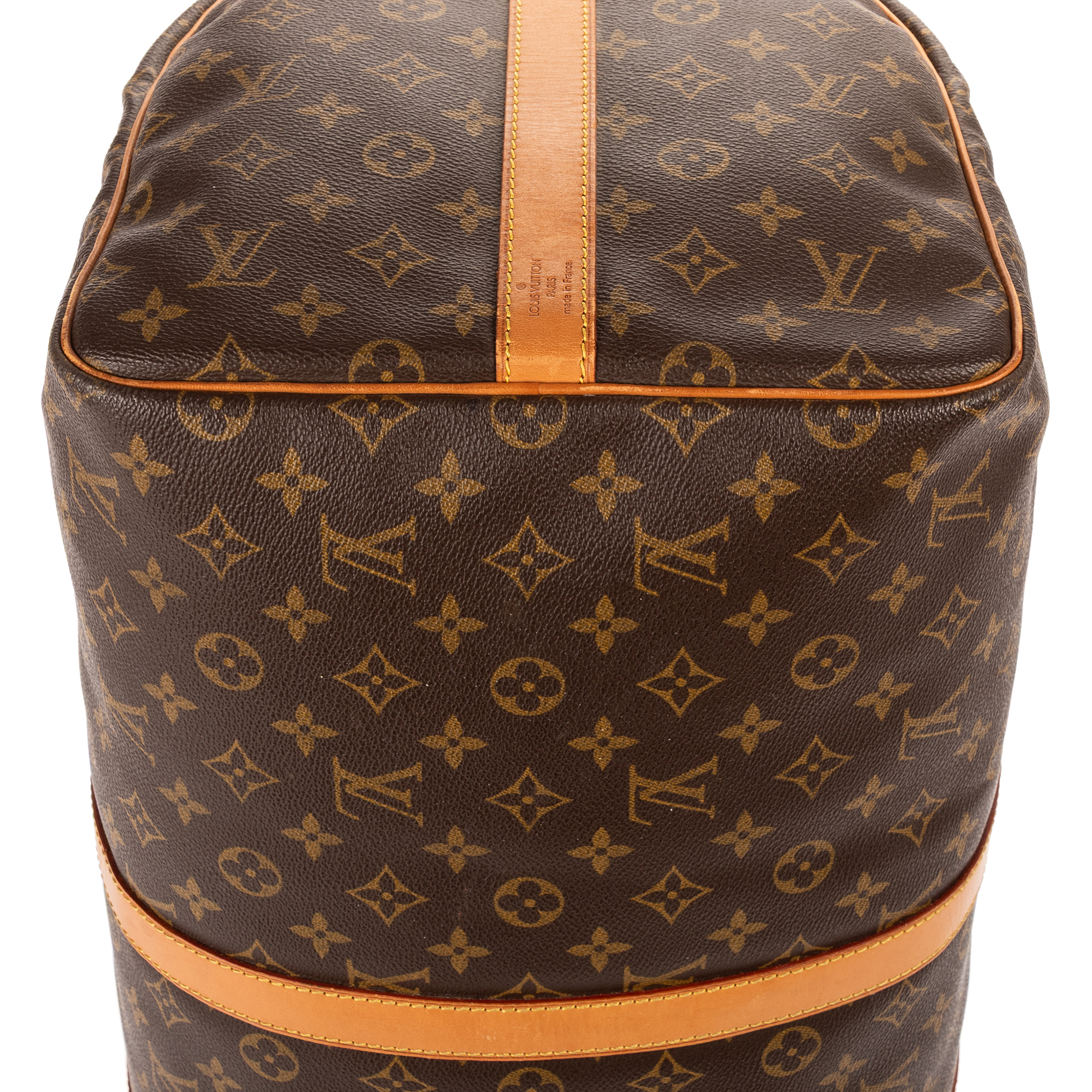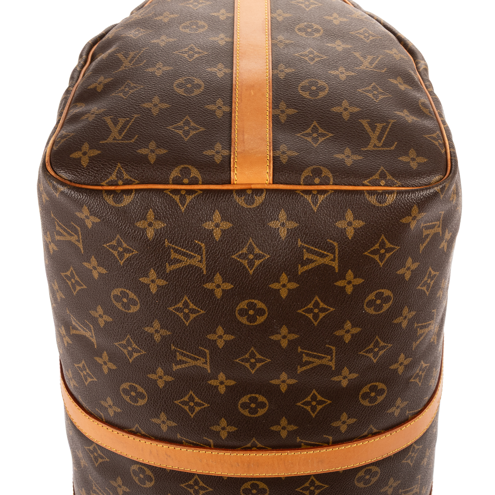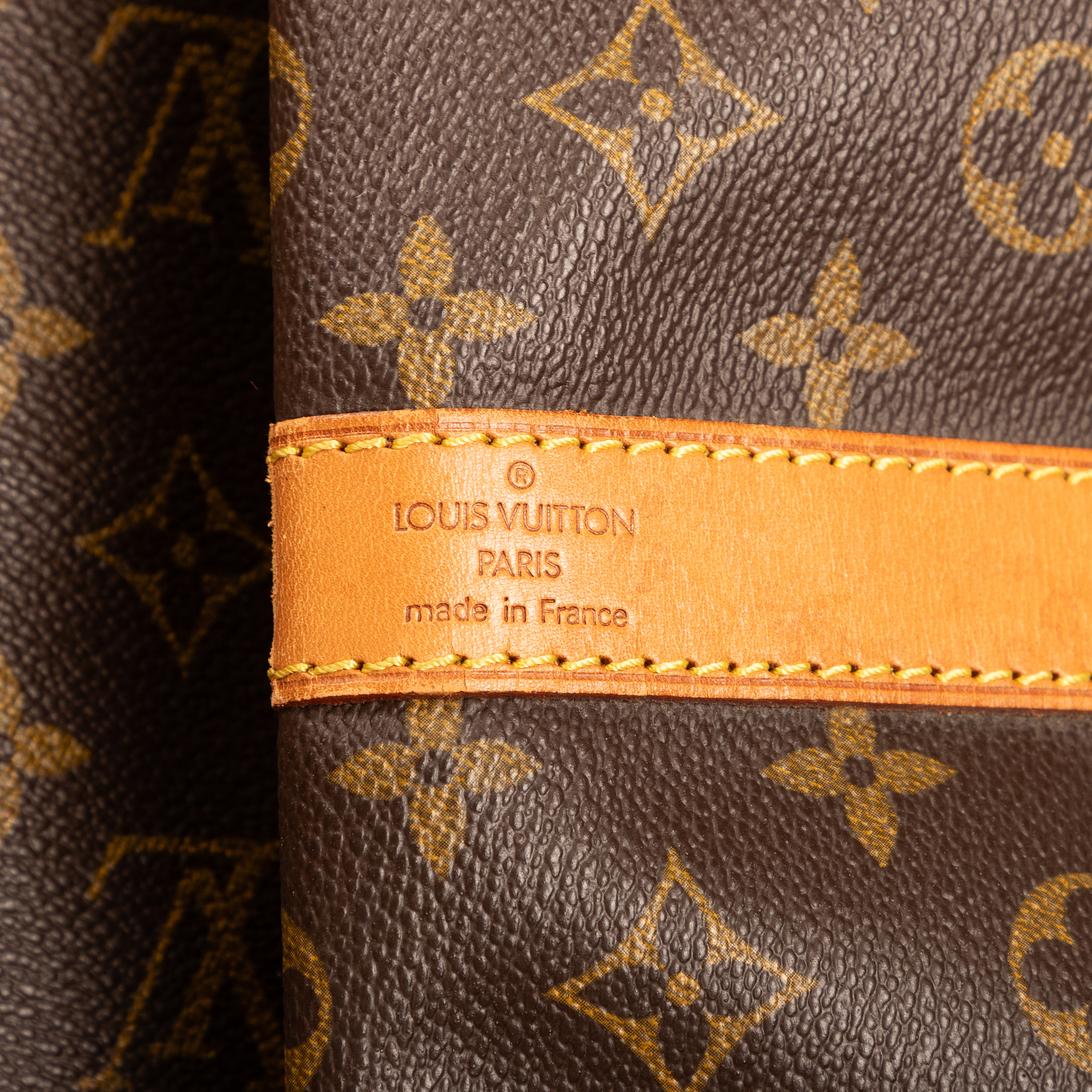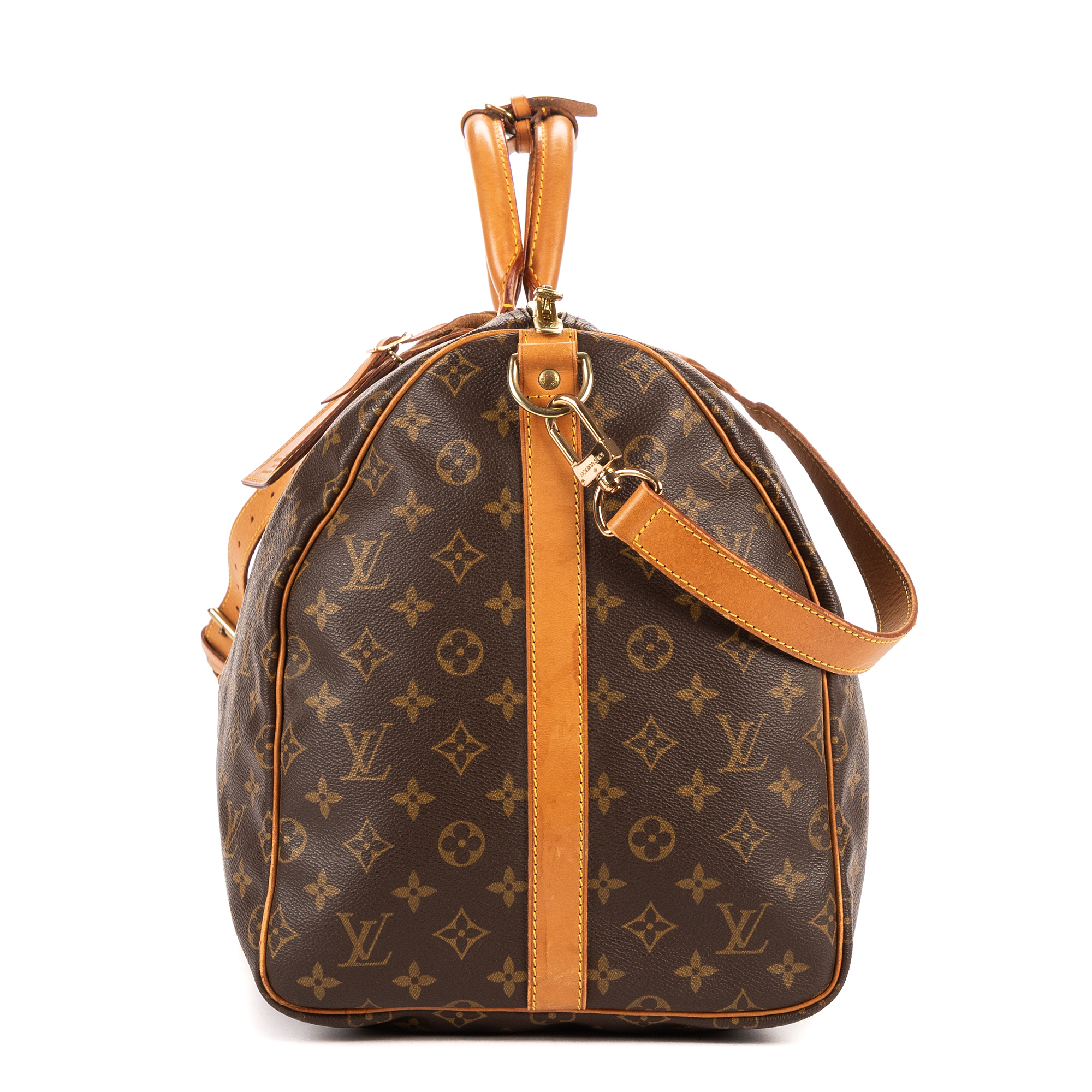 Louis Vuitton Travel Bag Keepall Bandouliere 55 in Brown Monogram Canvas and Golden Brass hardware. The product is in Very Good Condition (AB).