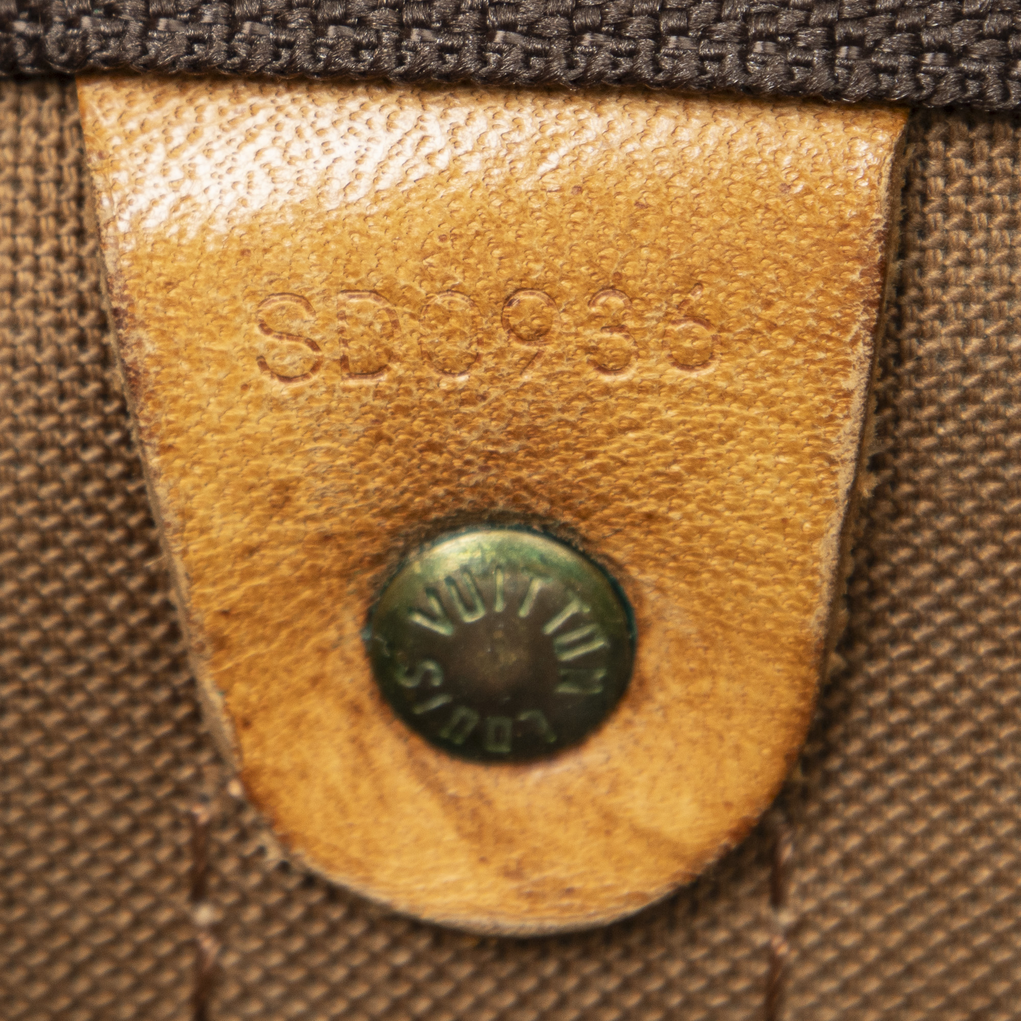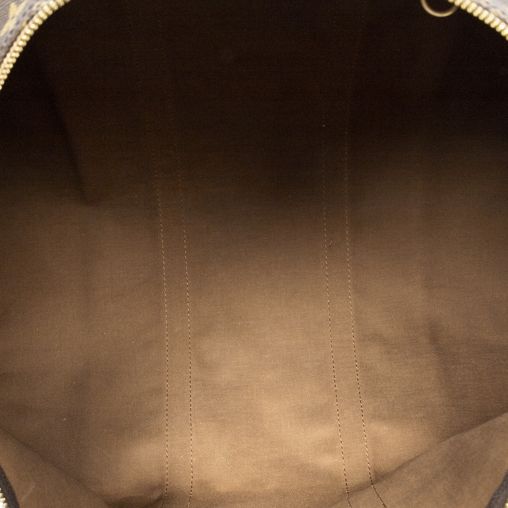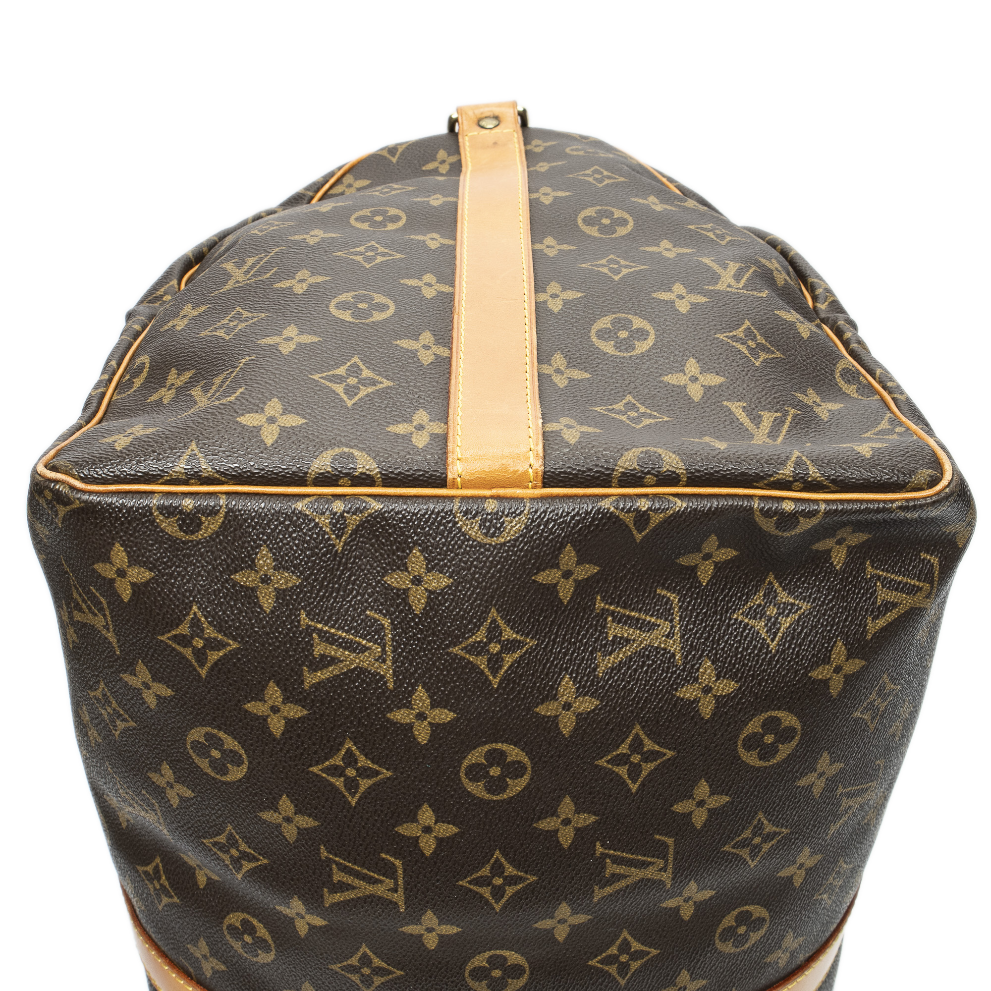 Louis Vuitton Travel Bag Keepall Bandouliere 55 in Brown Monogram Canvas and Golden Brass hardware. The product is in Very Good Condition (AB).