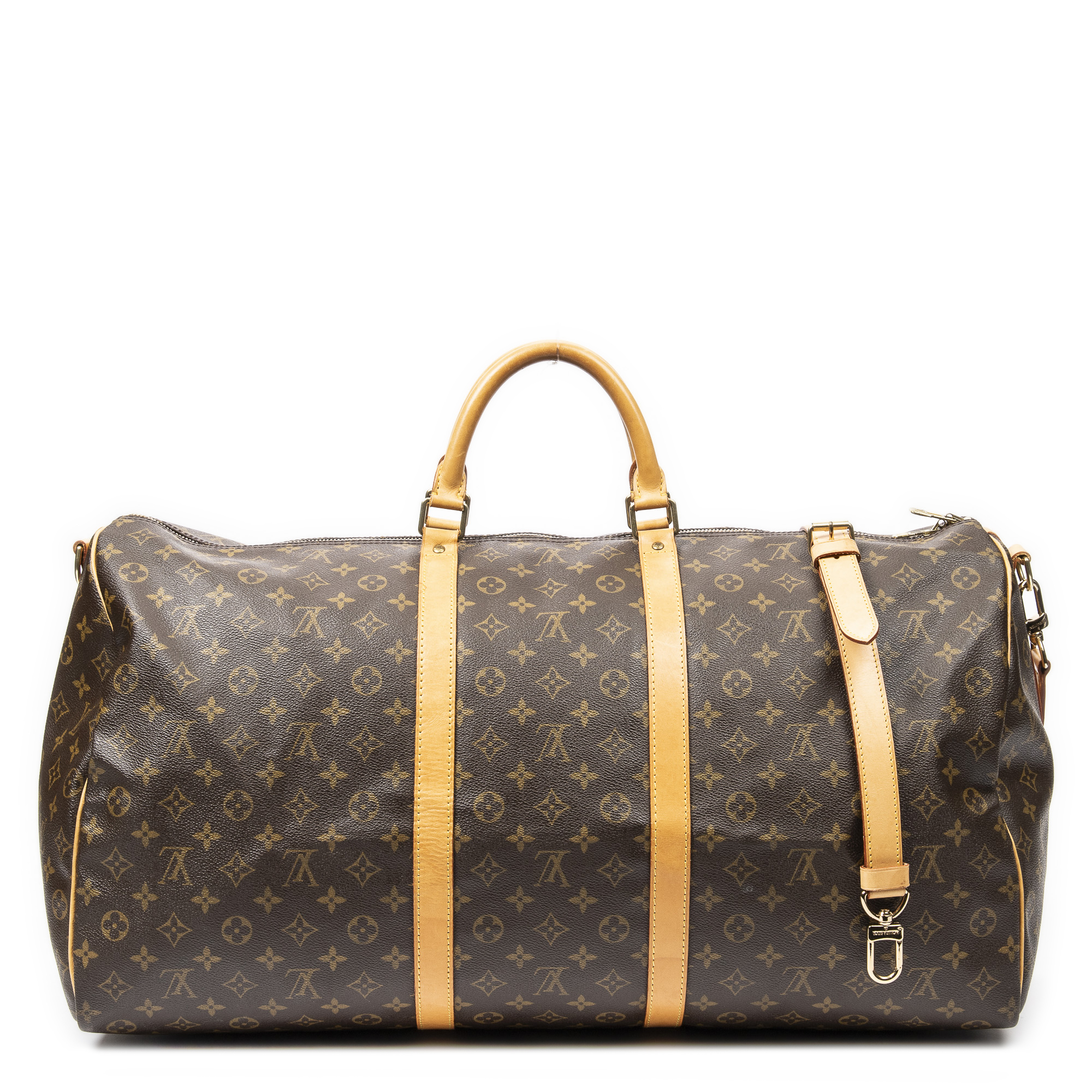 Louis Vuitton Travel Bag Keepall Bandouliere 60 in Brown Monogram Canvas and Golden Brass hardware. The product is in Very Good Condition (AB).
