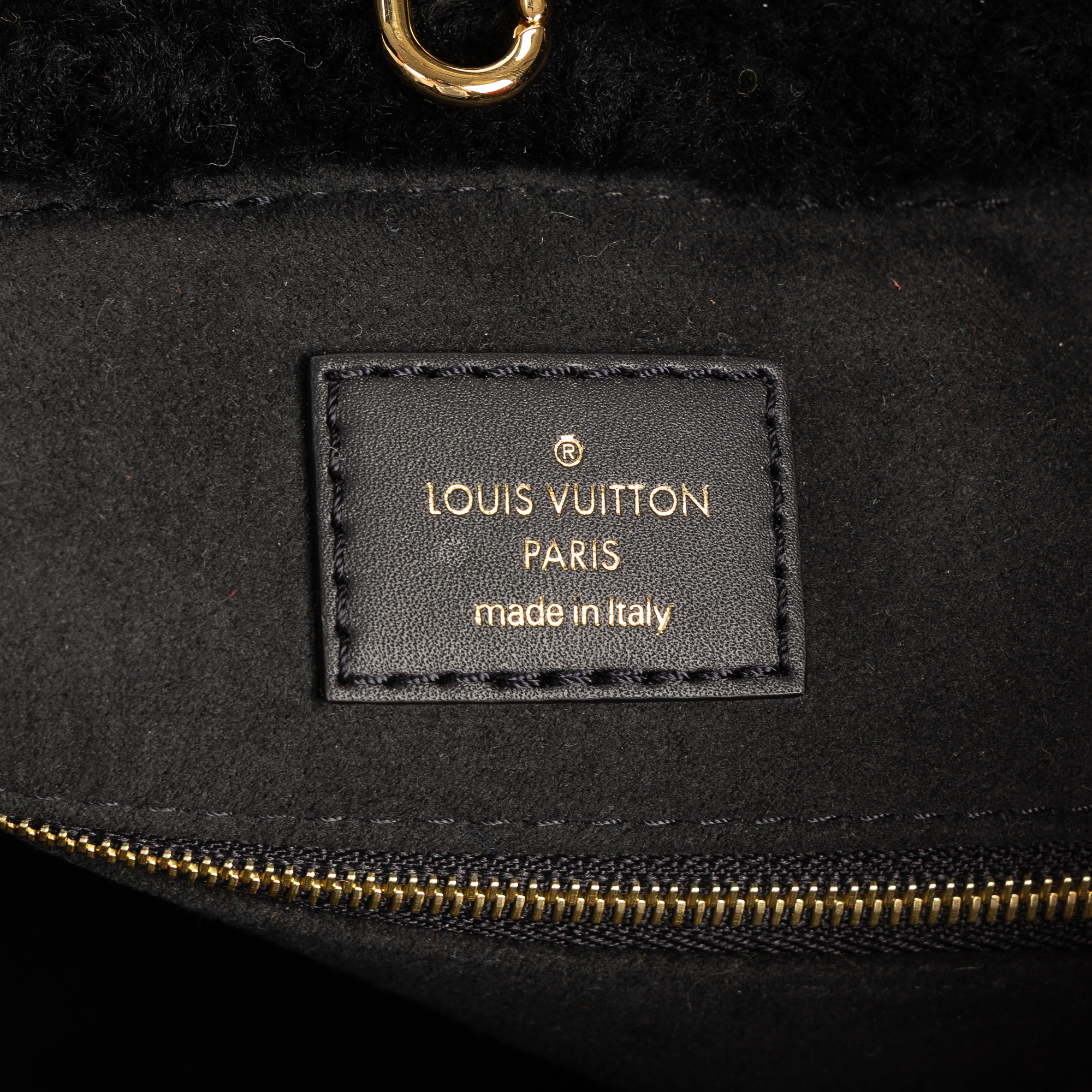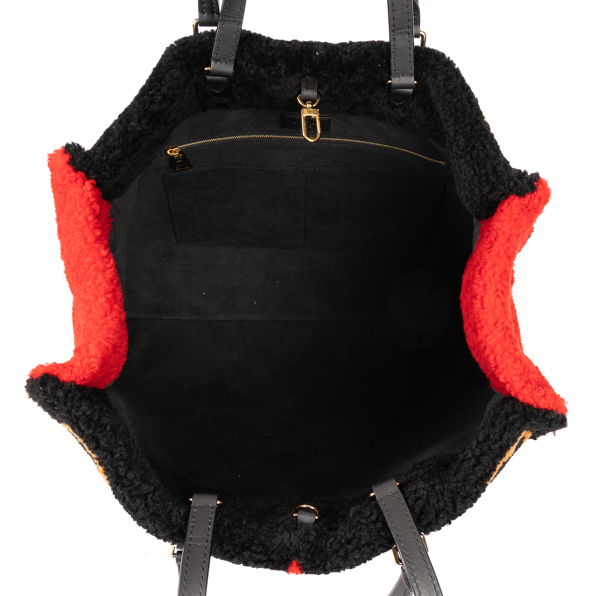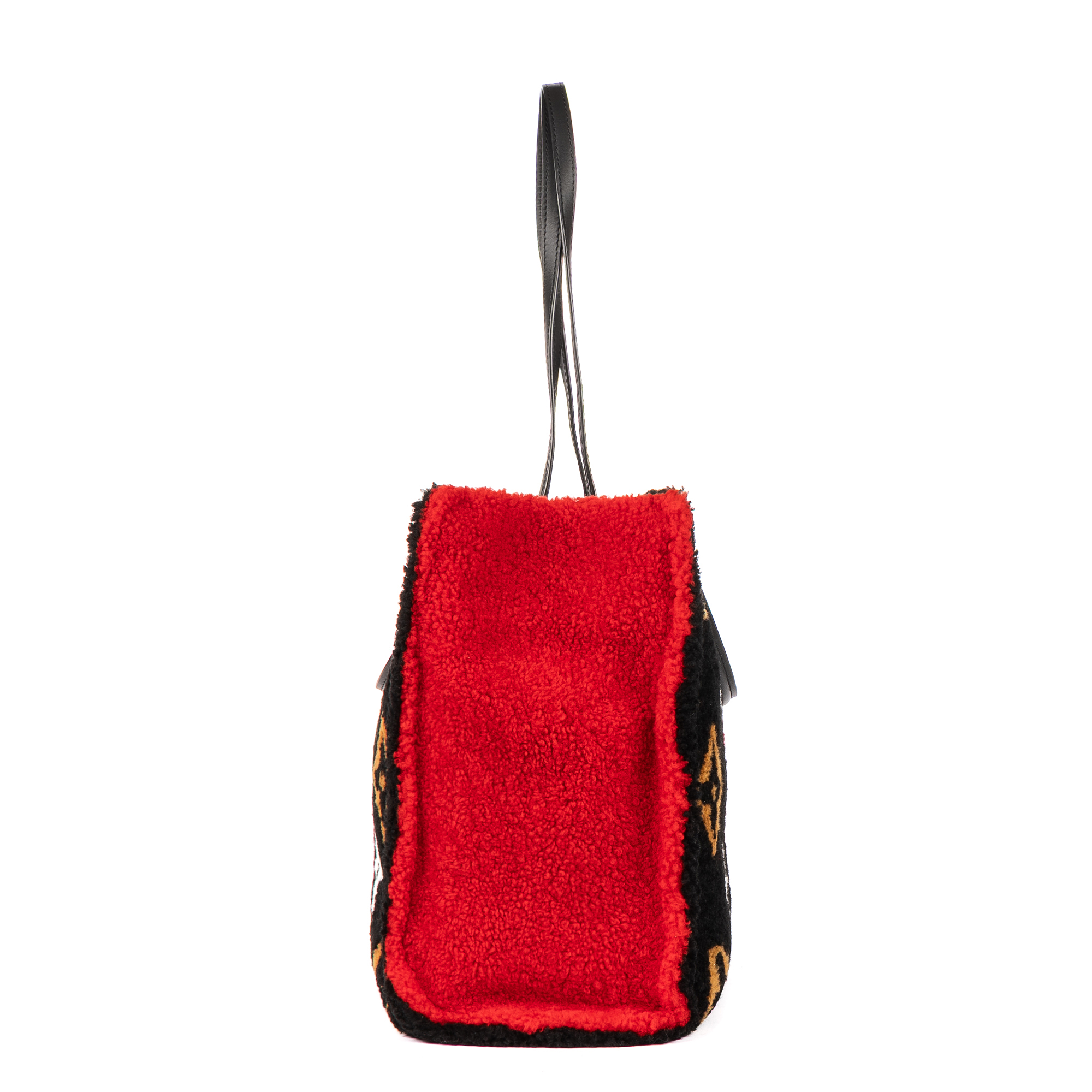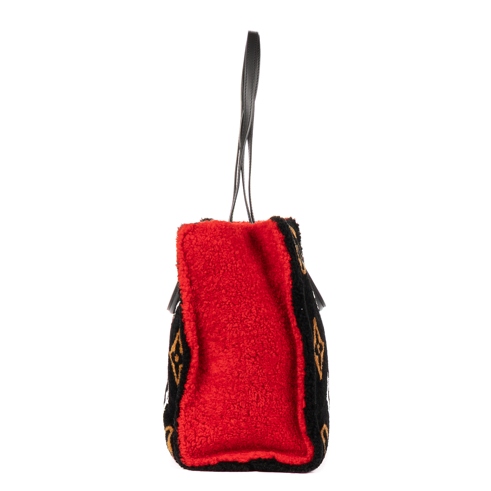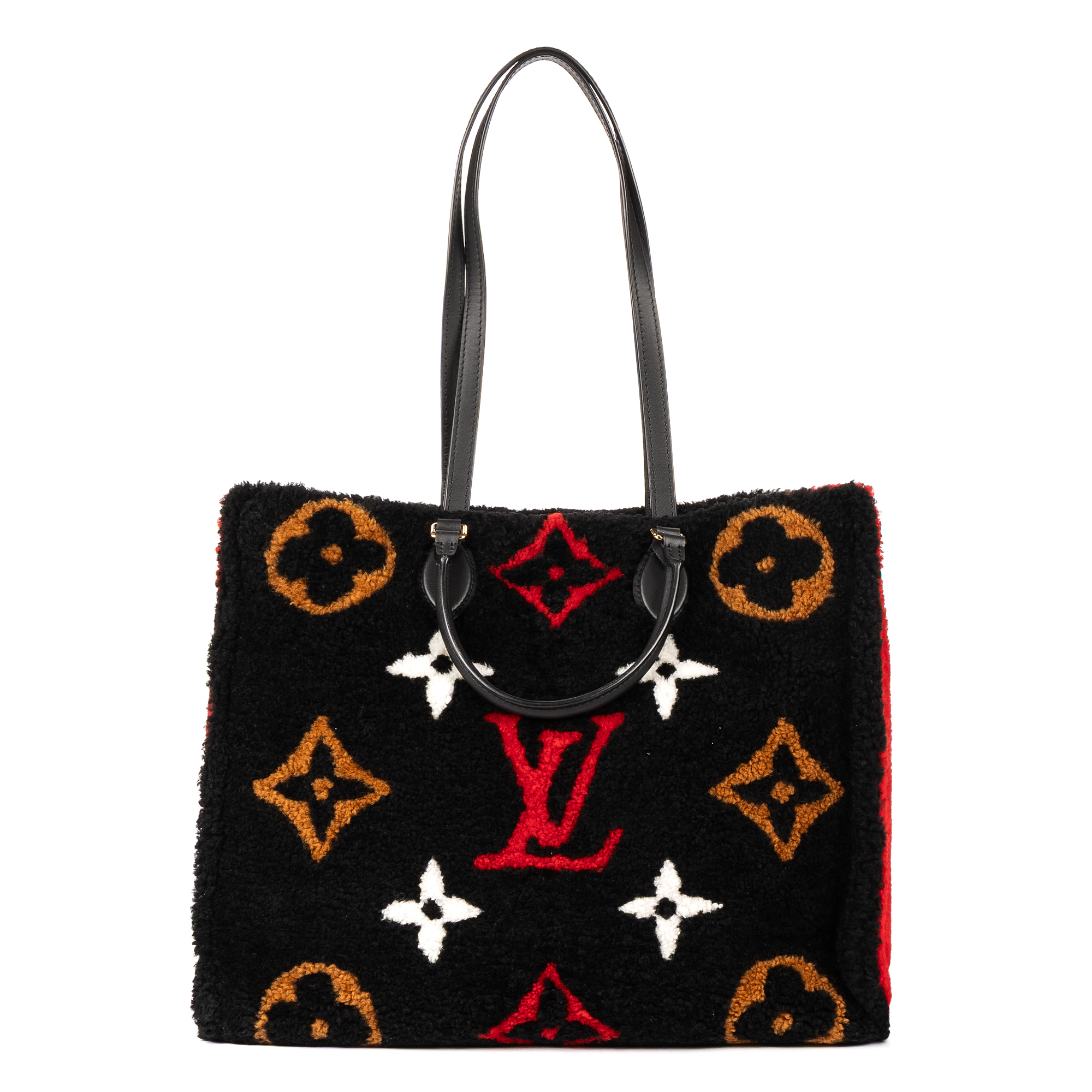 Louis Vuitton Travel Bag Limited Edition Teddy Collection OnTheGo Tote Bag GM in Black/Brown/Red/White Monogram Pattern Fur and Gold hardware. The product is in Perfect Condition (AA).
