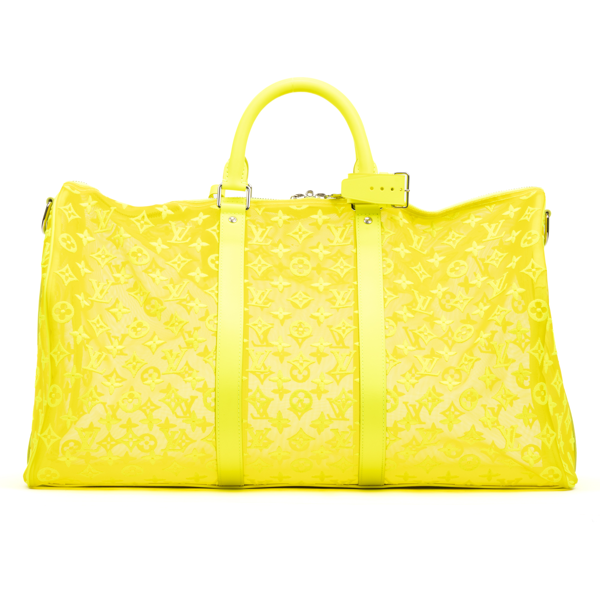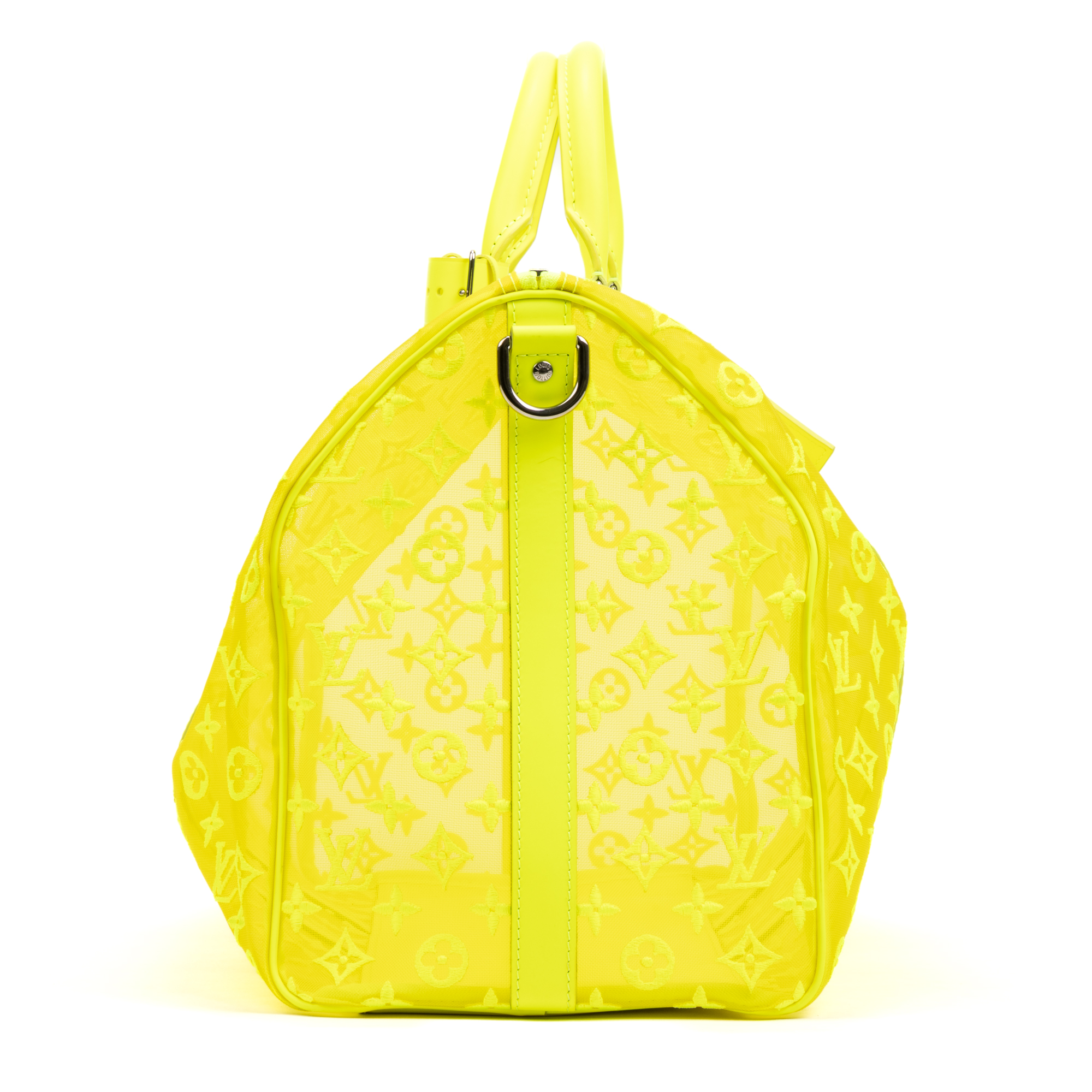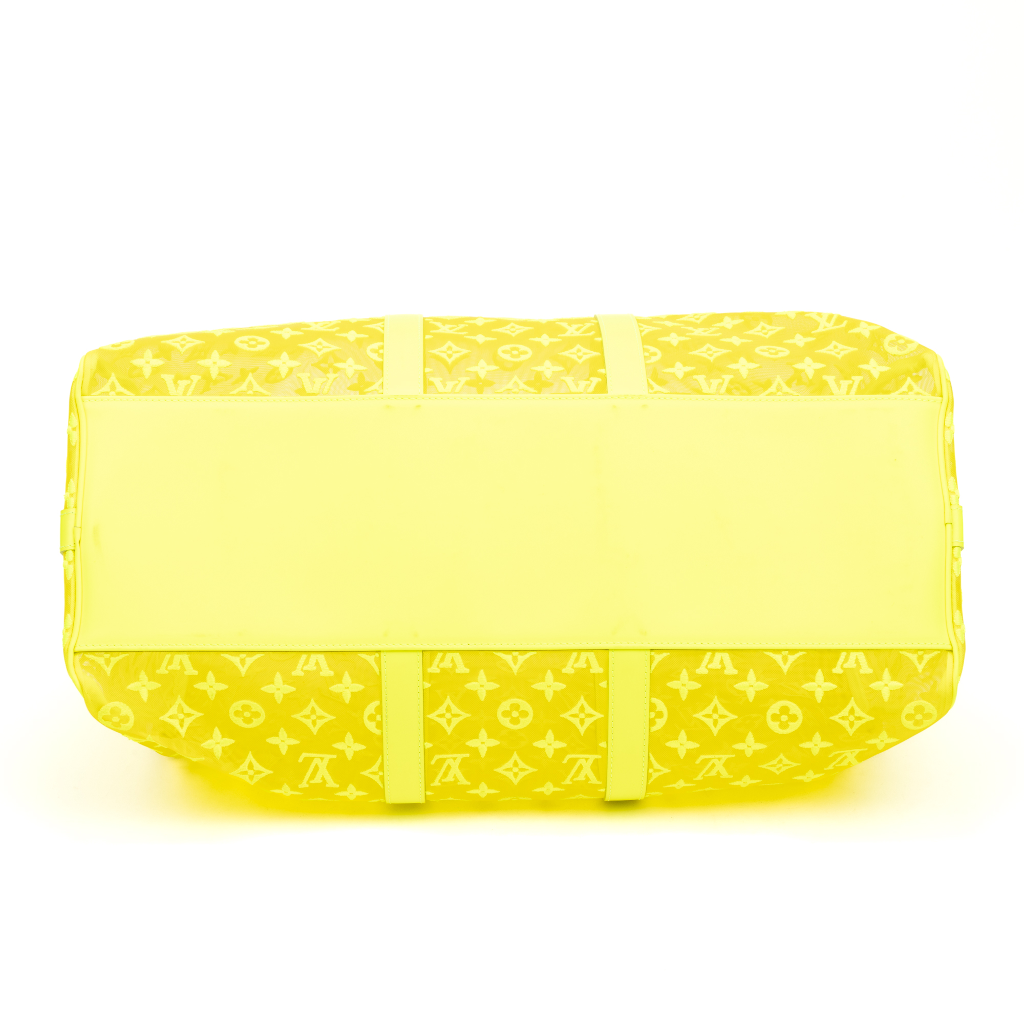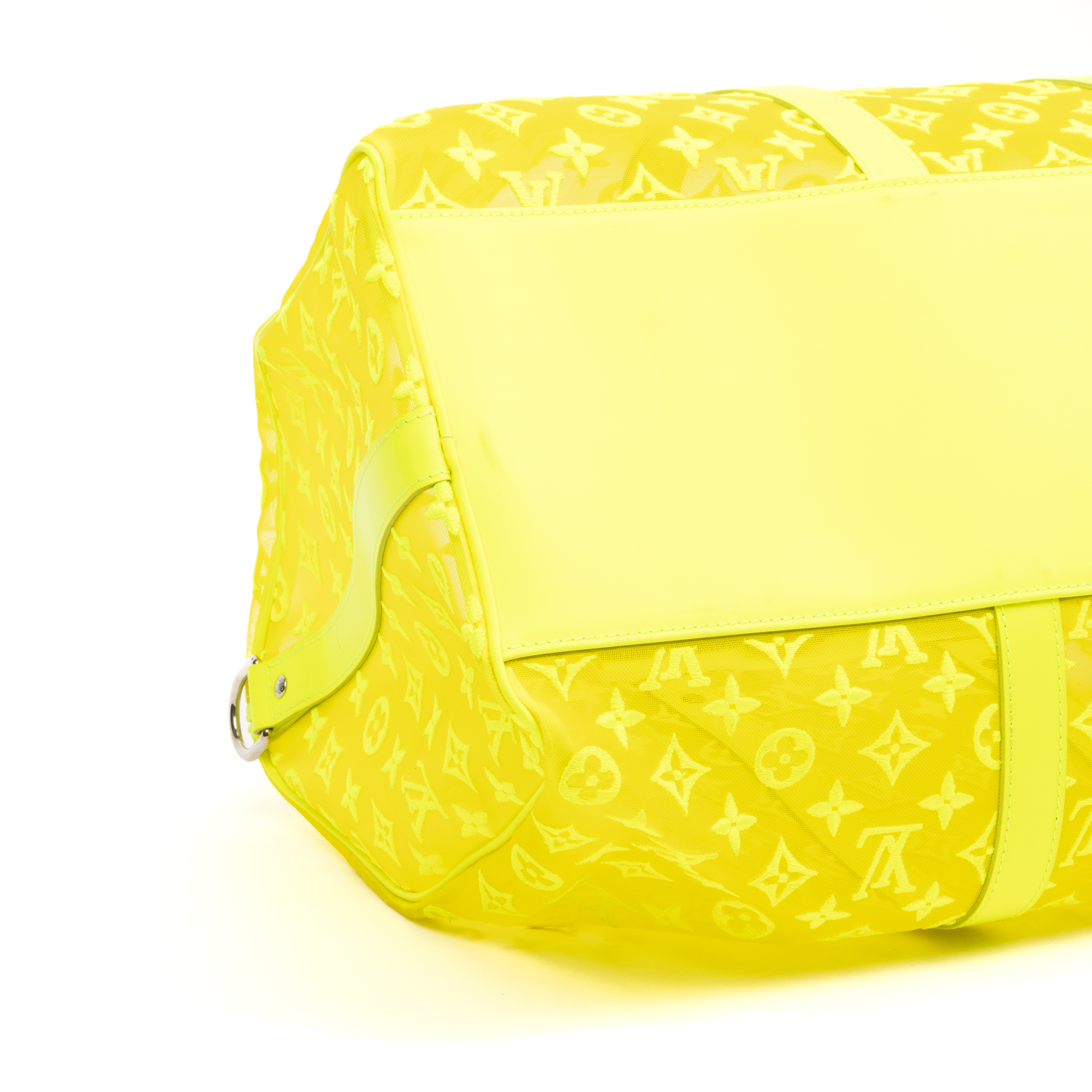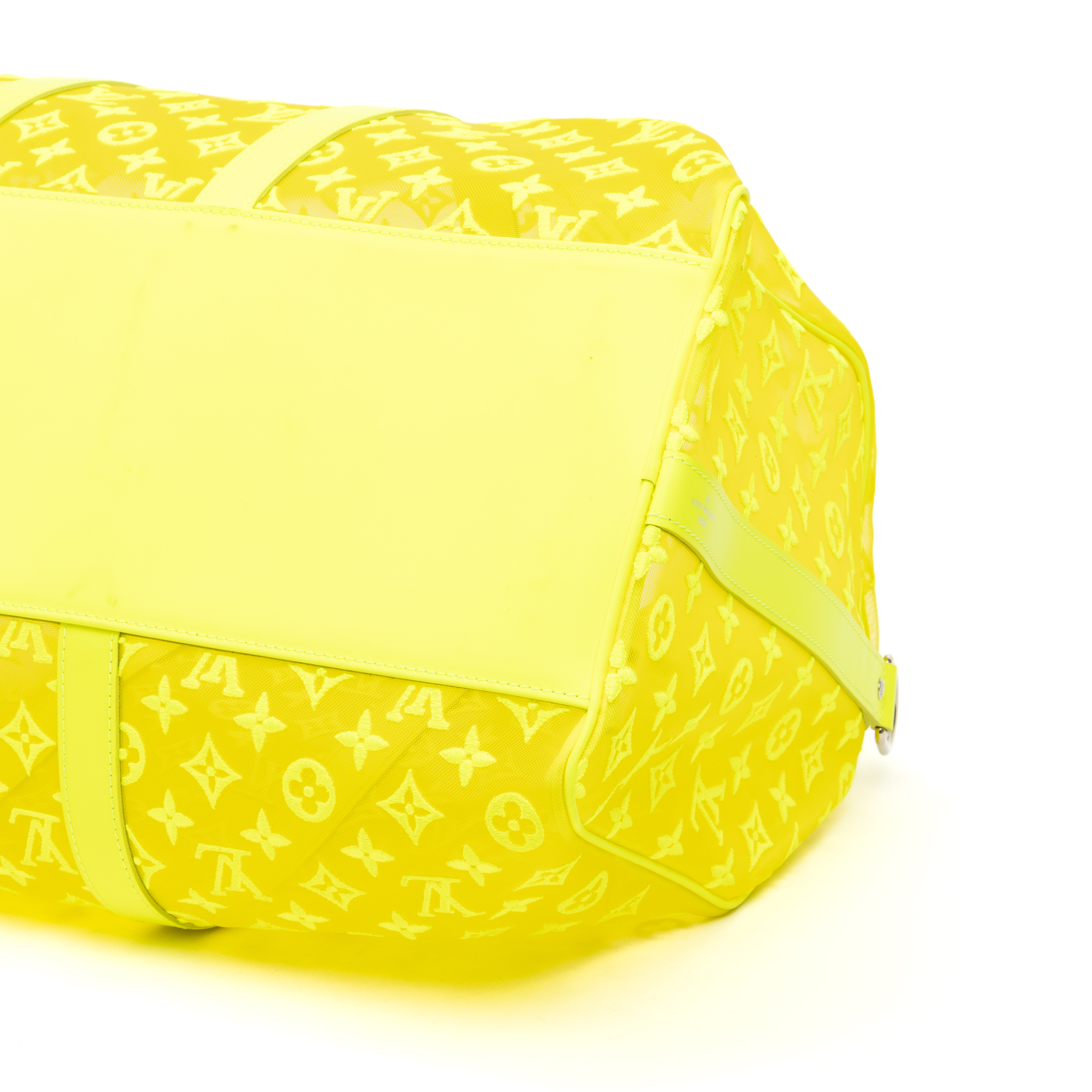 Louis Vuitton Travel Bag Ltd. Ed. Virgil Abloh Mesh Triangle Summer 2019 Keepall Bandouliere in Lime Monogram See Through and Silver hardware. The product is Like New (N).