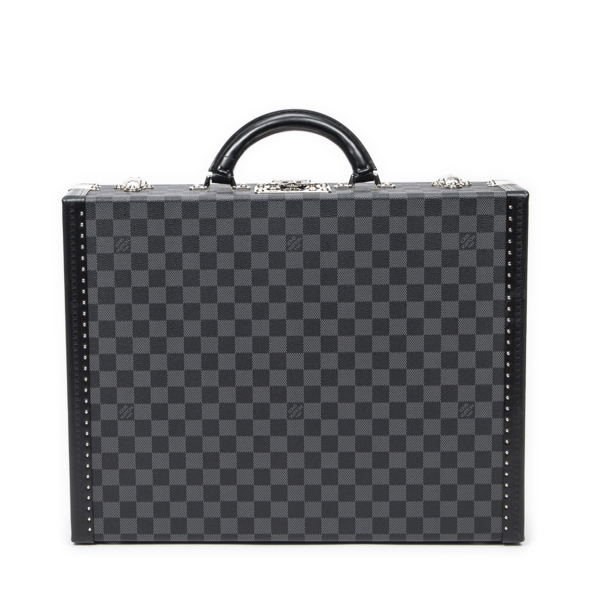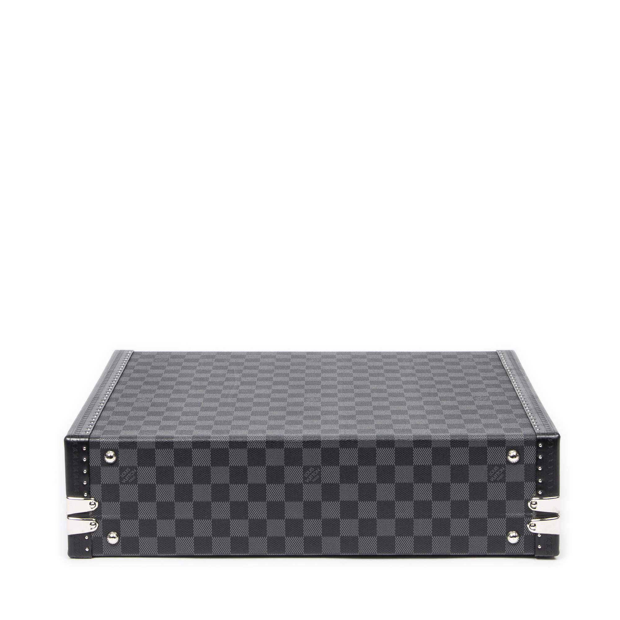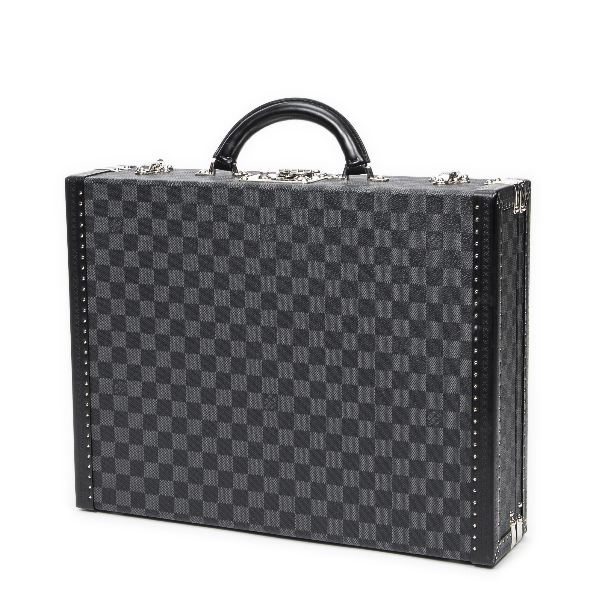 Description : Louis Vuitton Travel Bag President in Black Damier Graphite and Silver hardware. The product is in Excellent Condition (A). Dimensions: 45.5x37x11.5 cm SKU: ABA5600 Serial number: AS3195 (39th week of 2015)/1117524 Accessories Included: Luggage Tag; Keys in Clochette Condition Notes: minor scratches on interior leather lining and handle Delivery: We have a 5 to 7 business days delivery policy, hassle-free and duties/tariffs included! BrandCo Paris finds rare and top condition items at great deals, they are worth your patience! Shop with confidence - All BrandCo Paris items are carefully selected and authenticated by our team of experts. All the items come with an authenticity certificate and packaging delivered by BrandCo Paris. Item Condition Grading Table N (Like New) AA (Perfect Condition) A (Excellent Condition) AB (Very Good Condition) B (Good/Fair)