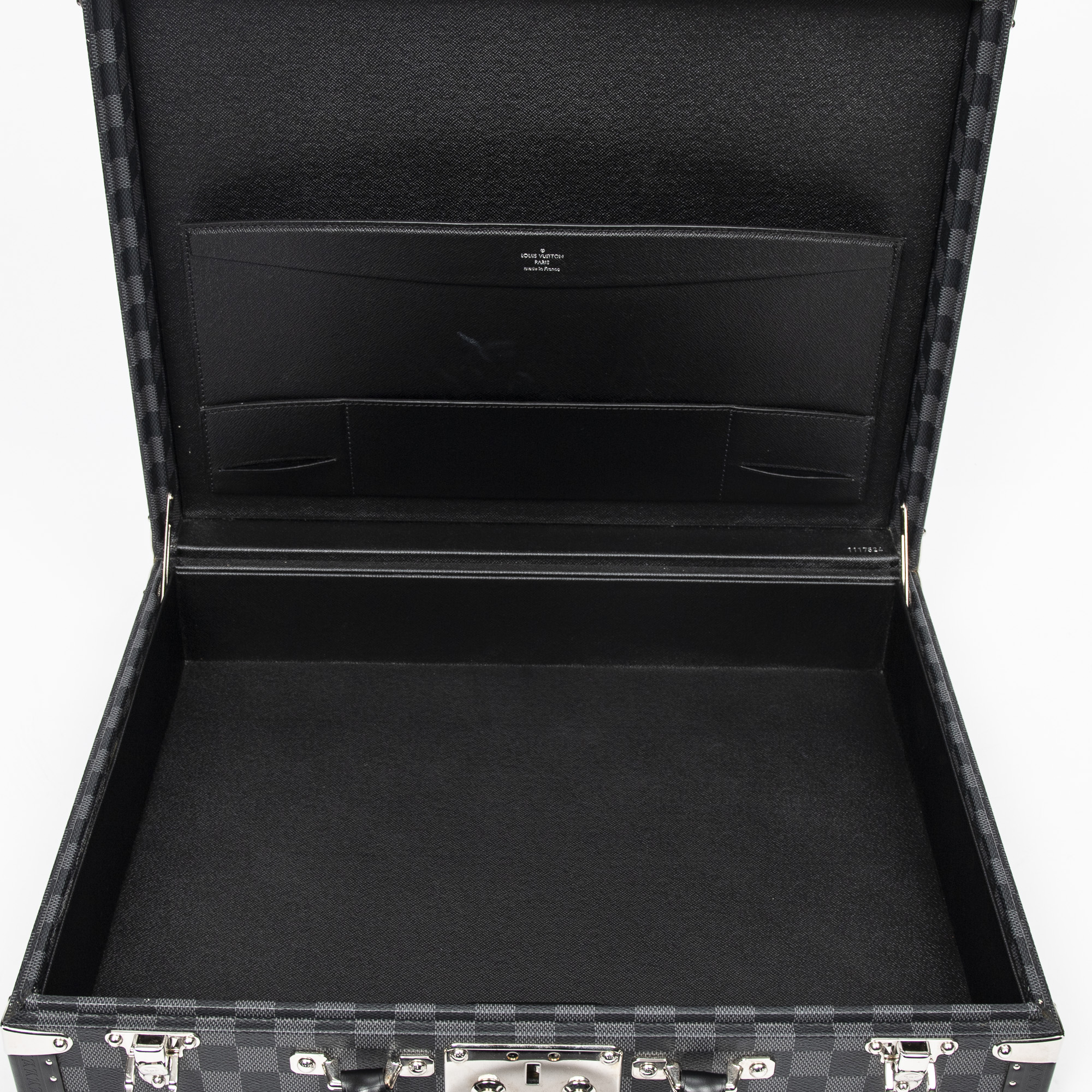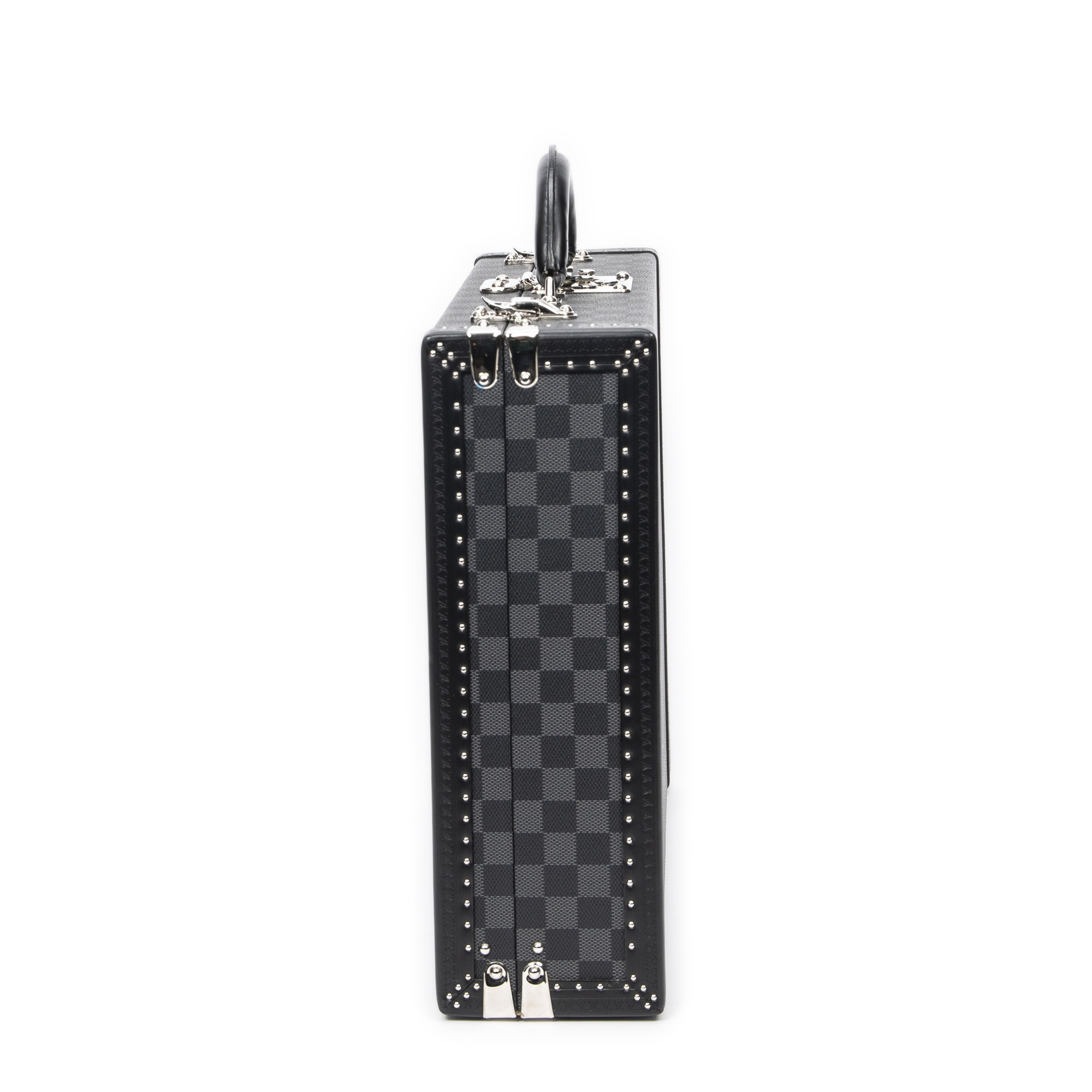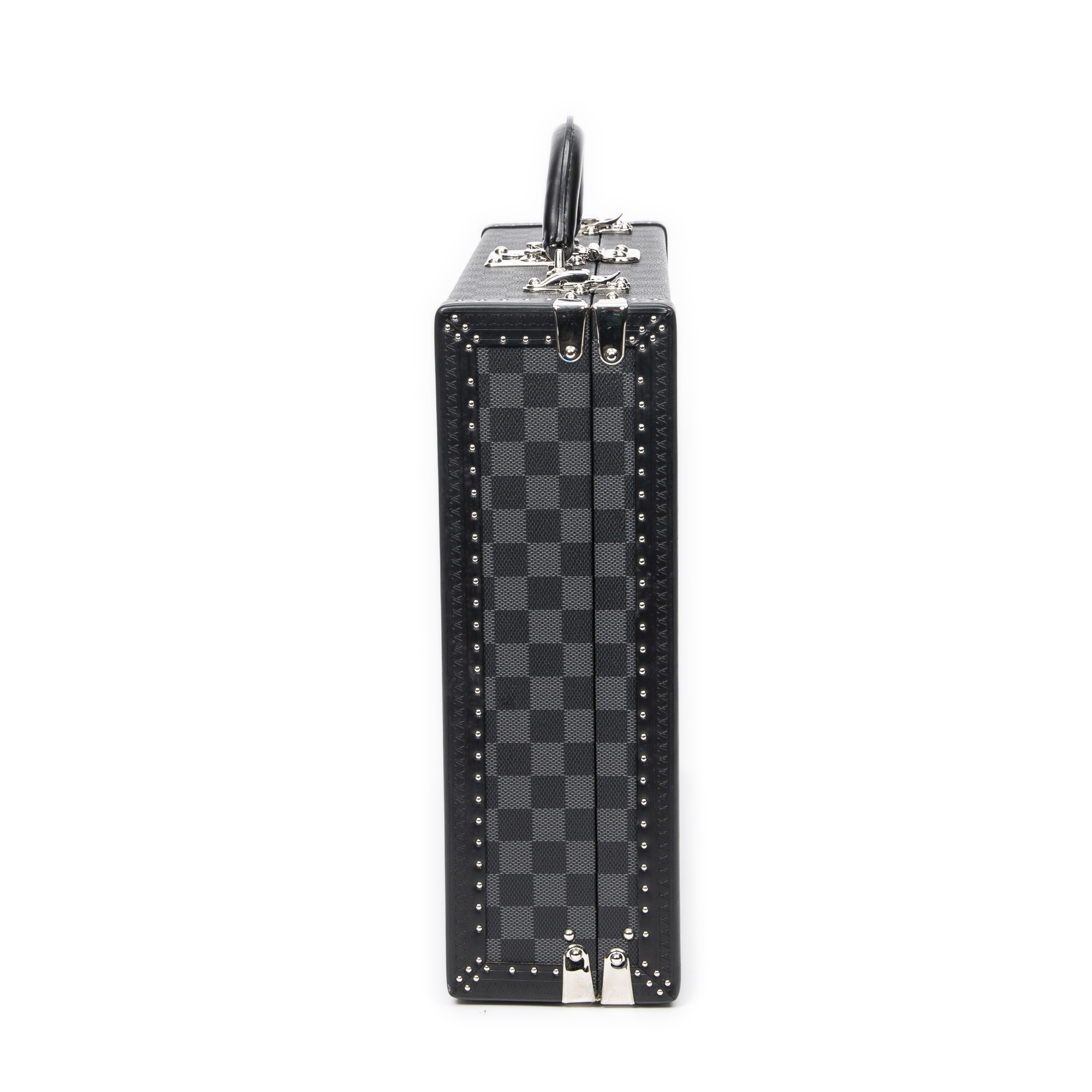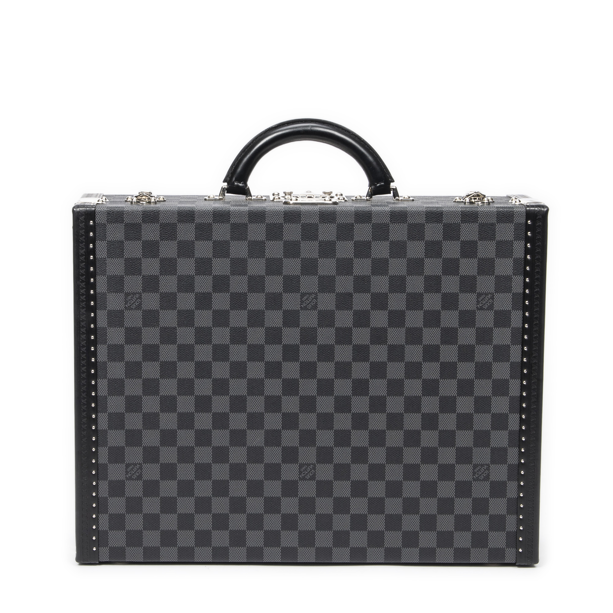 Description : Louis Vuitton Travel Bag President in Black Damier Graphite and Silver hardware. The product is in Excellent Condition (A). Dimensions: 45.5x37x11.5 cm SKU: ABA5600 Serial number: AS3195 (39th week of 2015)/1117524 Accessories Included: Luggage Tag; Keys in Clochette Condition Notes: minor scratches on interior leather lining and handle Delivery: We have a 5 to 7 business days delivery policy, hassle-free and duties/tariffs included! BrandCo Paris finds rare and top condition items at great deals, they are worth your patience! Shop with confidence - All BrandCo Paris items are carefully selected and authenticated by our team of experts. All the items come with an authenticity certificate and packaging delivered by BrandCo Paris. Item Condition Grading Table N (Like New) AA (Perfect Condition) A (Excellent Condition) AB (Very Good Condition) B (Good/Fair)