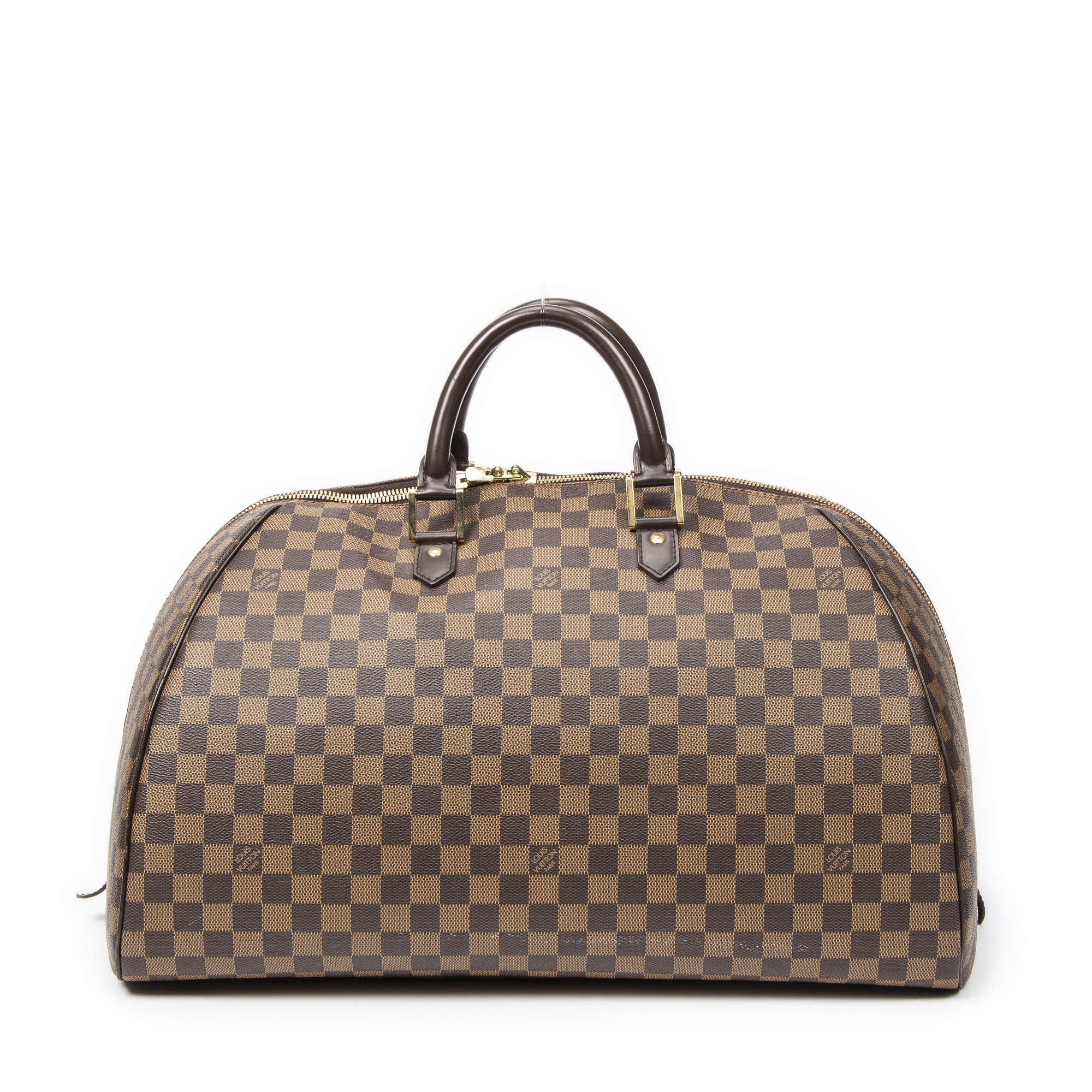 Louis Vuitton Travel Bag Ribera GM in Brown Damier Ebene and Golden Brass hardware. The product is in Excellent Condition (A).