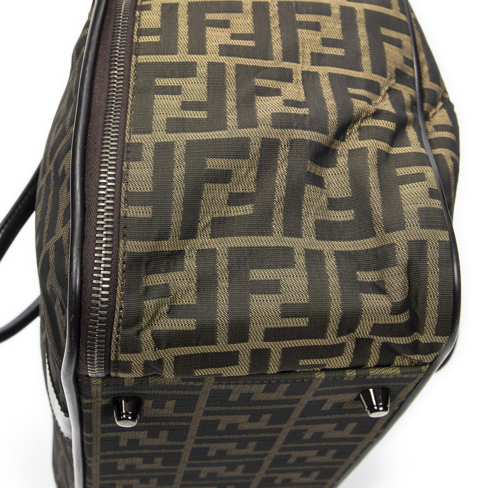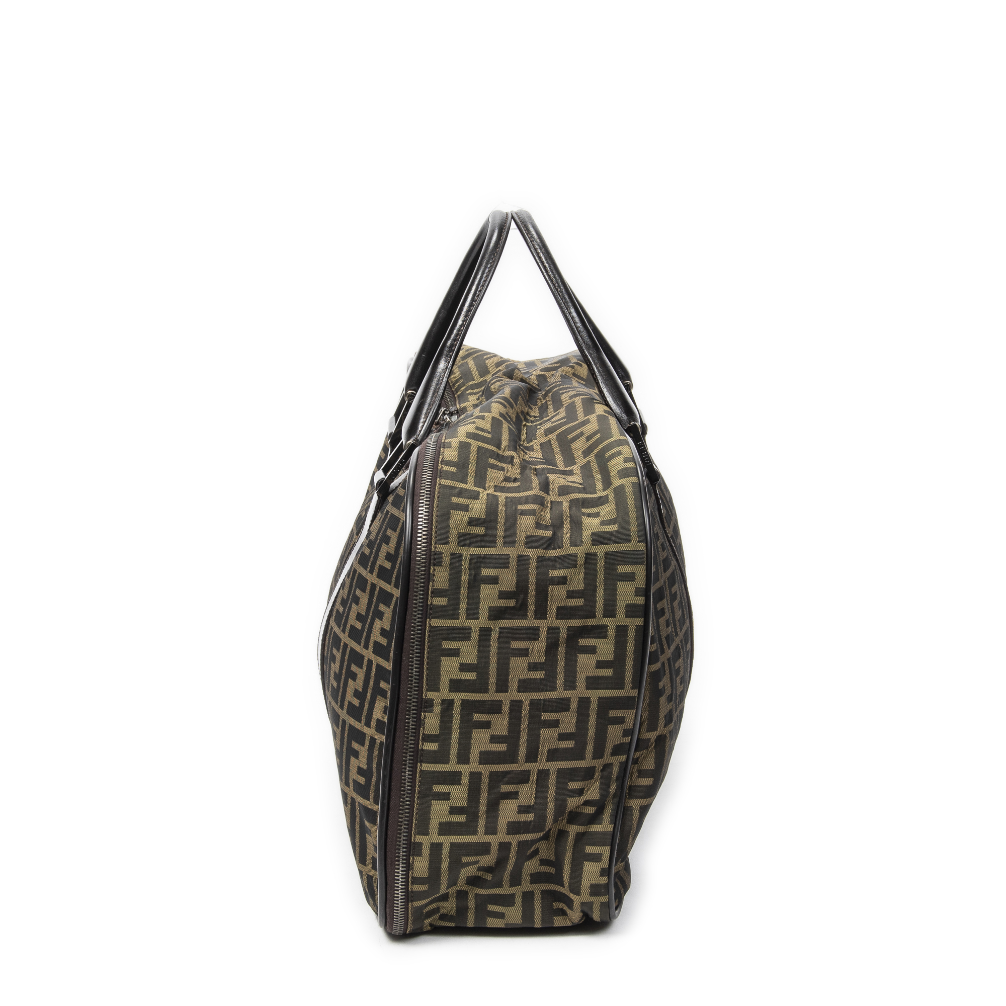 Fendi Travel Bag Soft Weekender in Tan/Dark Brown Zucca Canvas and Silver hardware. The product is in Excellent Condition (A).