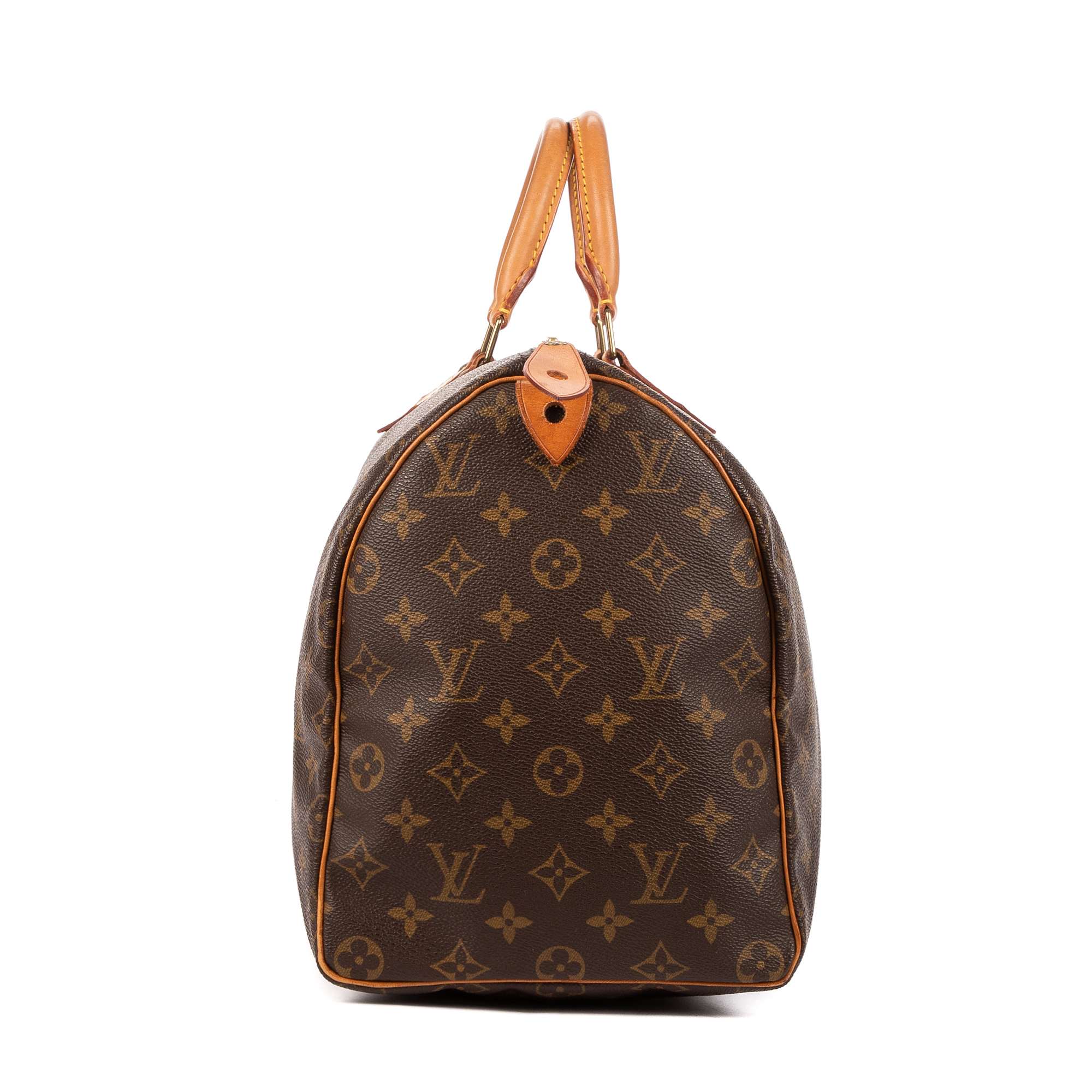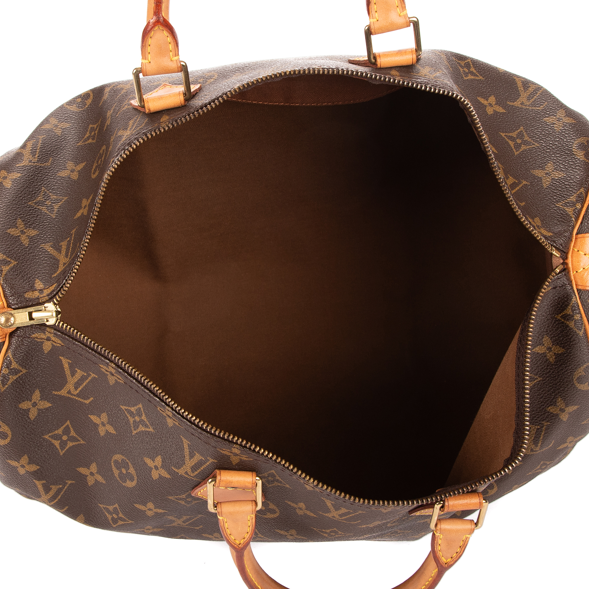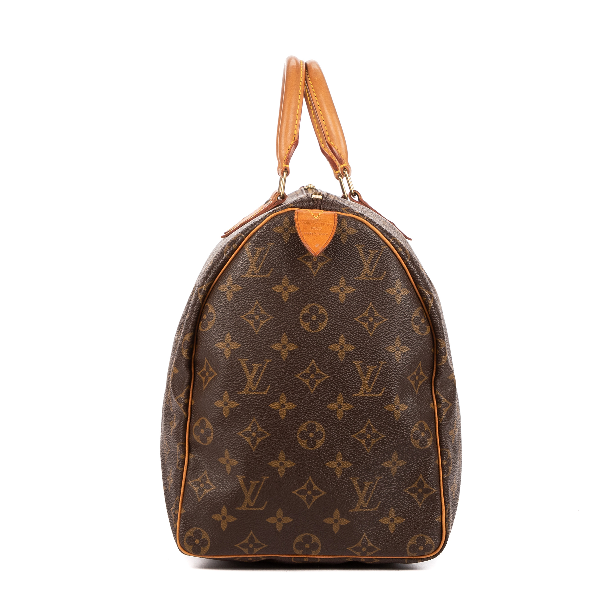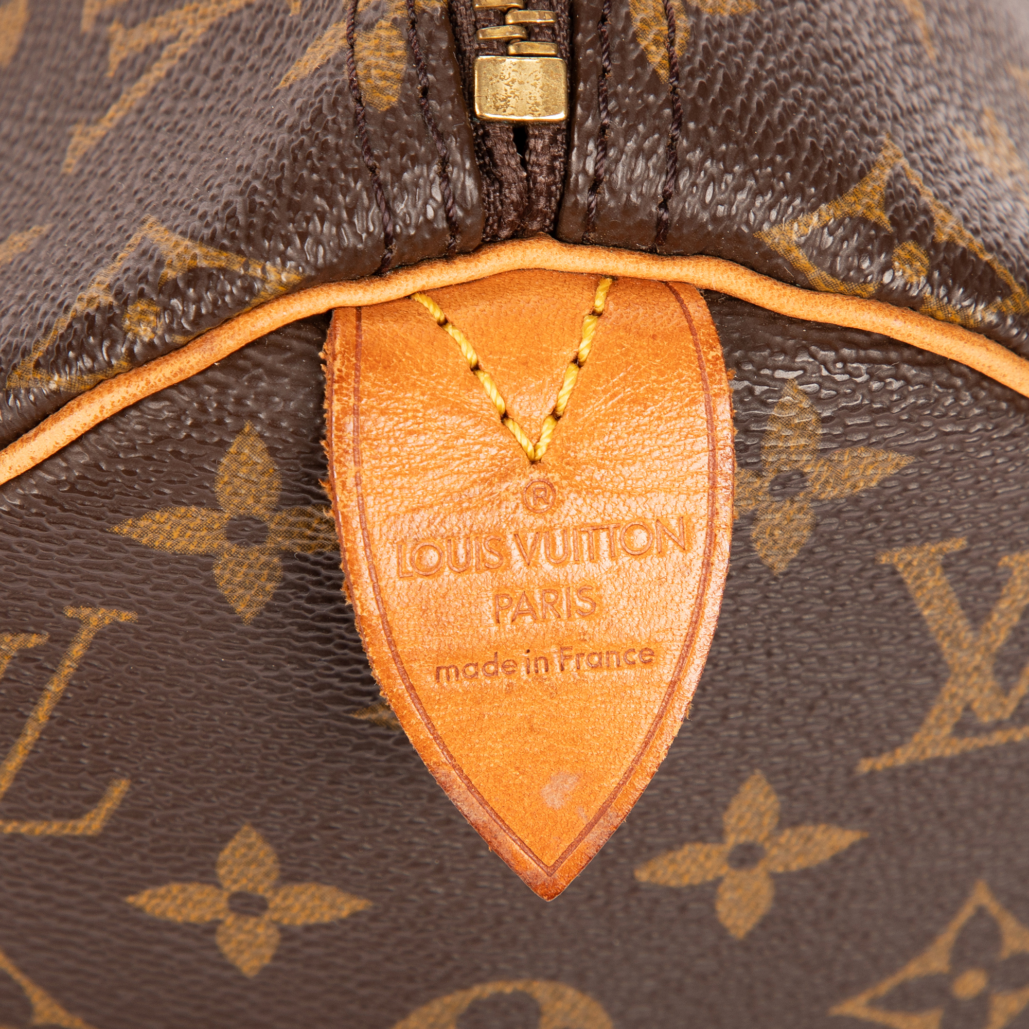 Louis Vuitton Travel Bag Speedy 35 in Brown Monogram Canvas and Golden Brass hardware. The product is in Excellent Condition (A).