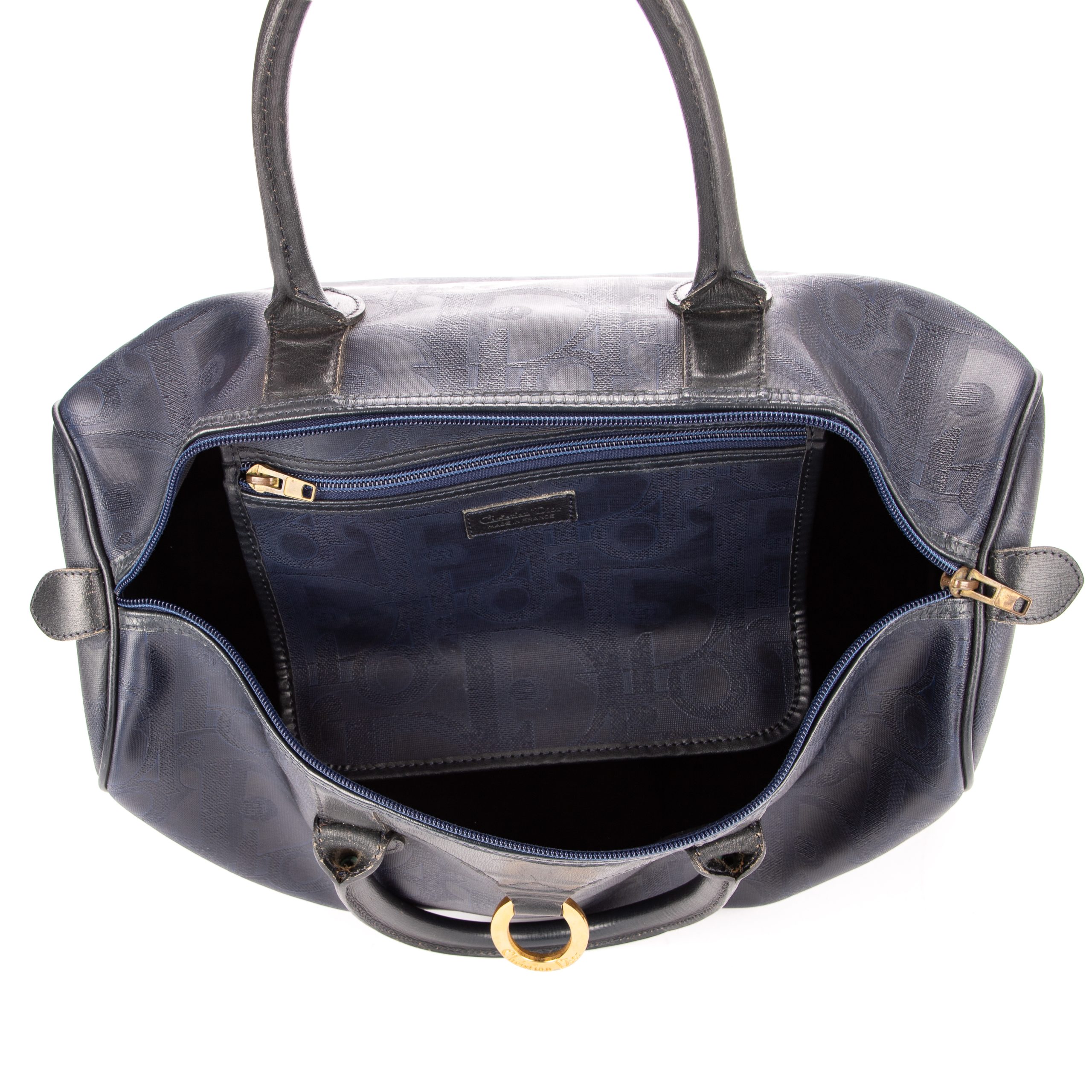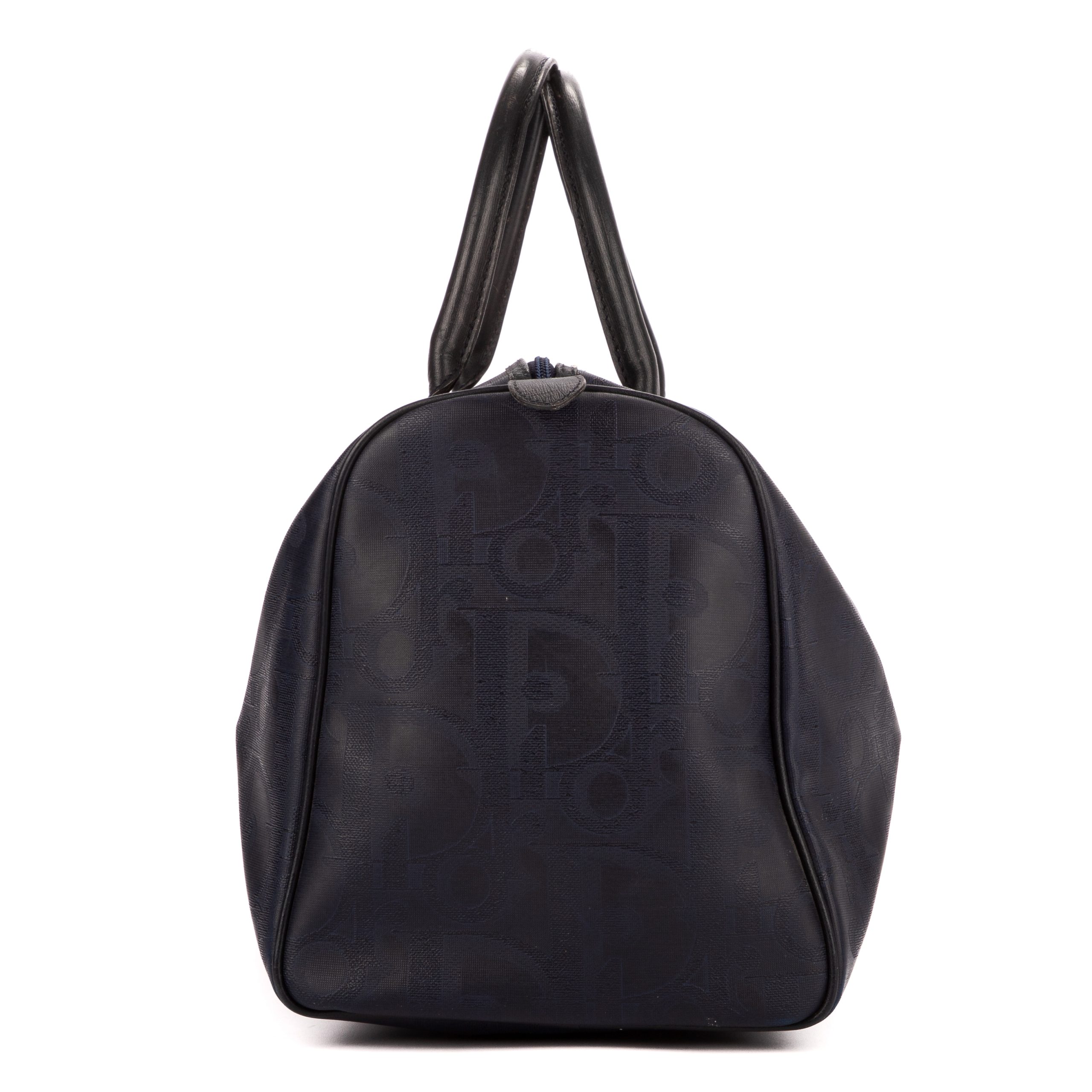 Dior Travel Bag Vintage Large Boston in Navy Diorissimo Coated Canvas and Gold hardware. The product is in Very Good Condition (AB).