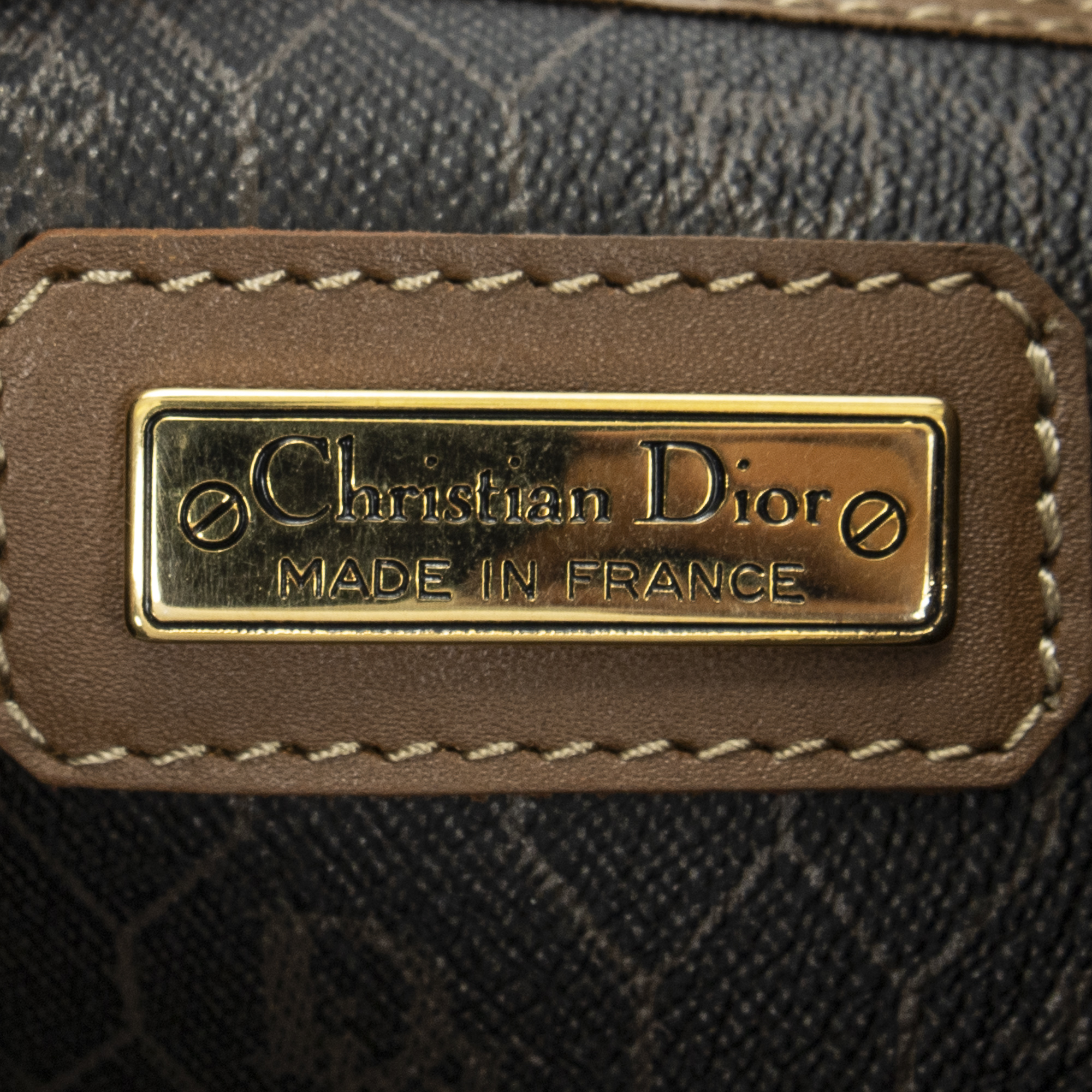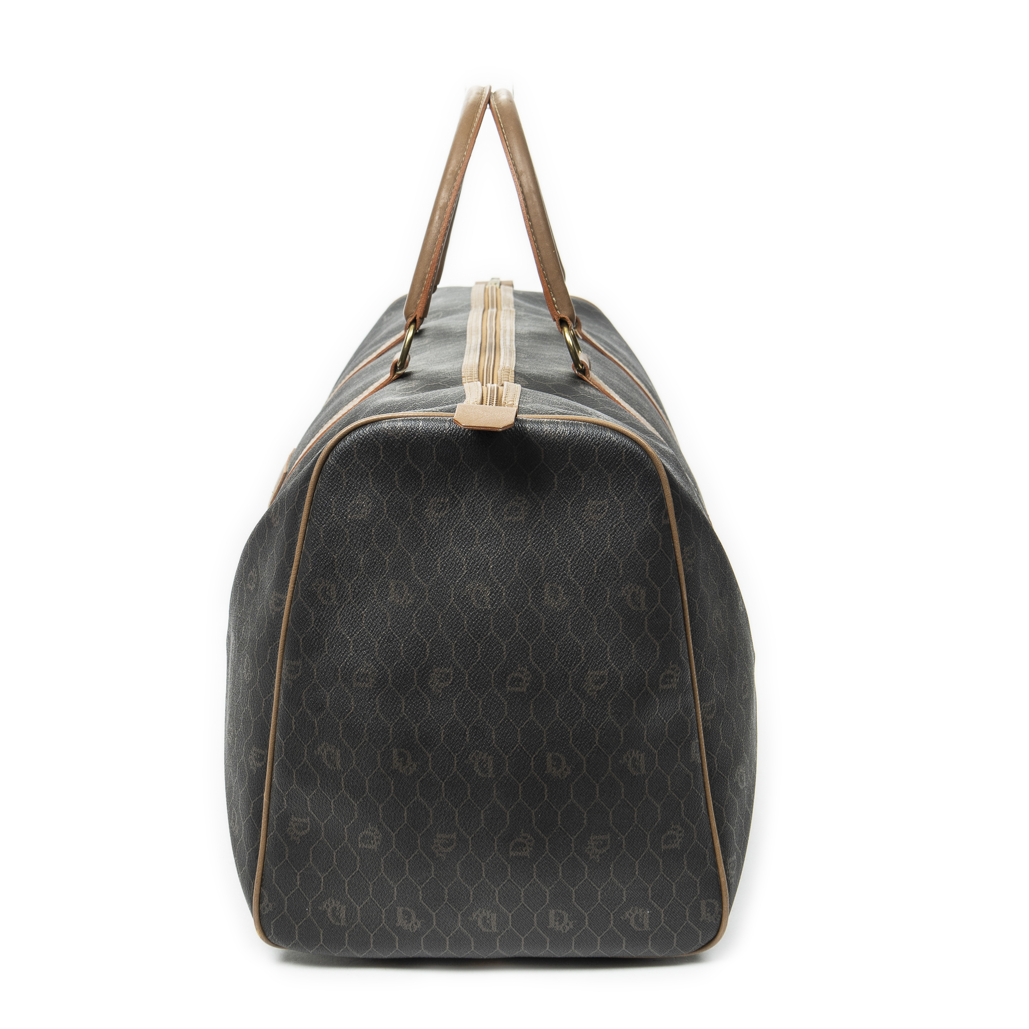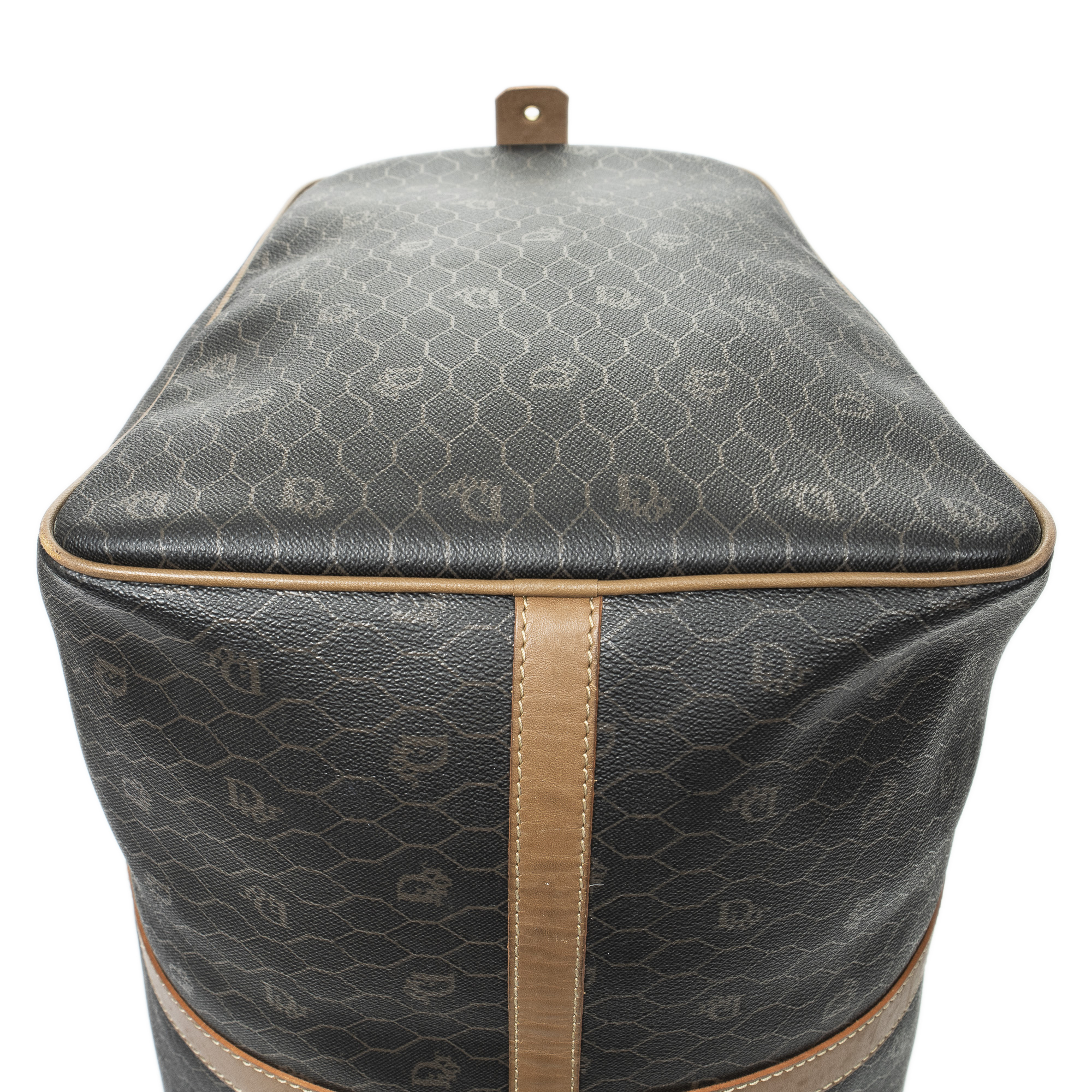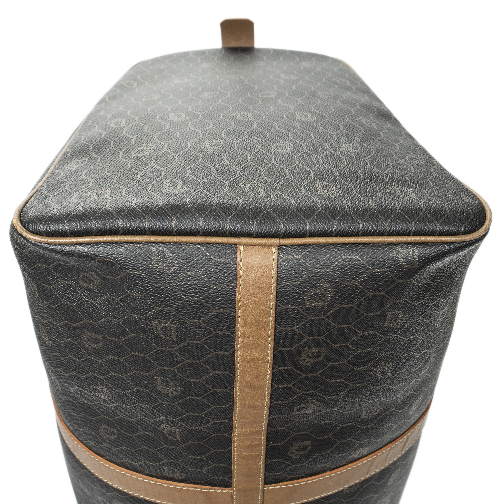 Dior Travel Bag Vintage Large Travel Boston in Grey/Brown Honeycomb Coated Canvas and Gold hardware. The product is in Very Good Condition (AB).