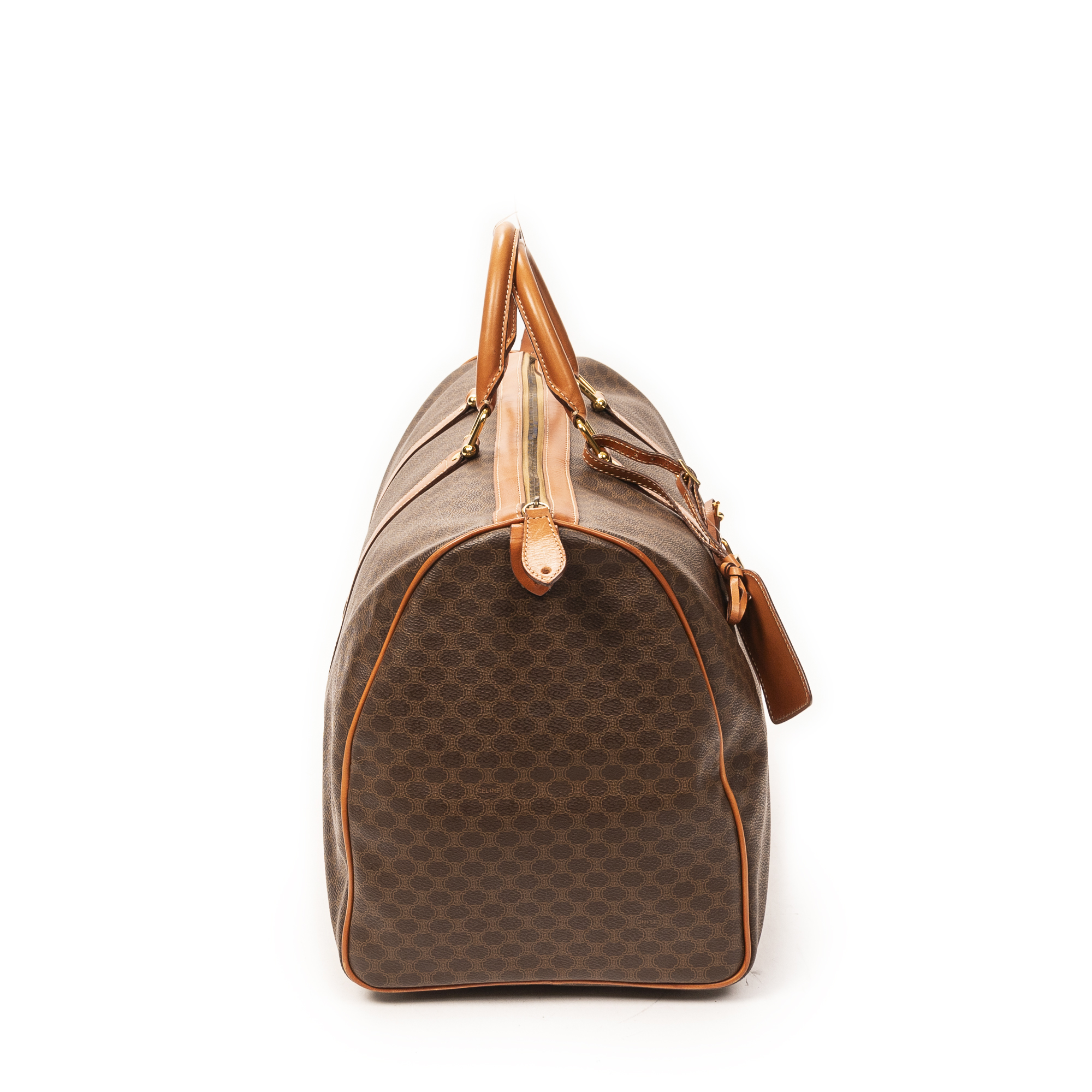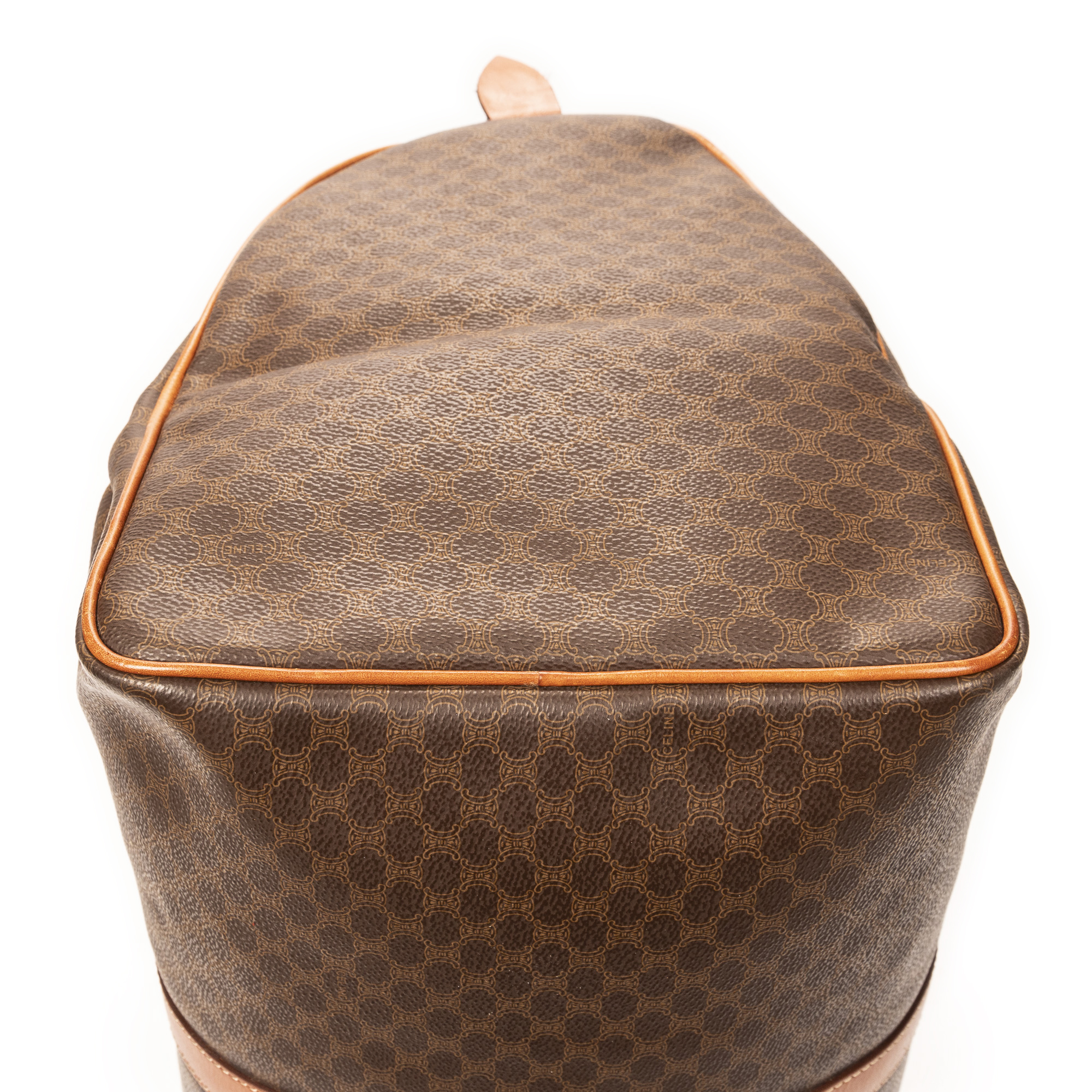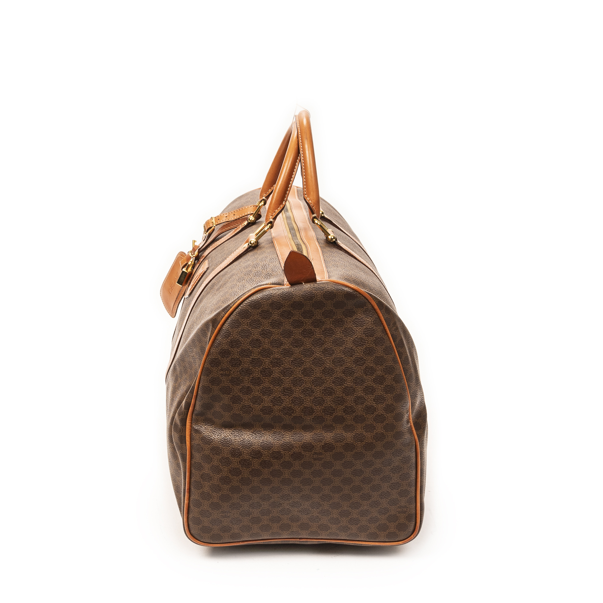 Celine Travel Bag Vintage Large Travel Boston in Brown Macadam Coated Canvas and Gold hardware. The product is in Excellent Condition (A).