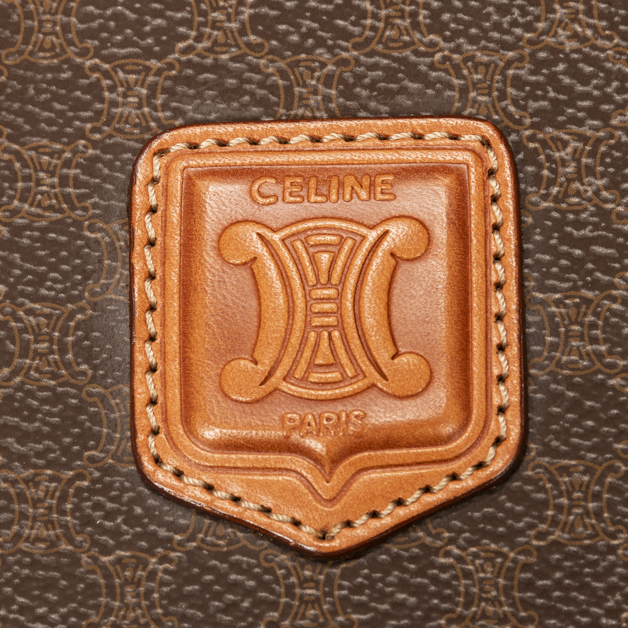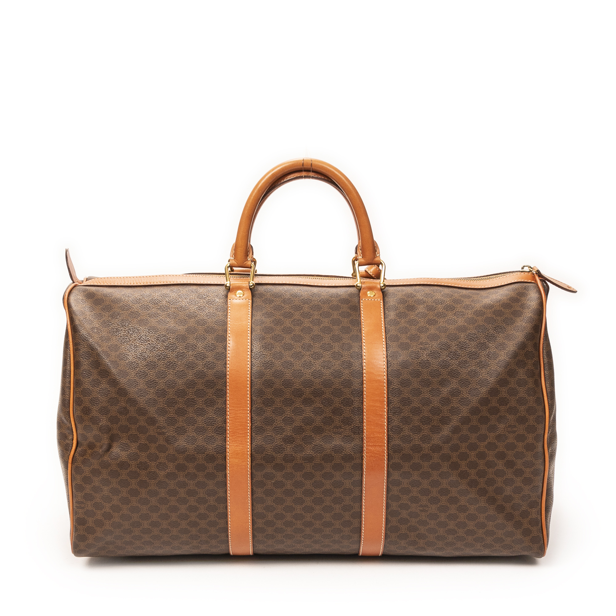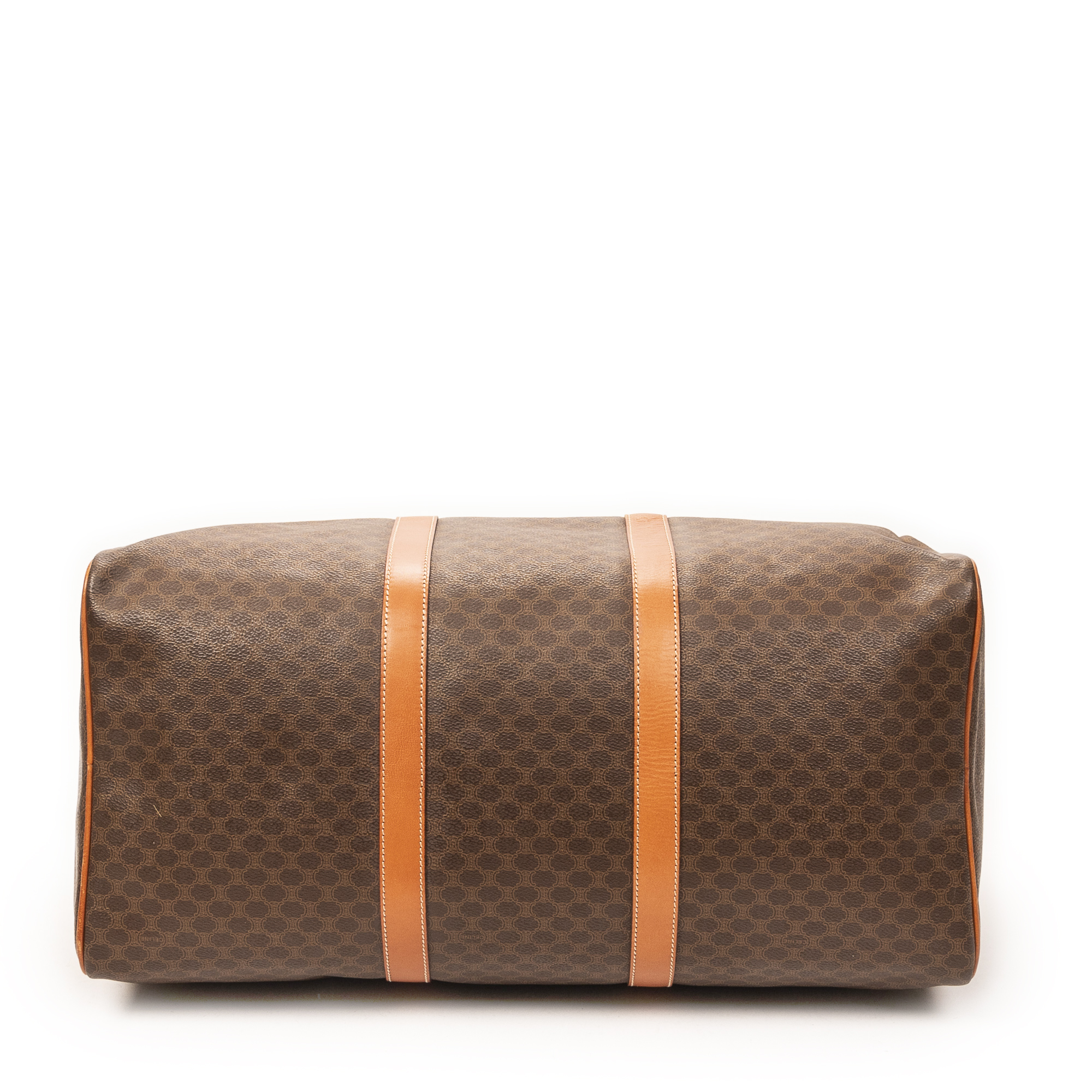 Celine Travel Bag Vintage Large Travel Boston in Brown Macadam Coated Canvas and Gold hardware. The product is in Excellent Condition (A).