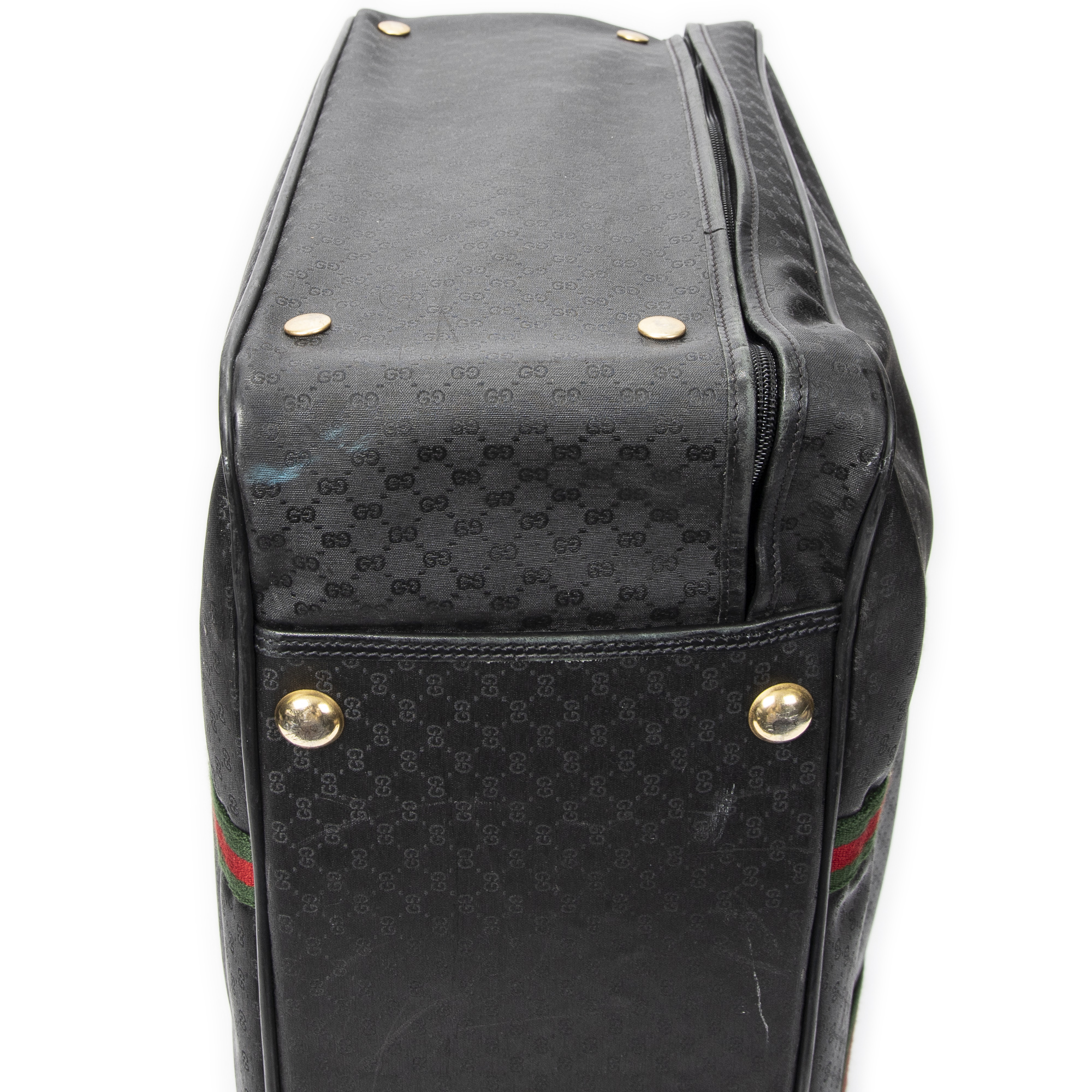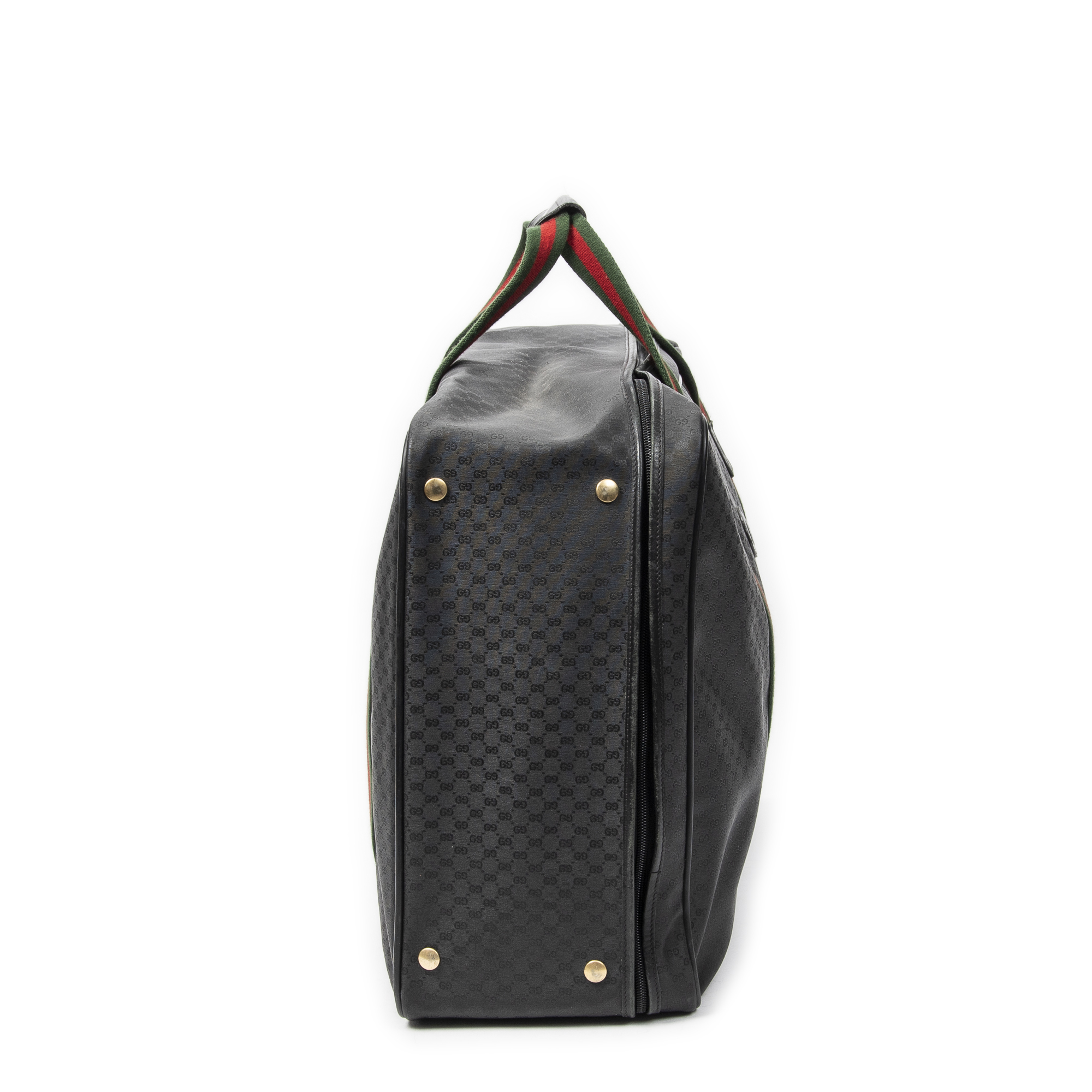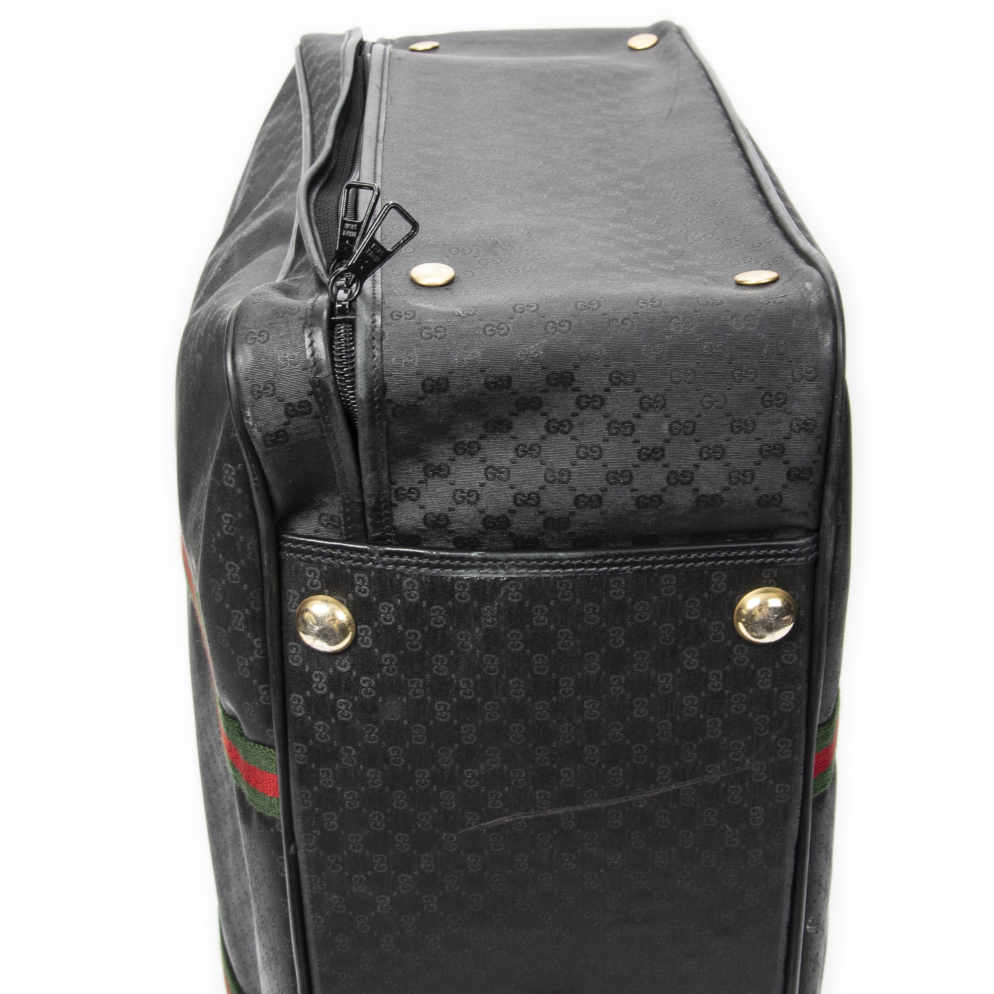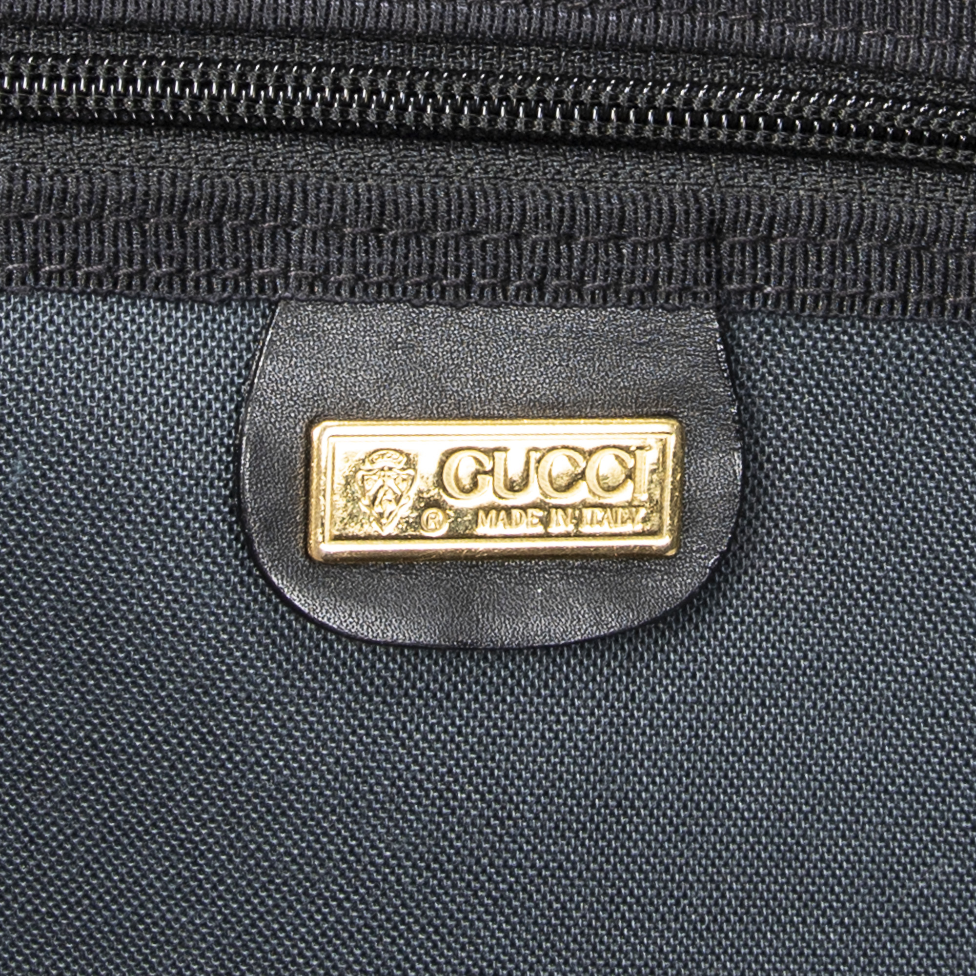 Gucci Travel Bag Vintage Large Travel Suitcase in Black Microguccissima Coated Canvas and Gold hardware. The product is in Very Good Condition (AB).