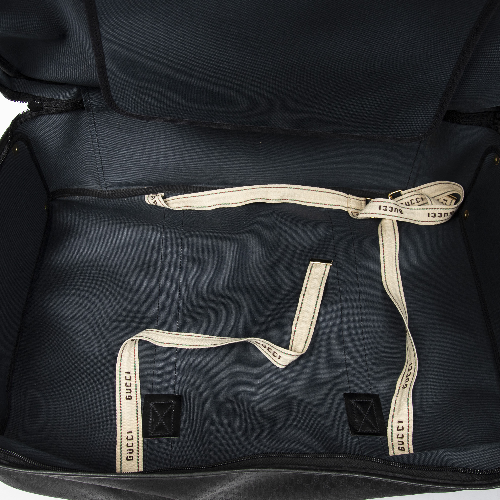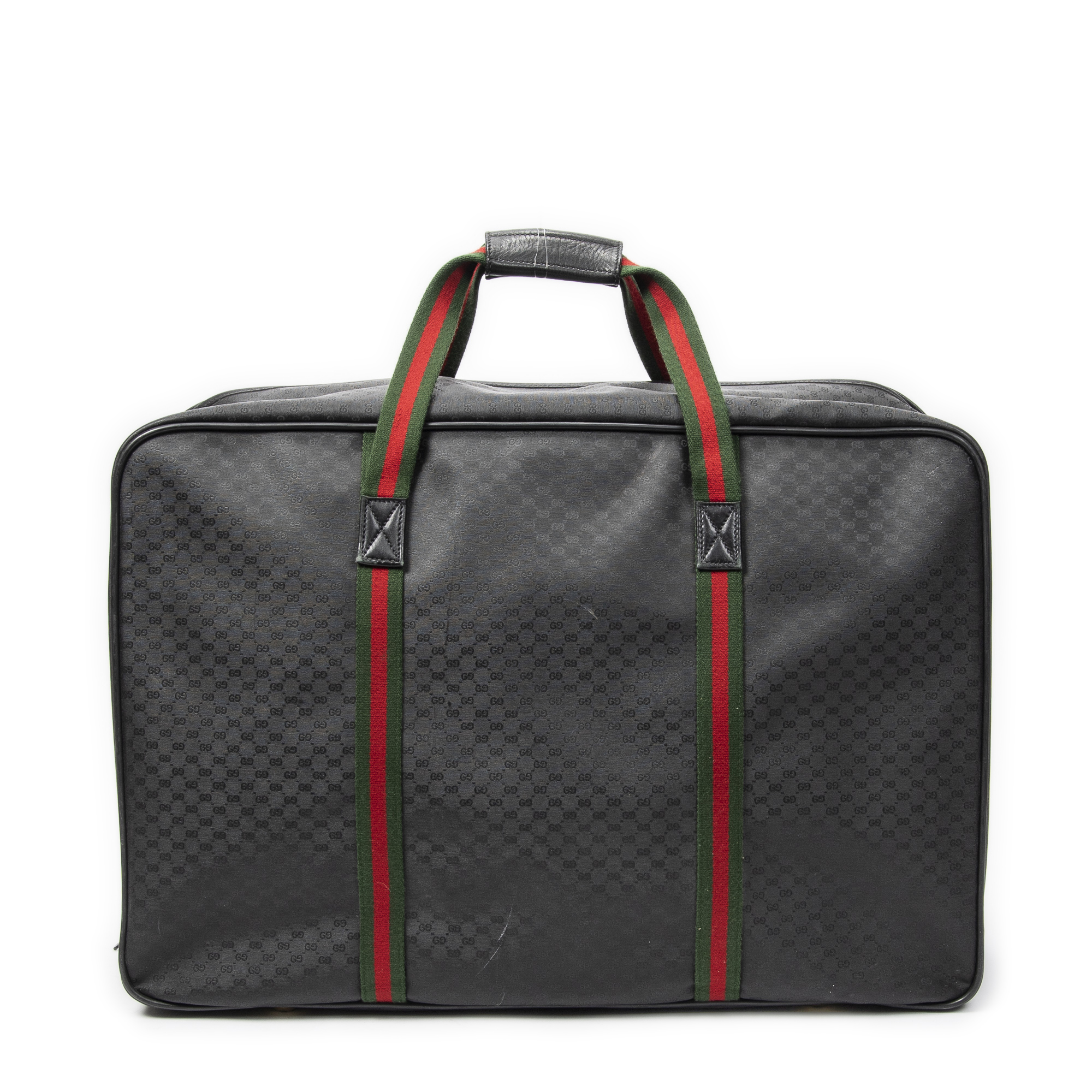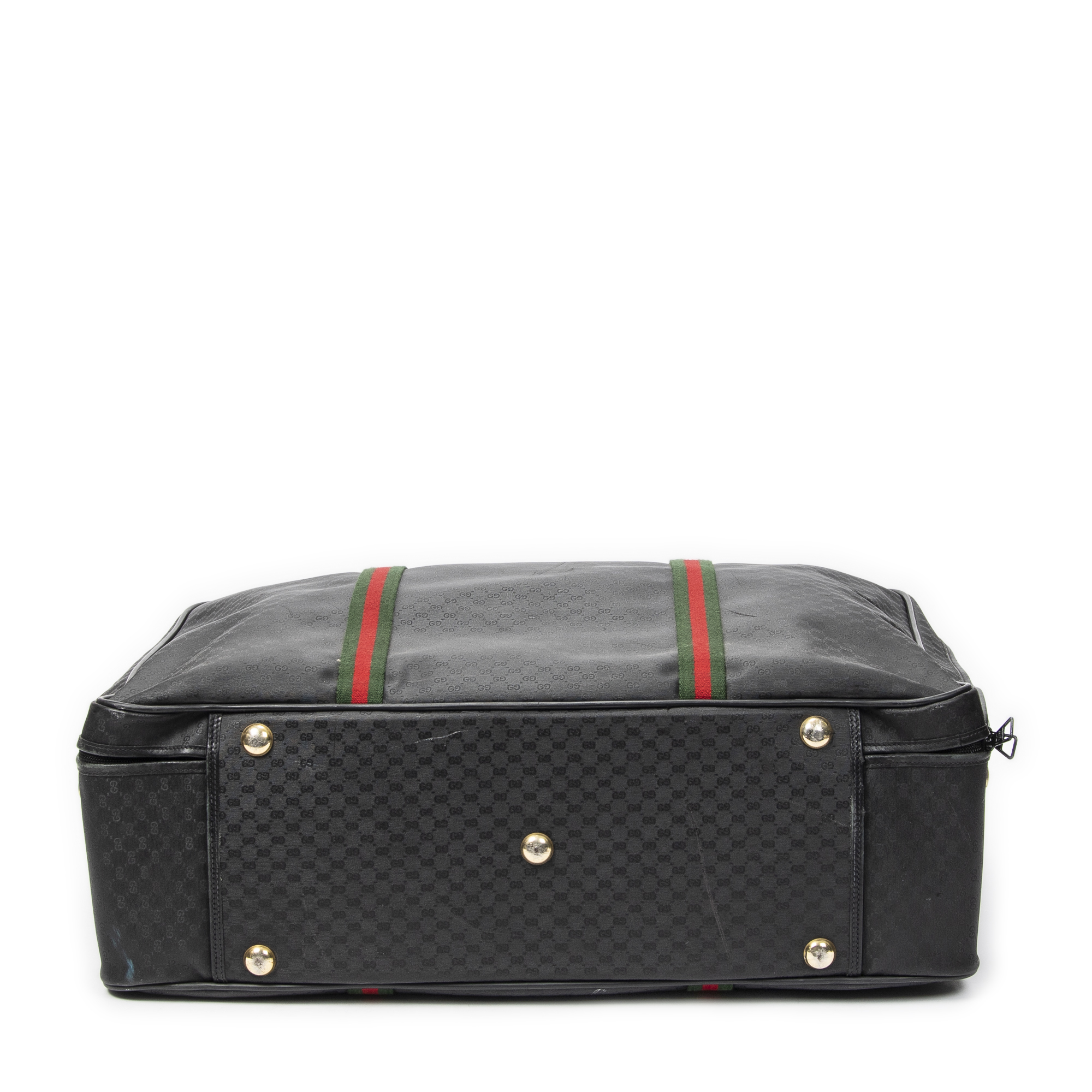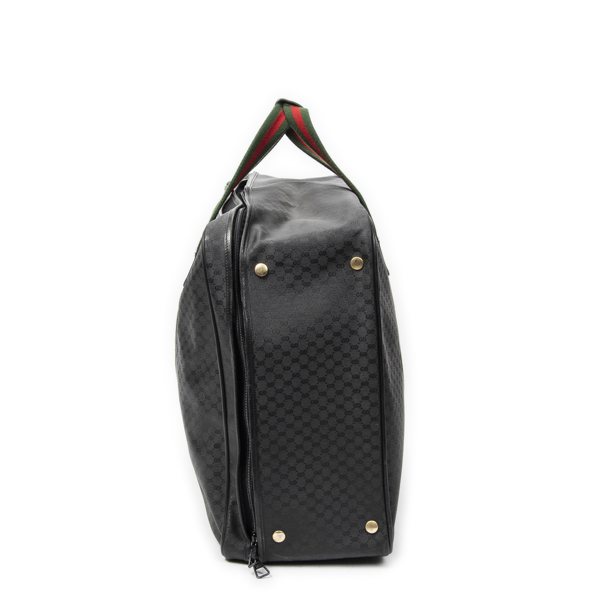 Gucci Travel Bag Vintage Large Travel Suitcase in Black Microguccissima Coated Canvas and Gold hardware. The product is in Very Good Condition (AB).