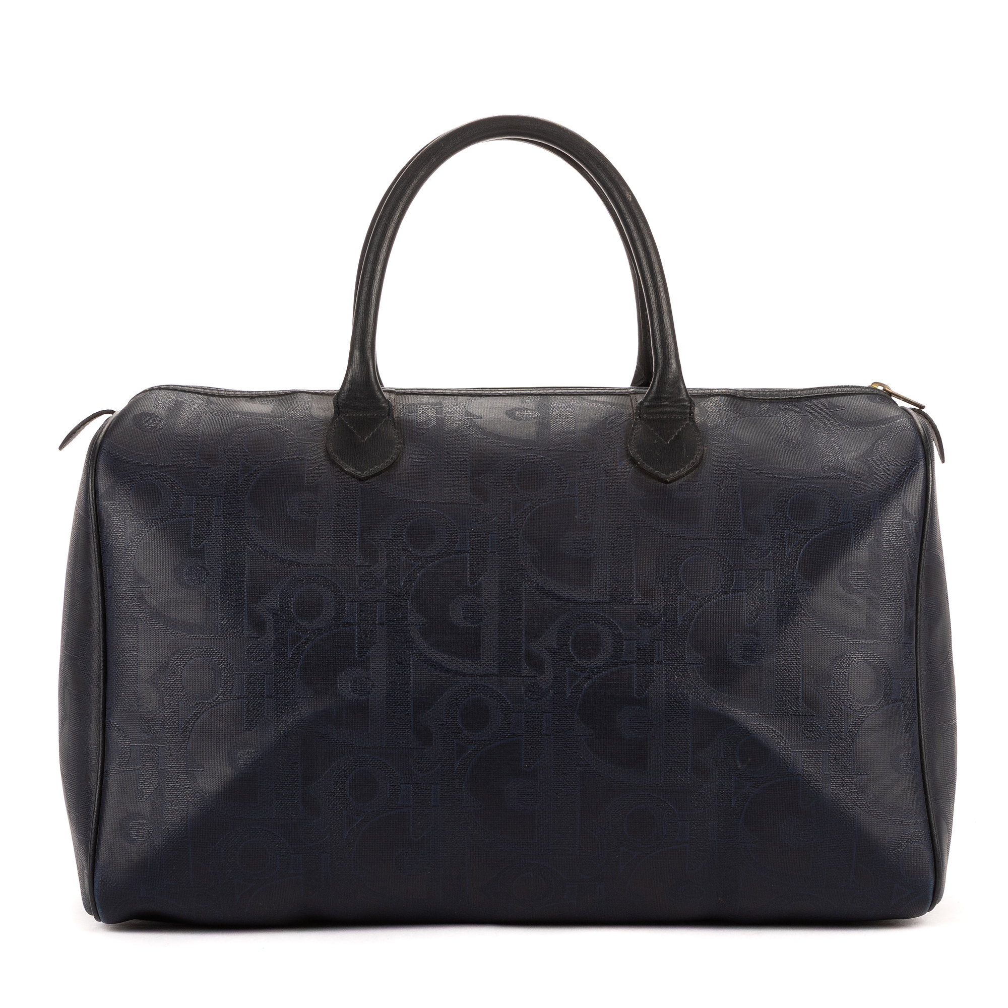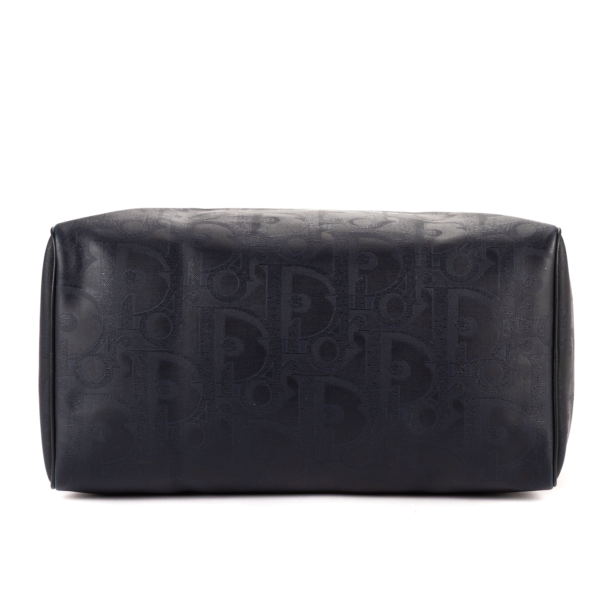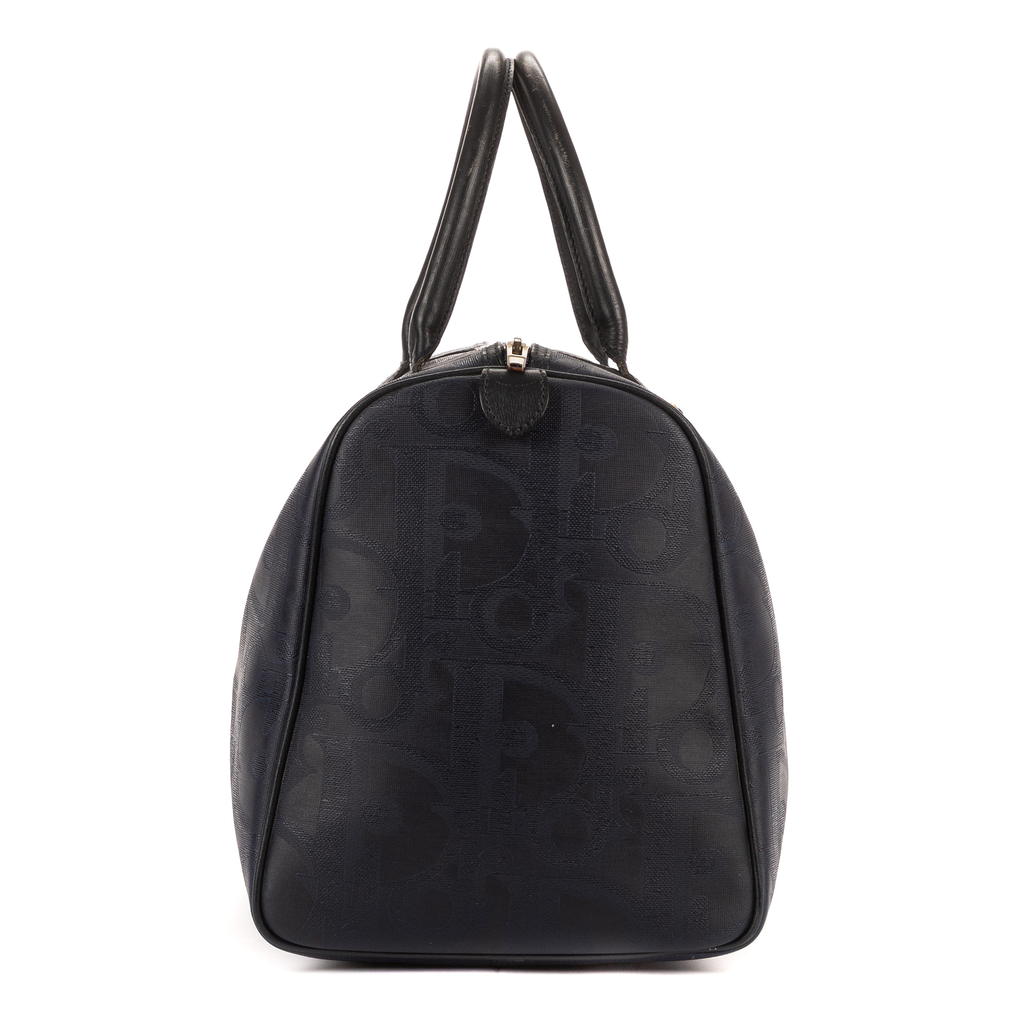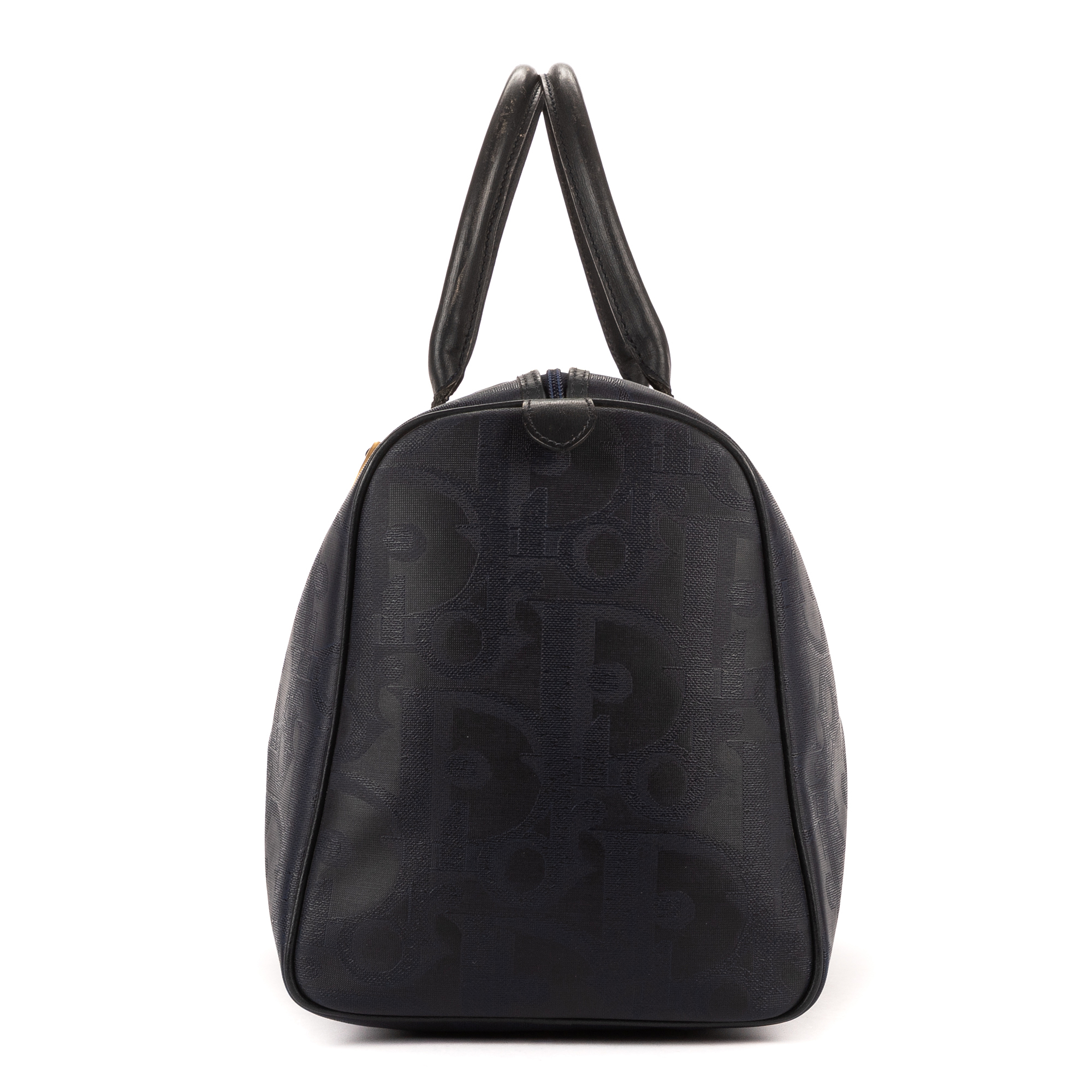 Dior Travel Bag Vintage Medium Travel Boston in Navy Maxi Diorissimo Coated Canvas and Gold hardware. The product is in Very Good Condition (AB).