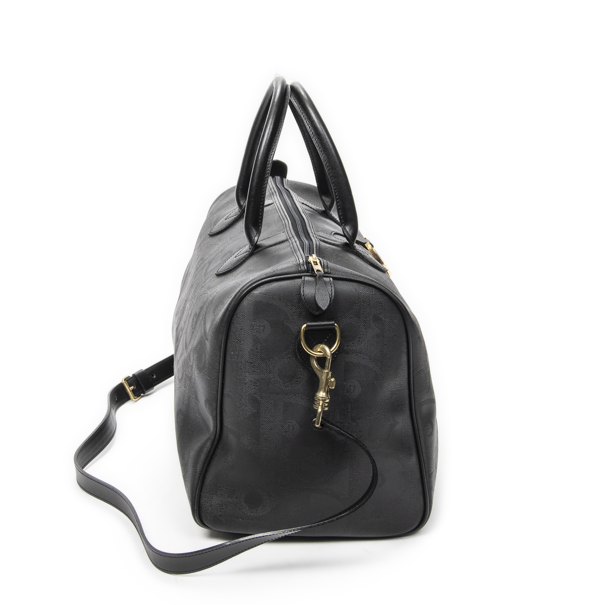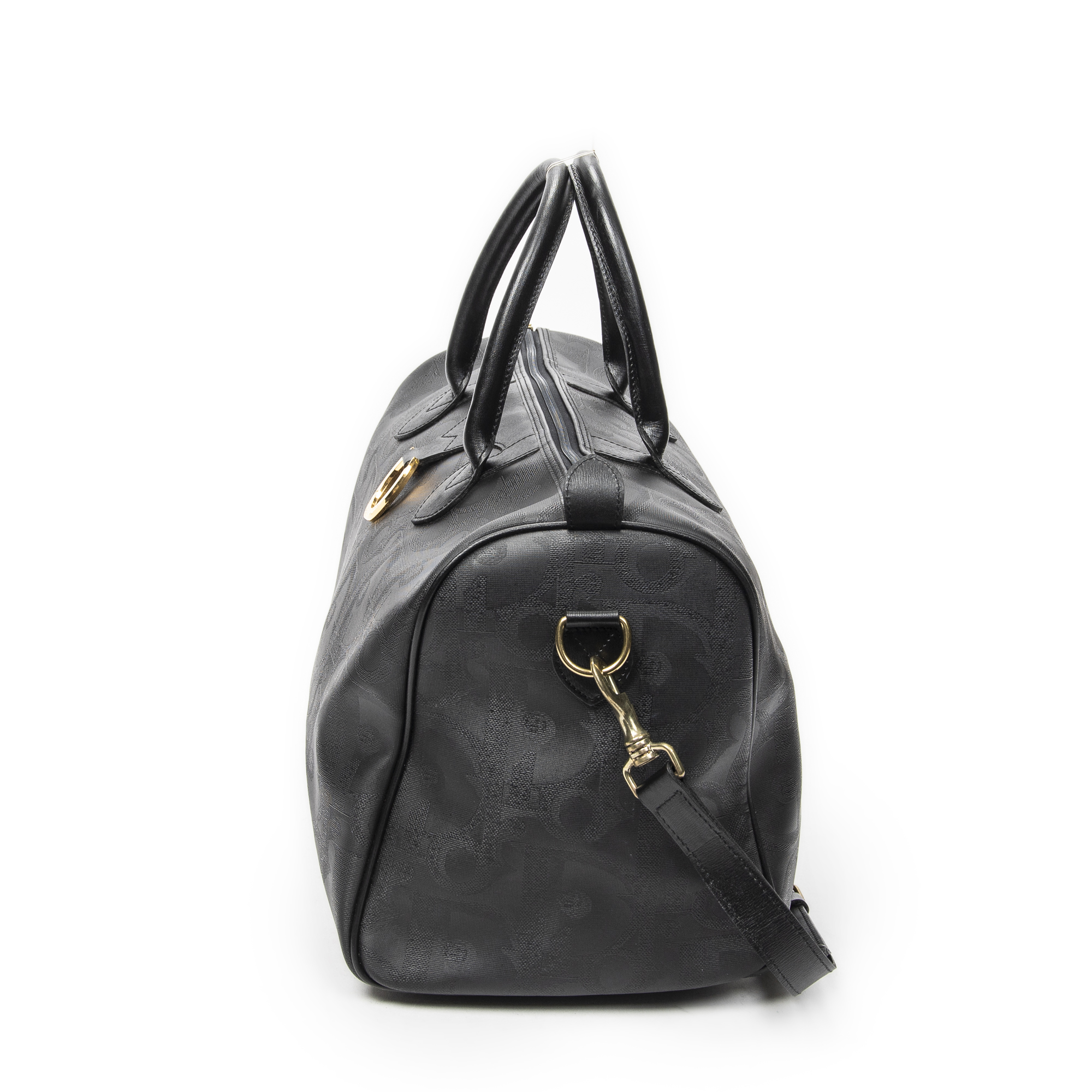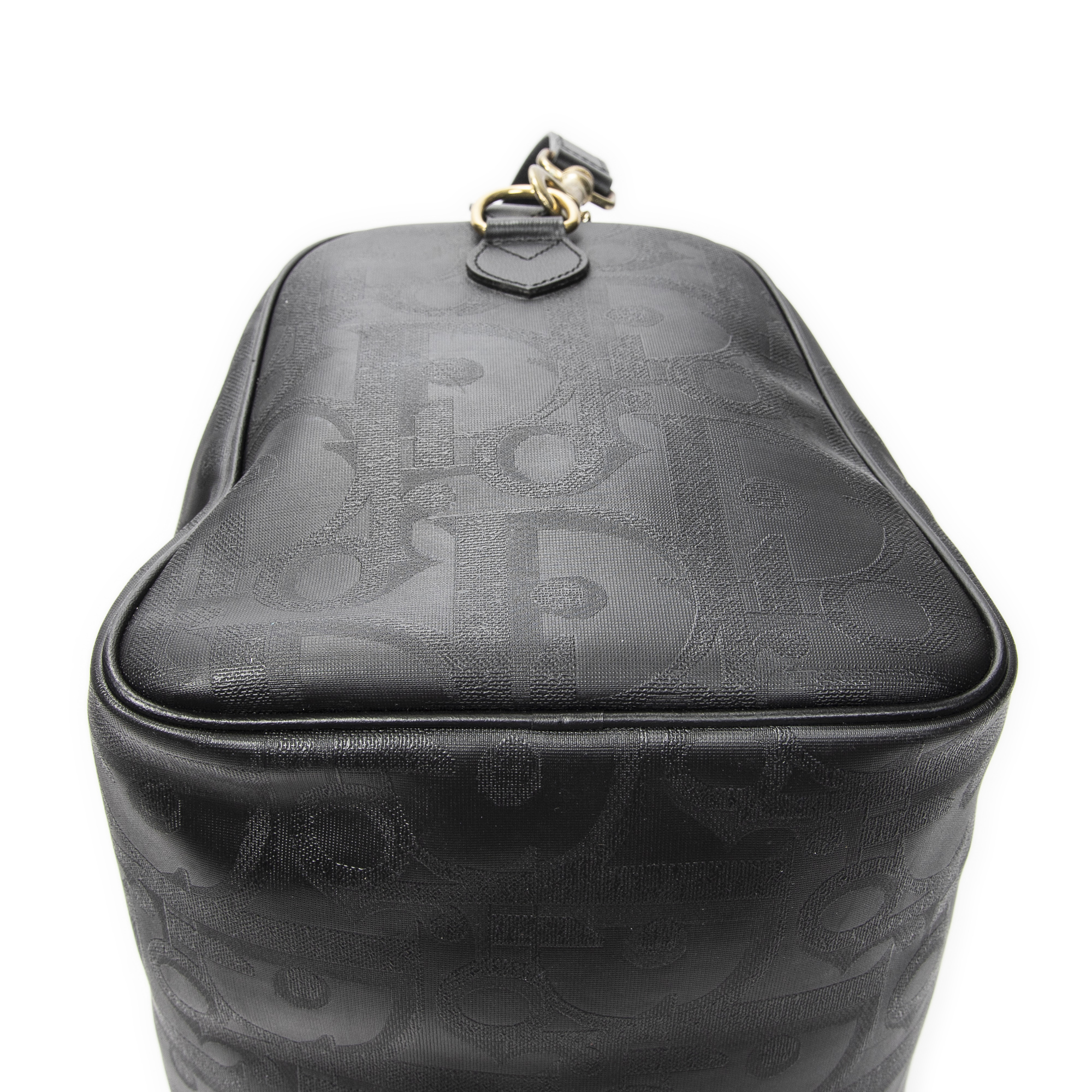 Dior Travel Bag Vintage Medium Travel Boston in Black Diorissimo Coated Canvas and Gold hardware. The product is in Excellent Condition (A).