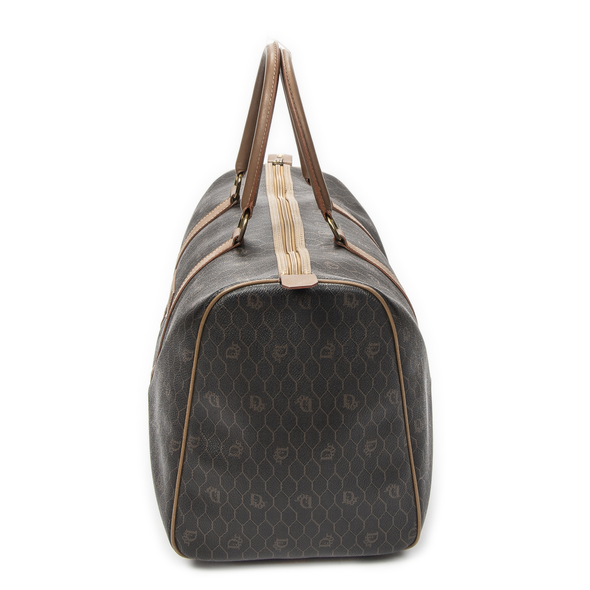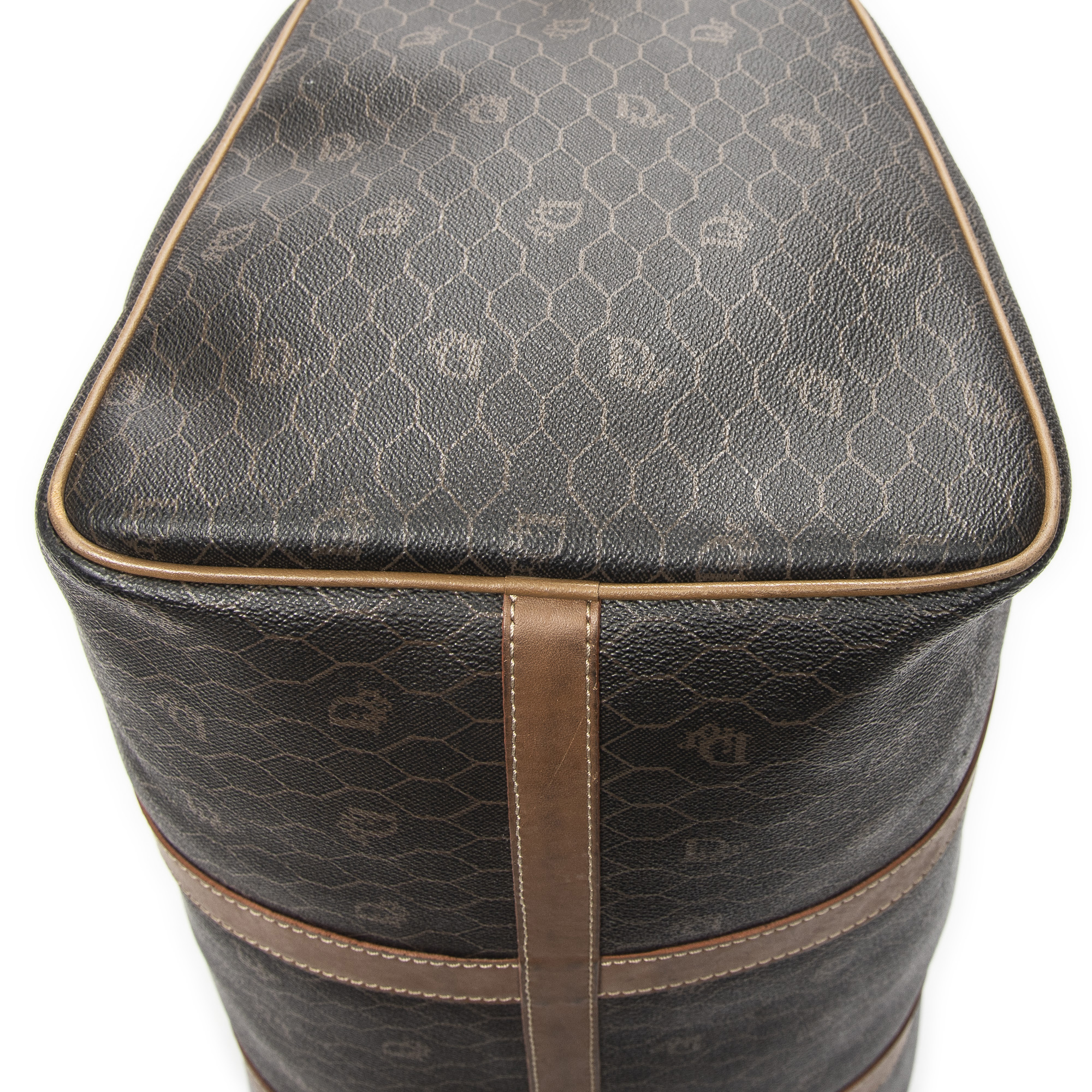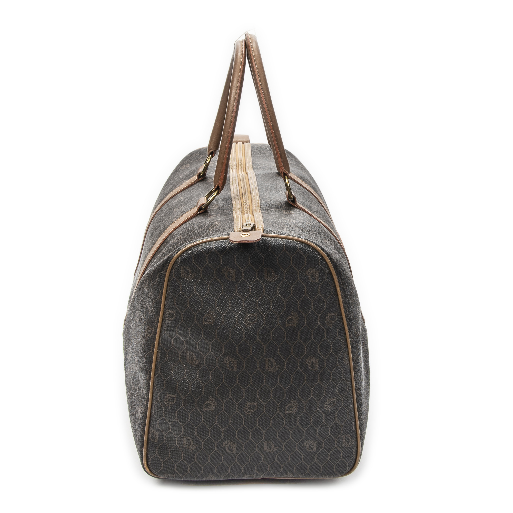 Dior Travel Bag Vintage Medium Travel Boston in Dark Grey/Brown Honeycomb Coated Canvas and Gold hardware. The product is in Very Good Condition (AB).