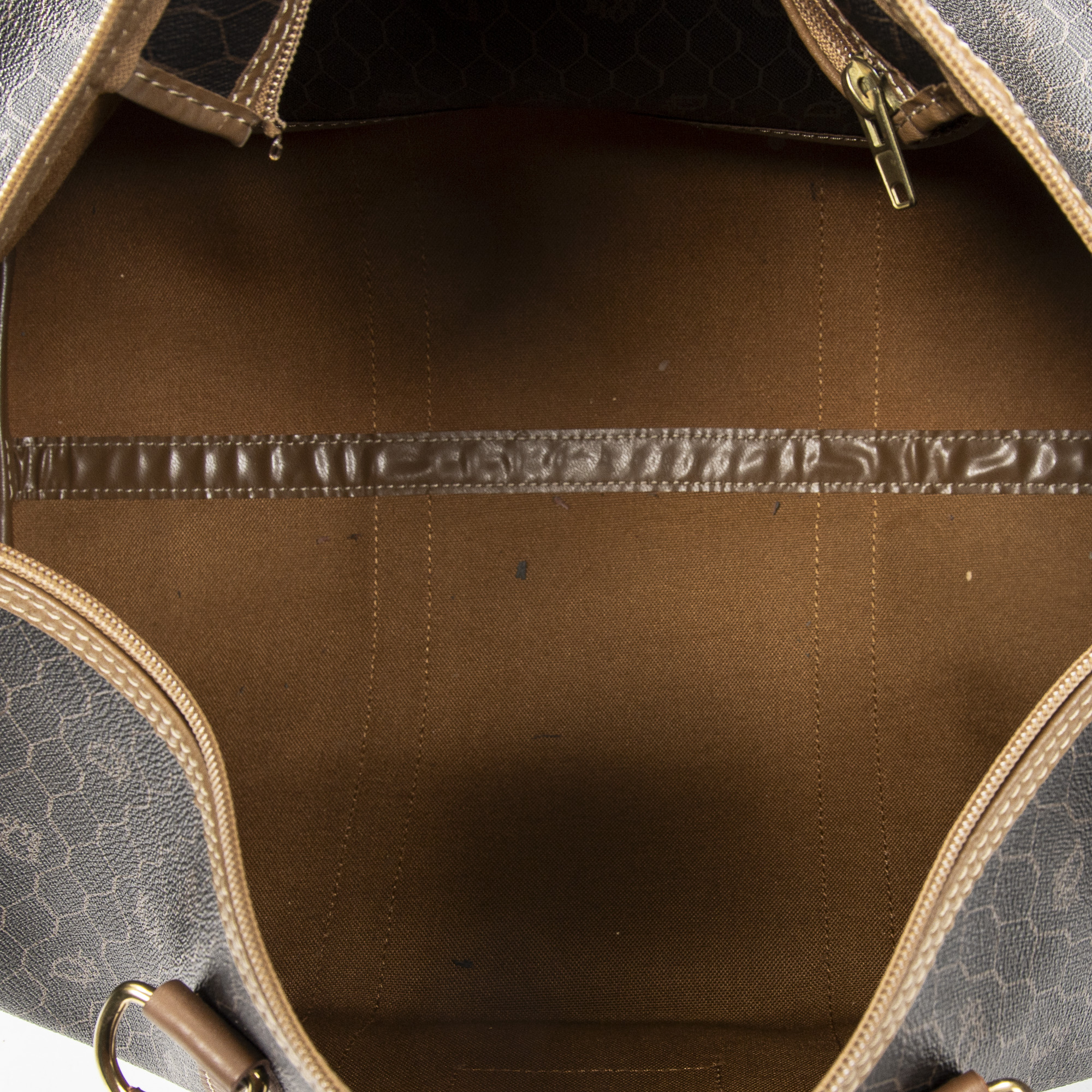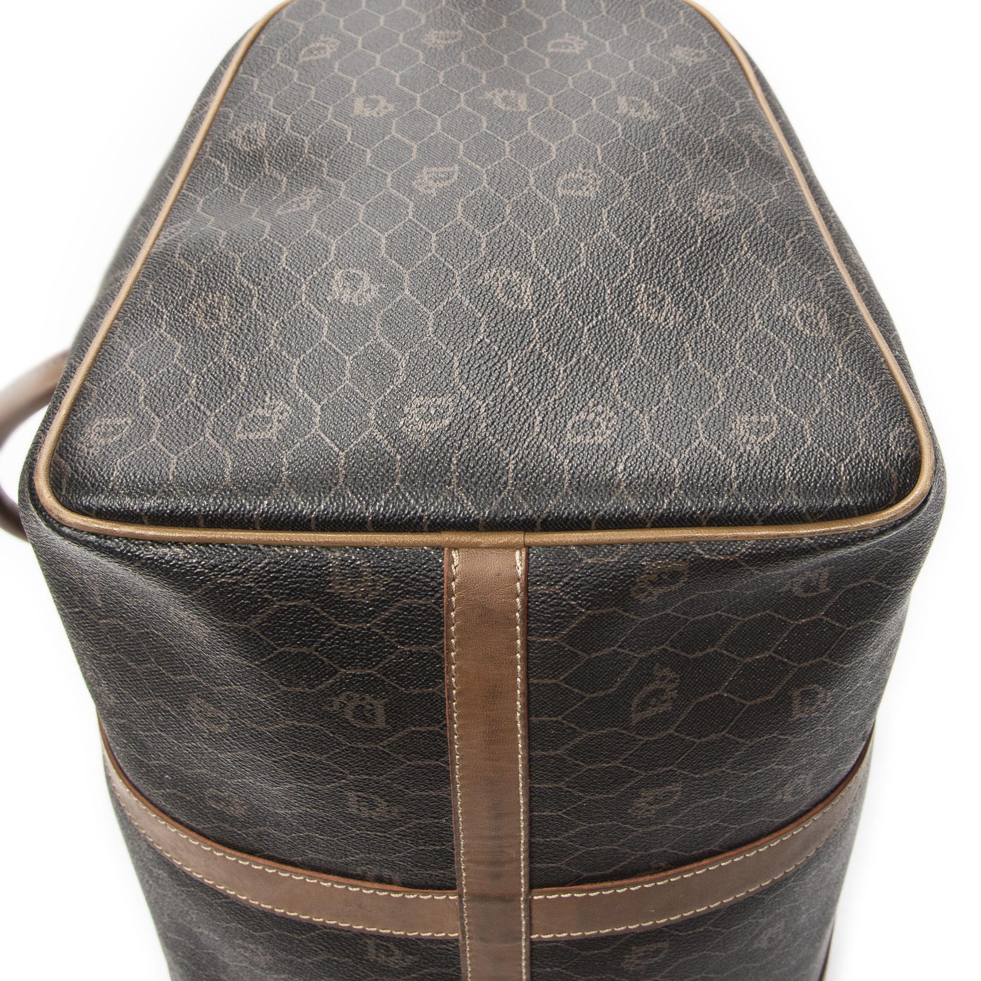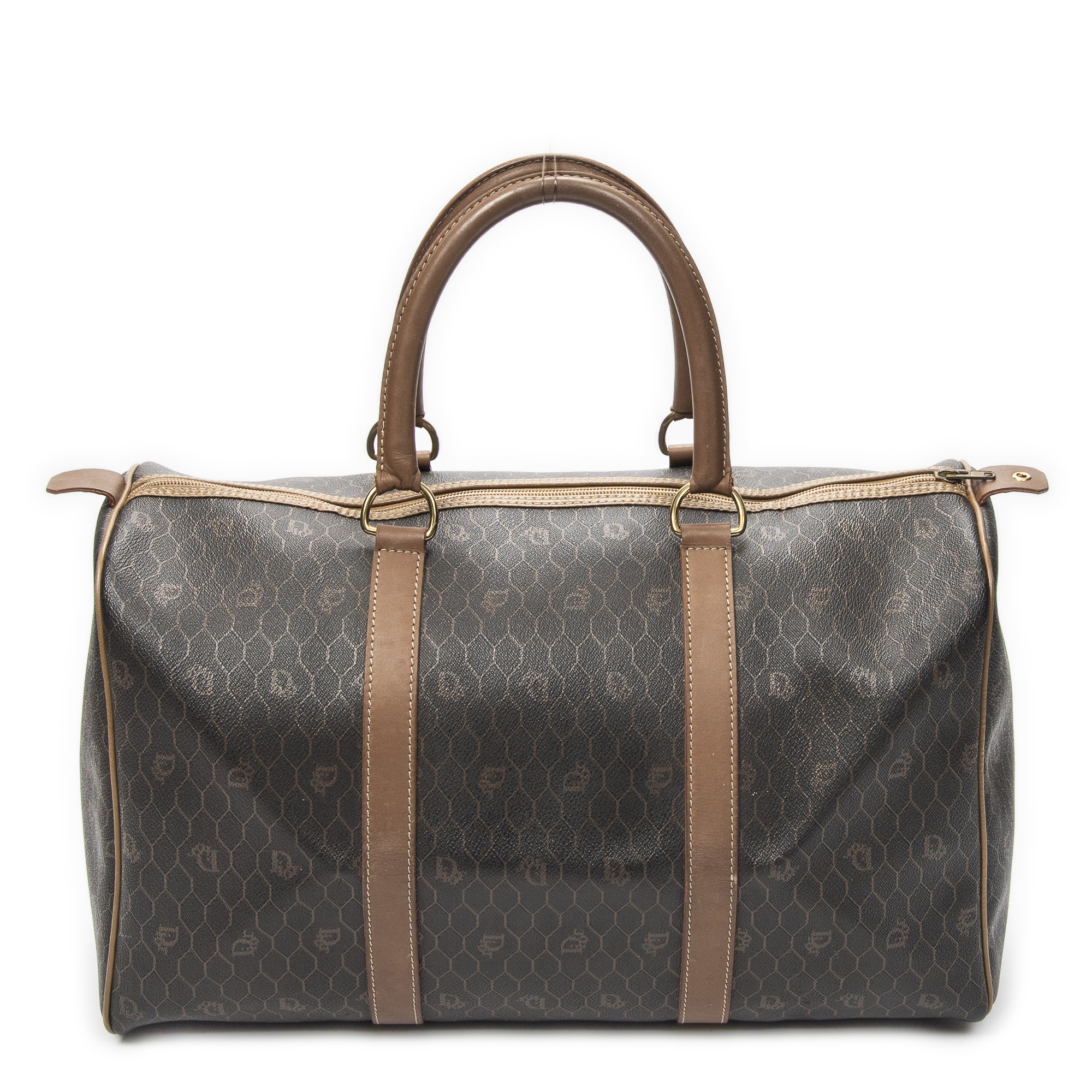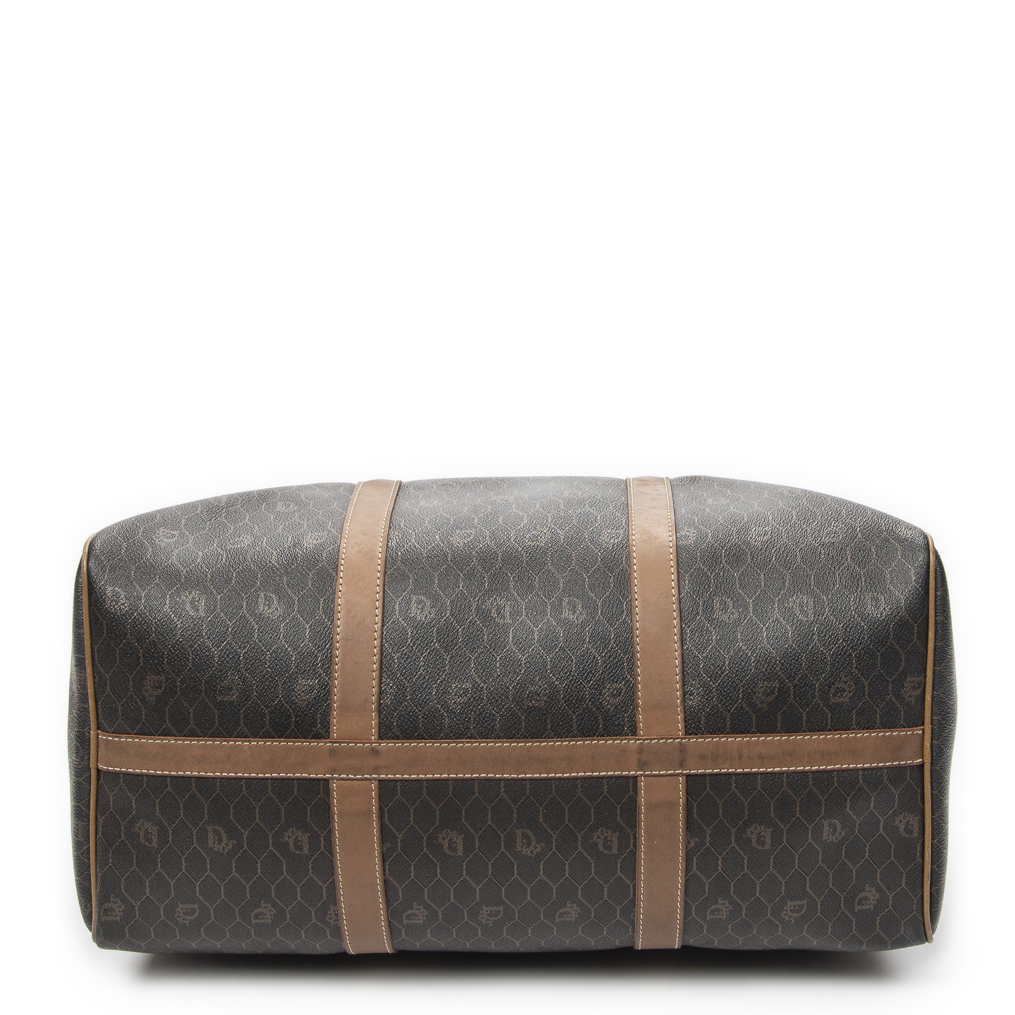 Dior Travel Bag Vintage Medium Travel Boston in Dark Grey/Brown Honeycomb Coated Canvas and Gold hardware. The product is in Very Good Condition (AB).