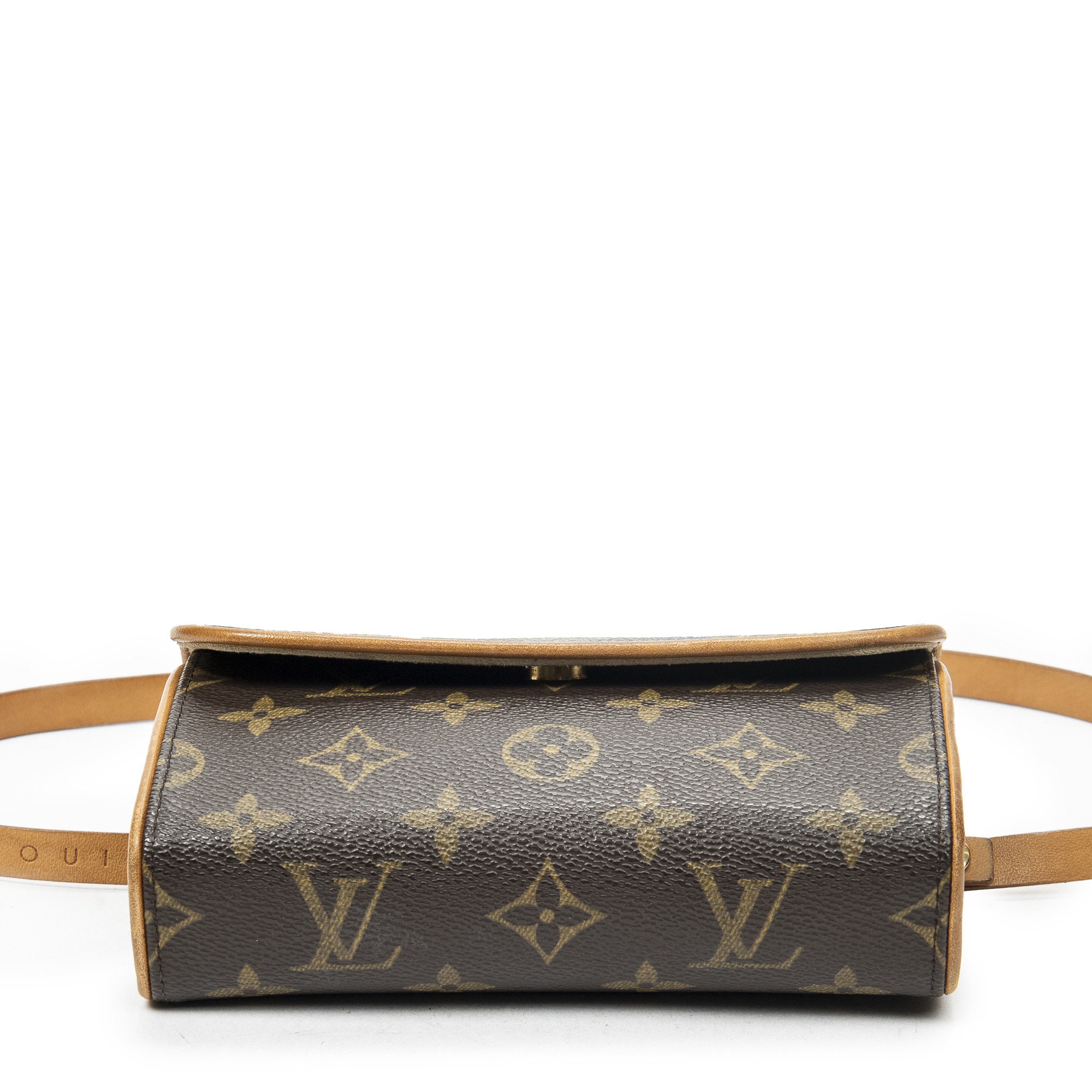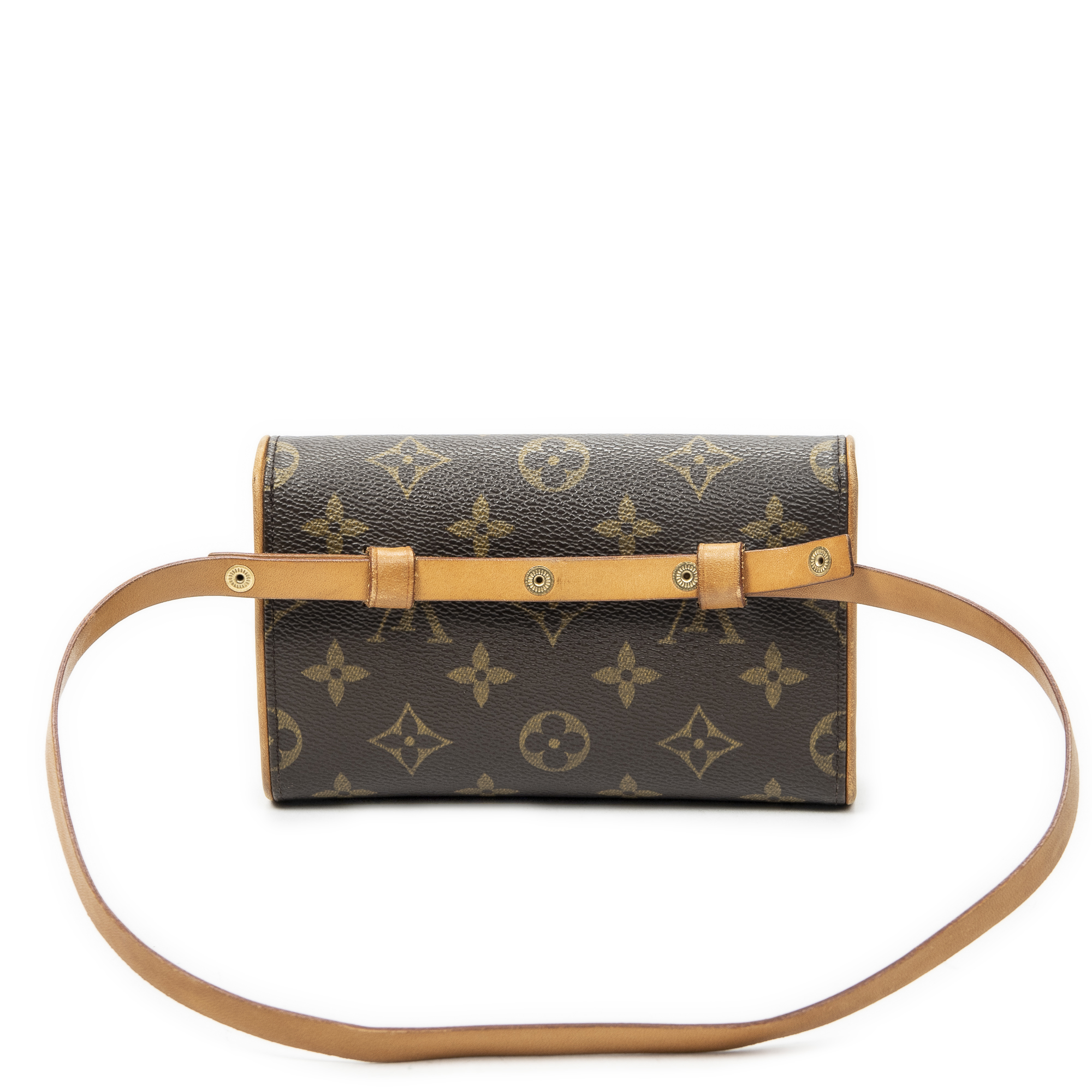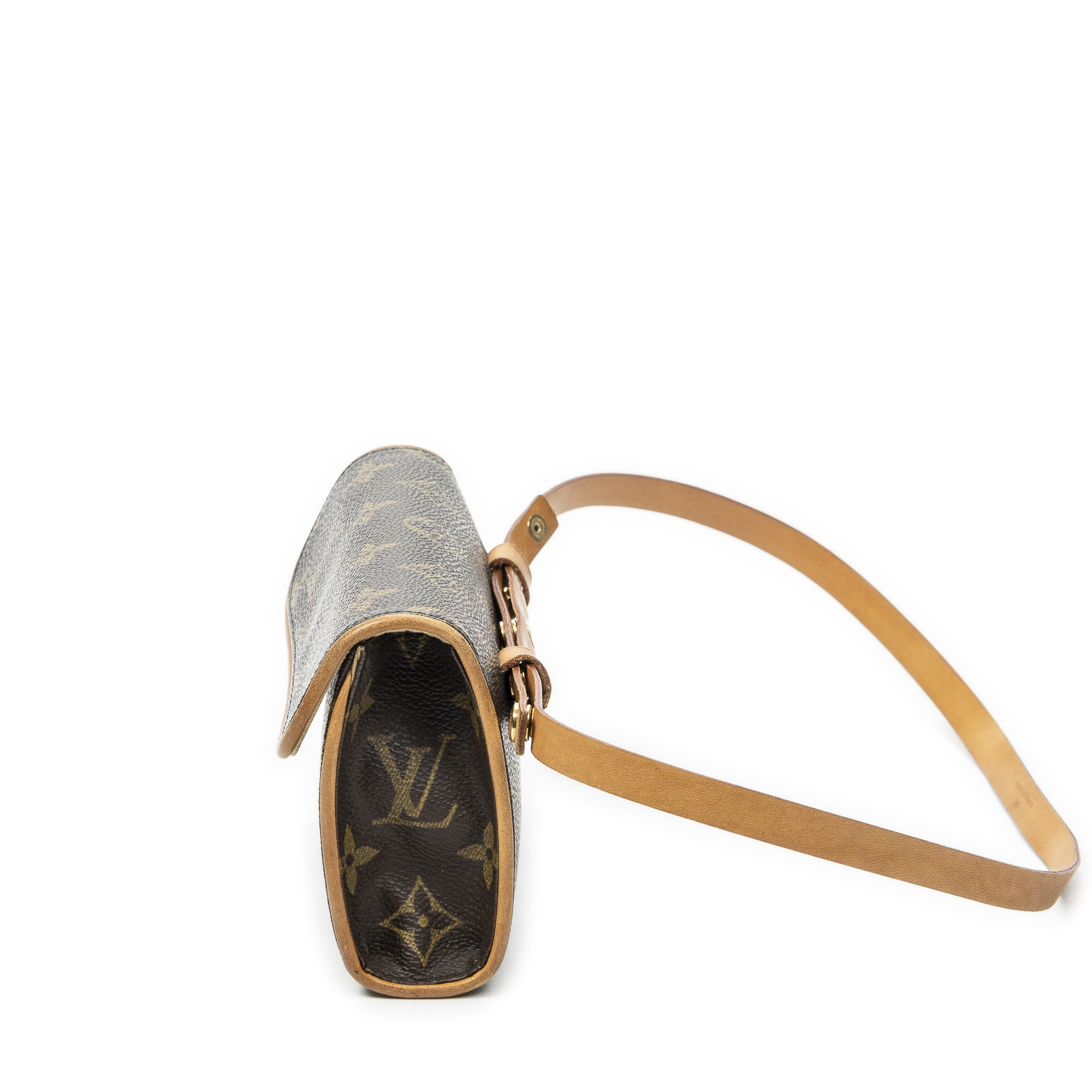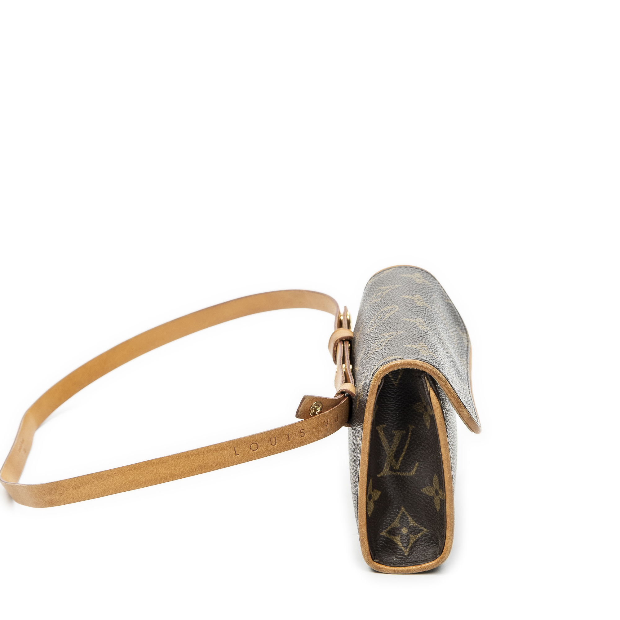 Louis Vuitton Waist Bag Florentine in Brown Monogram Canvas and Golden Brass hardware. The product is in Very Good Condition (AB).