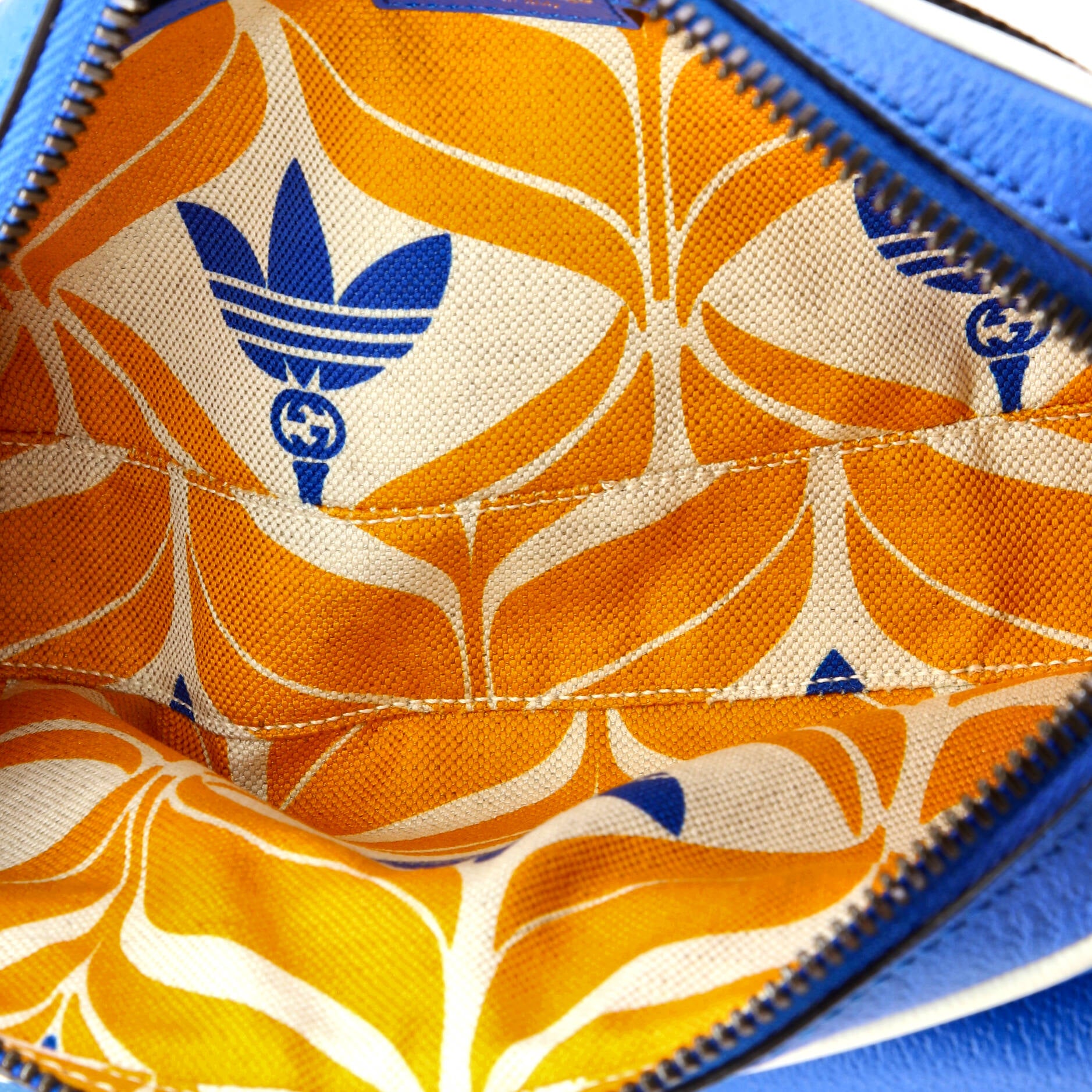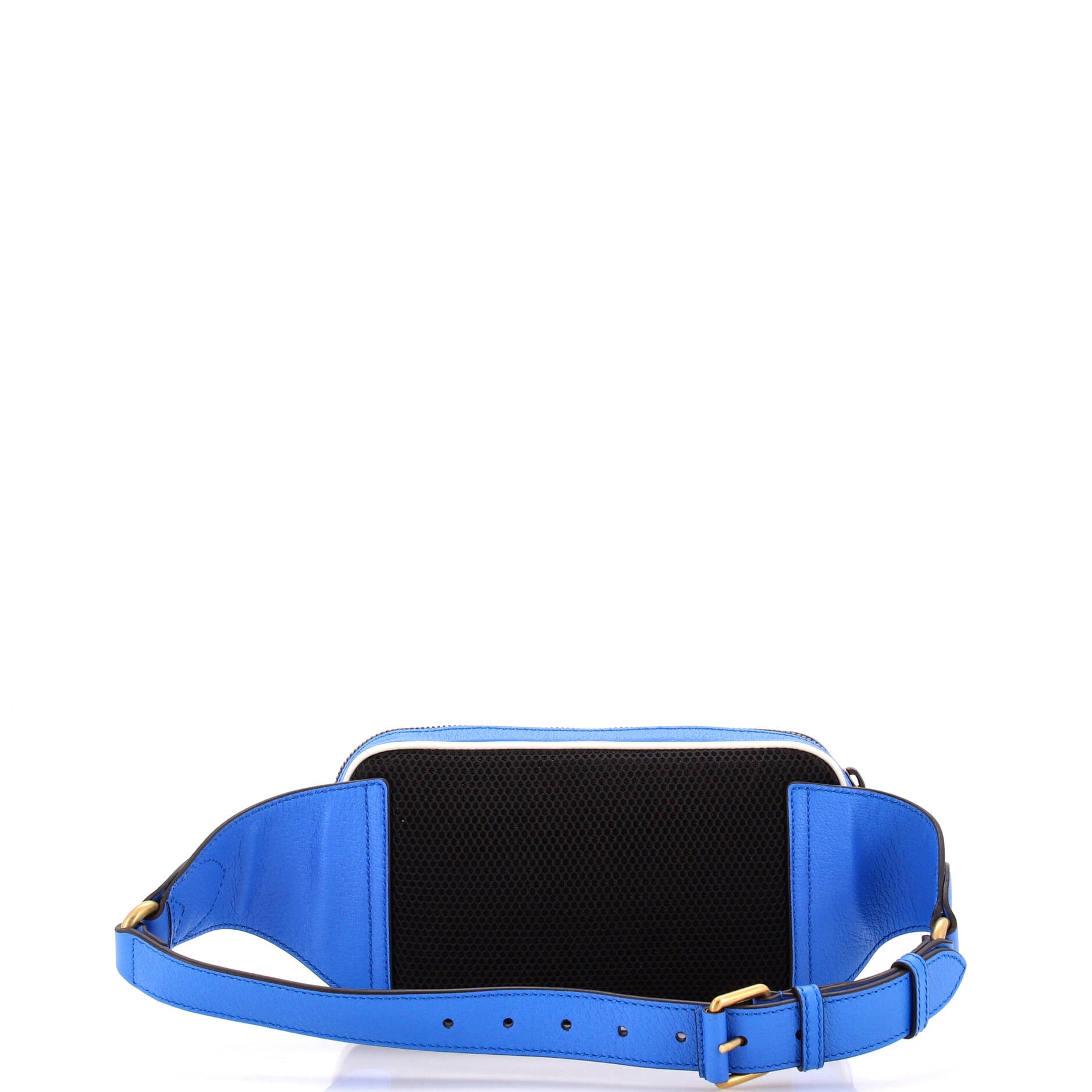 Gucci Waist Bag Ltd. Ed. Adidas Zip Belt Bag in Blue/White Calfskin Grained Leather and Gold hardware. The product is Like New (N).