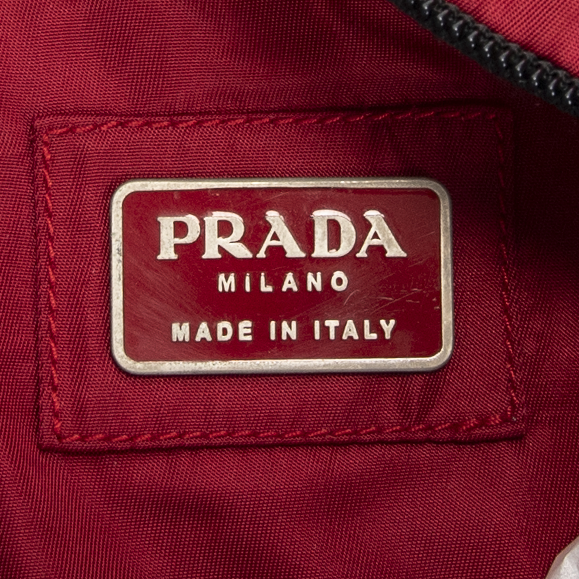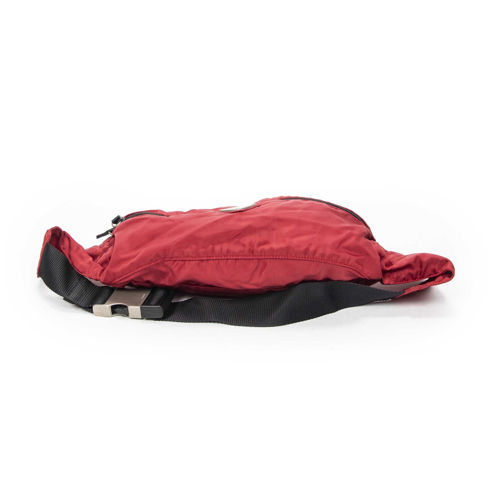 Prada Waist Bag Nylon Belt Bag in Red Nylon Canvas and Silver hardware. The product is in Excellent Condition (A).