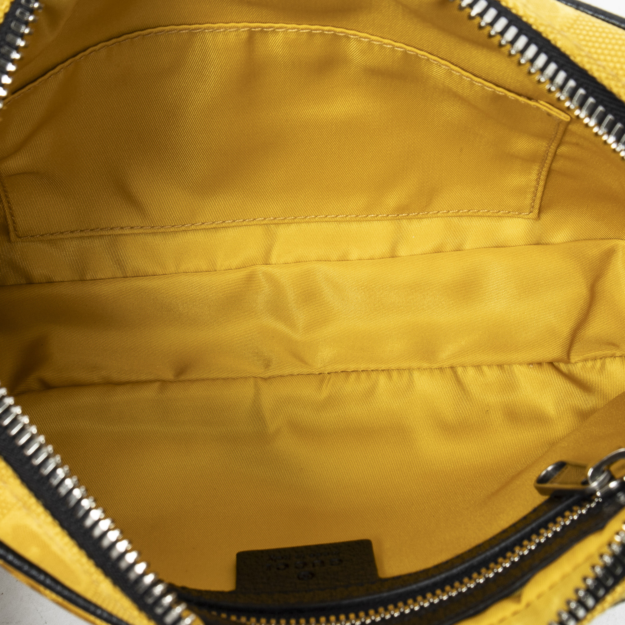 Gucci Waist Bag Off The Grid Belt Bag in Yellow/Black Monogrammed Nylon Canvas and Silver hardware. The product is in Perfect Condition (AA).
