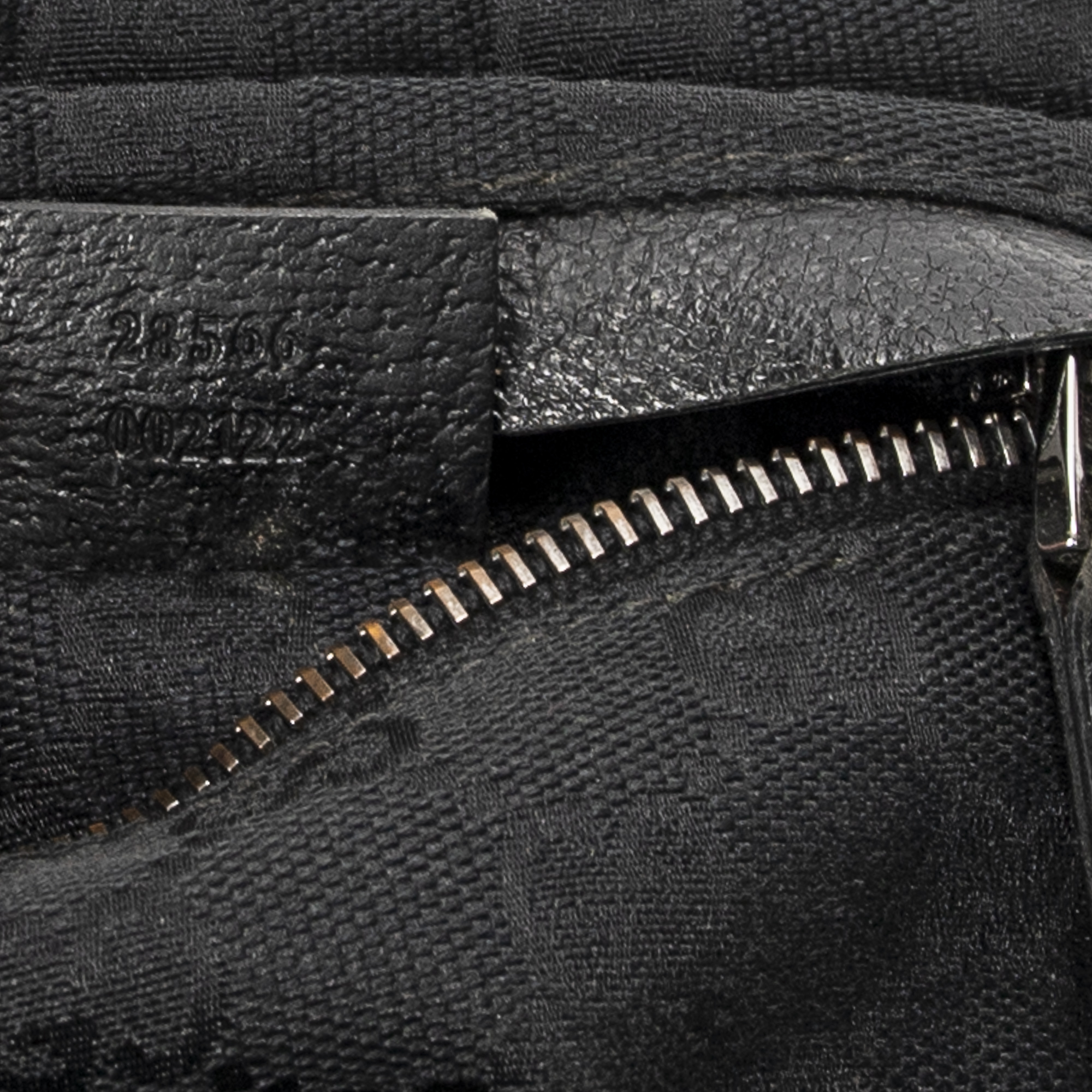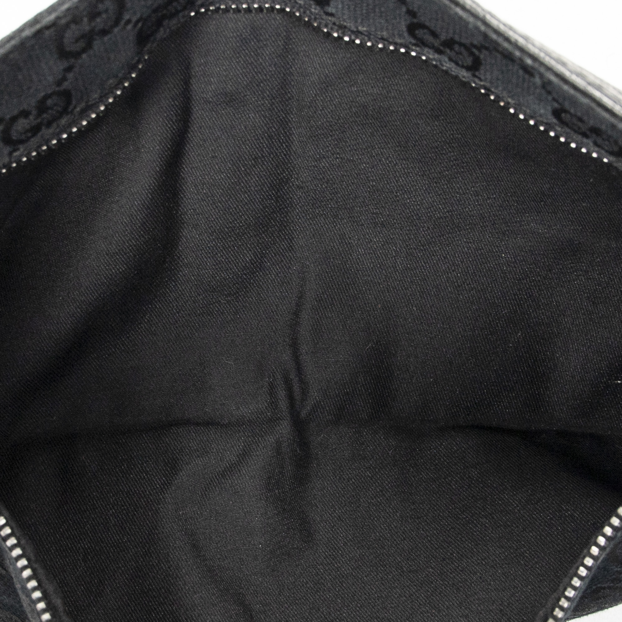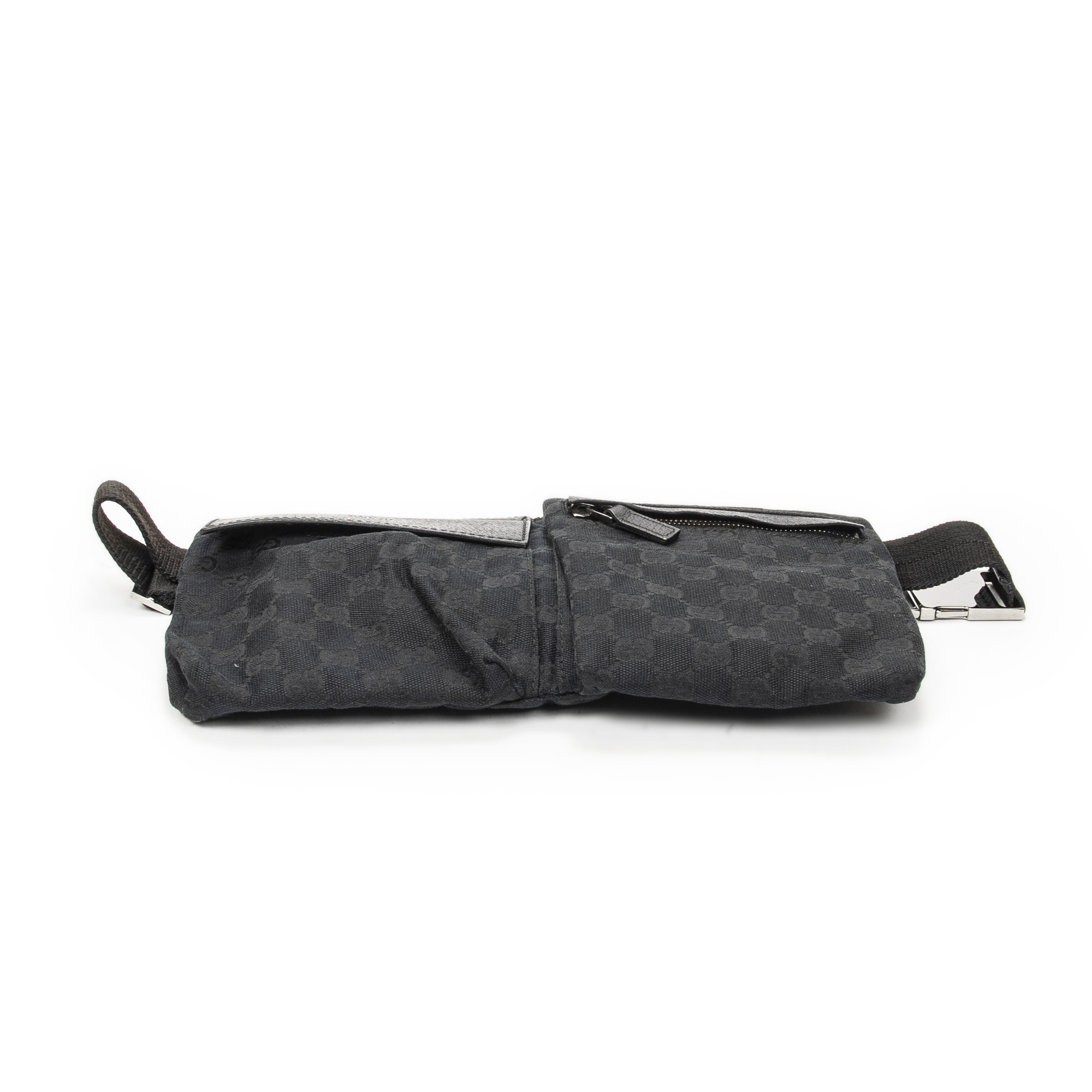 Gucci Waist Bag Waist Pouch in Black Monogrammed Canvas and Silver hardware. The product is in Excellent Condition (A).
