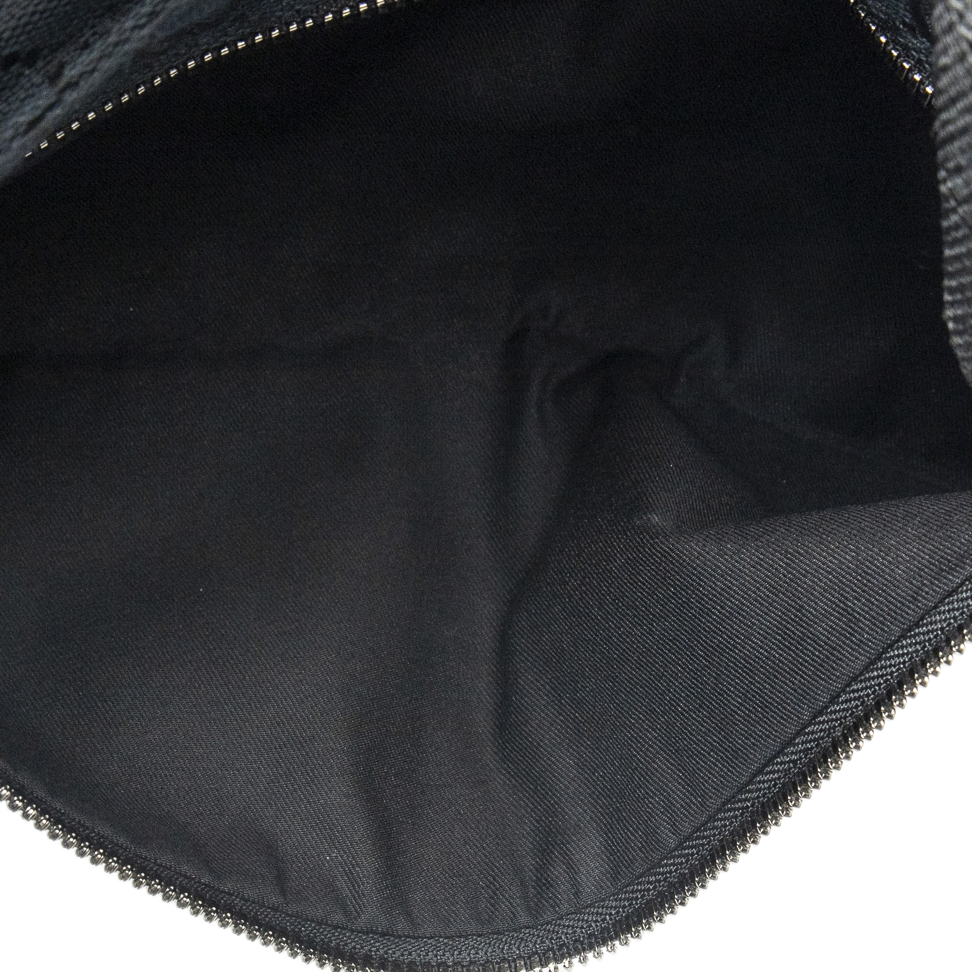 Gucci Waist Bag Waist Pouch in Black Monogrammed Canvas and Silver hardware. The product is in Excellent Condition (A).