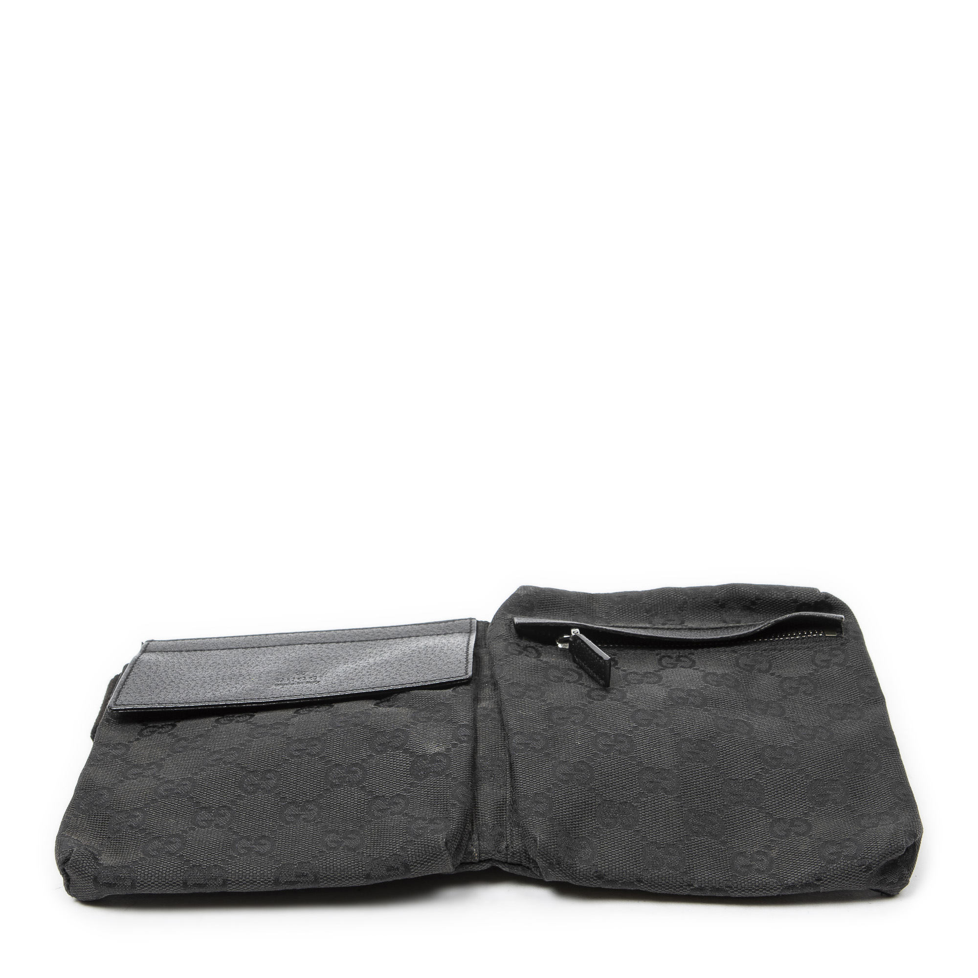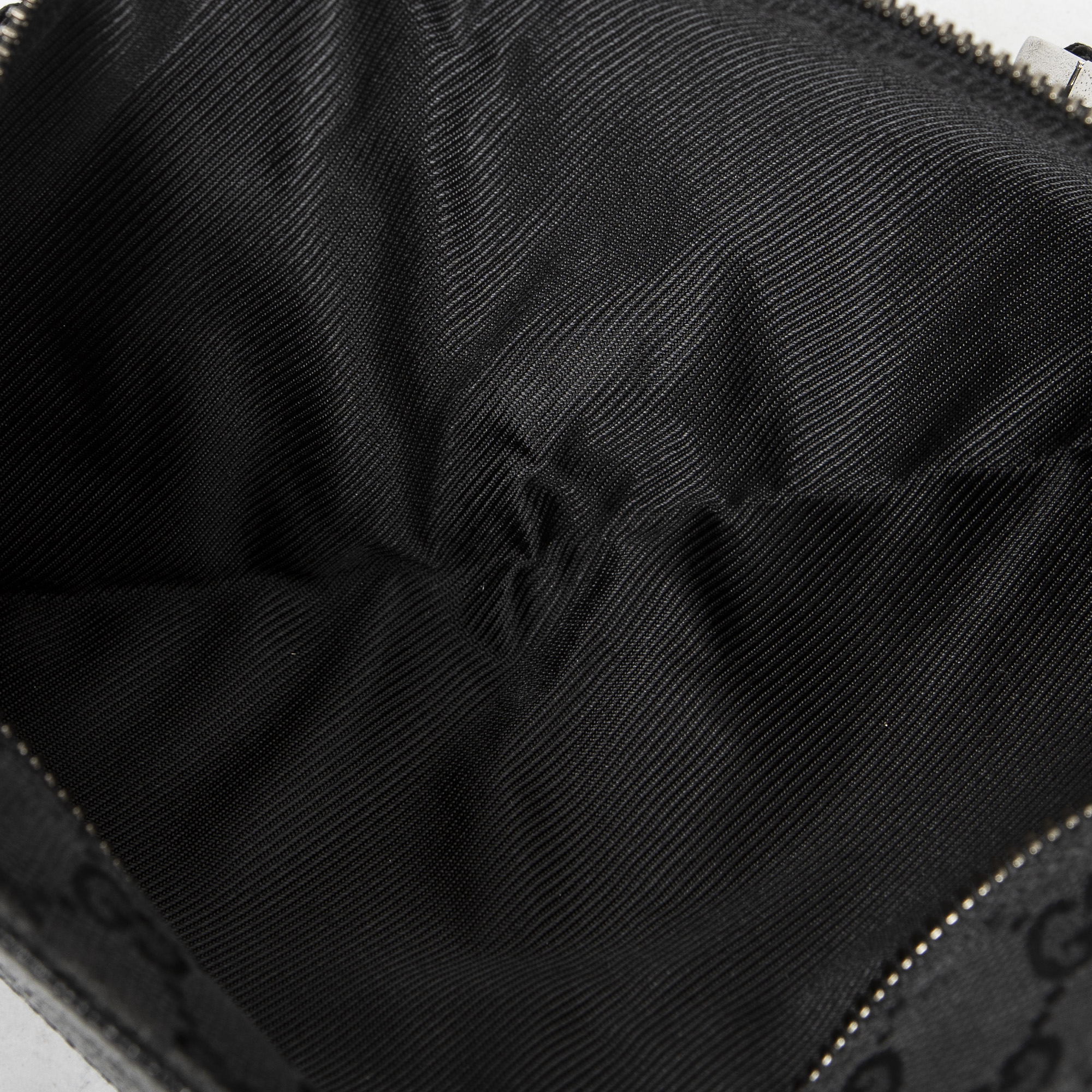 Gucci Waist Bag Waist Pouch in Black Monogrammed Canvas and Silver hardware. The product is in Very Good Condition (AB).