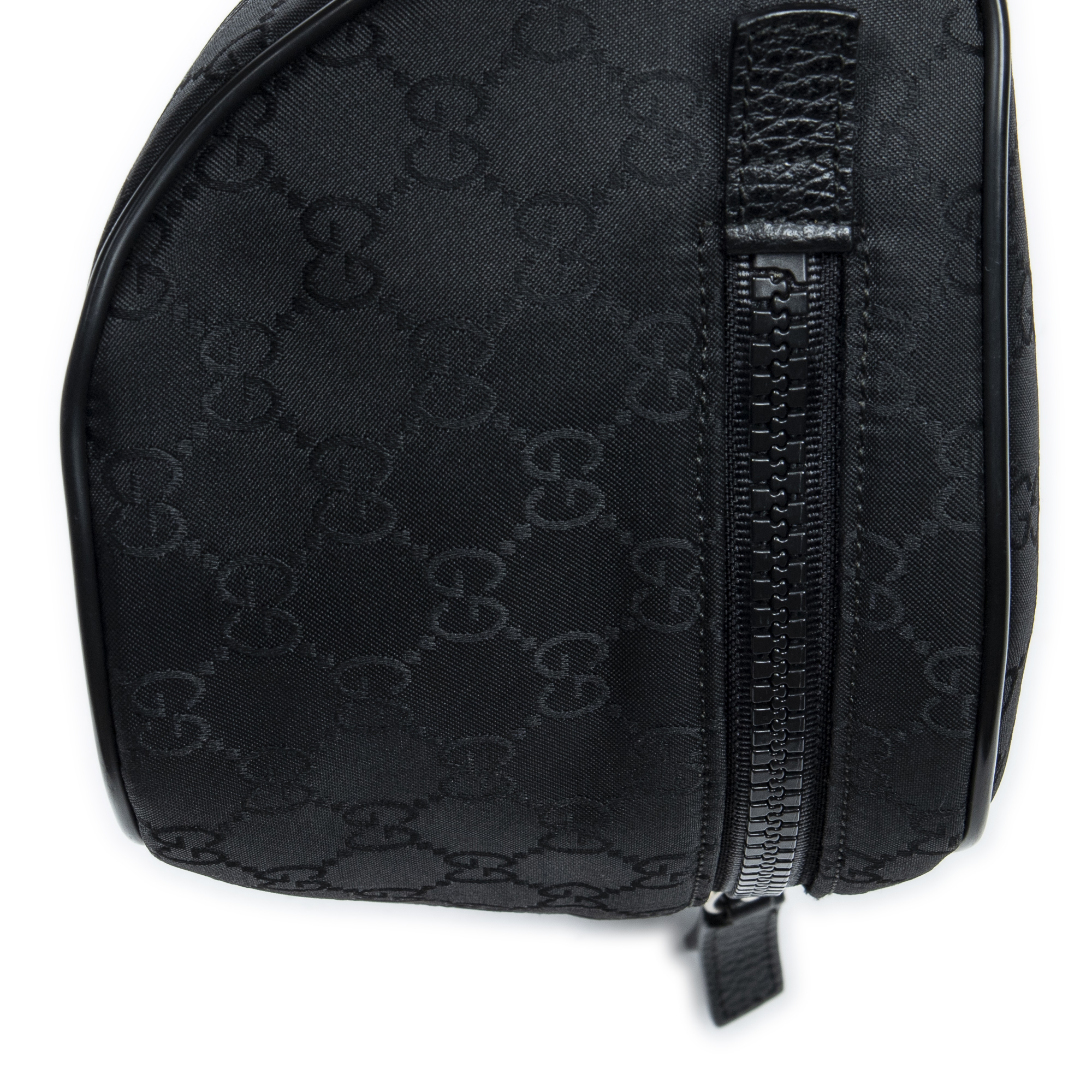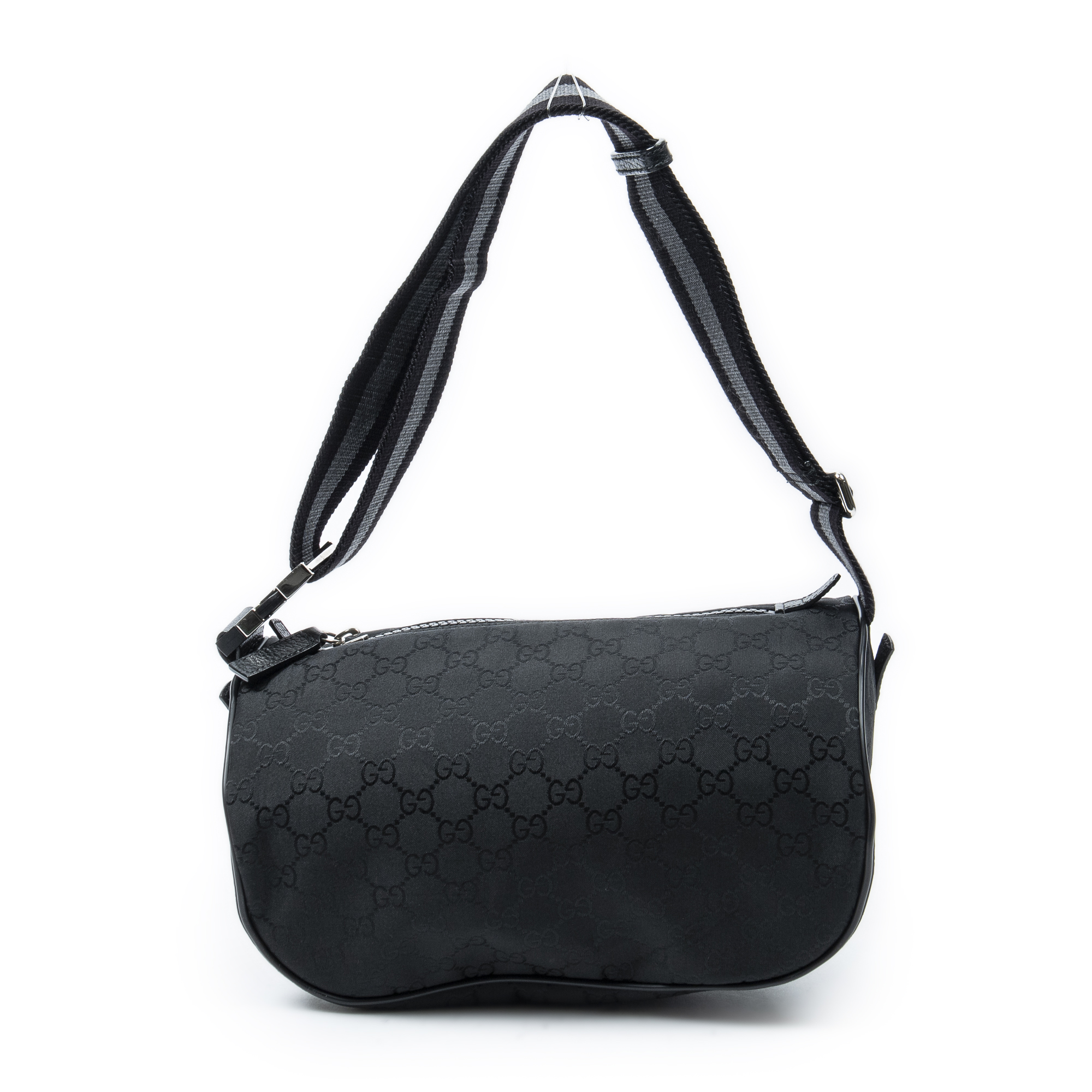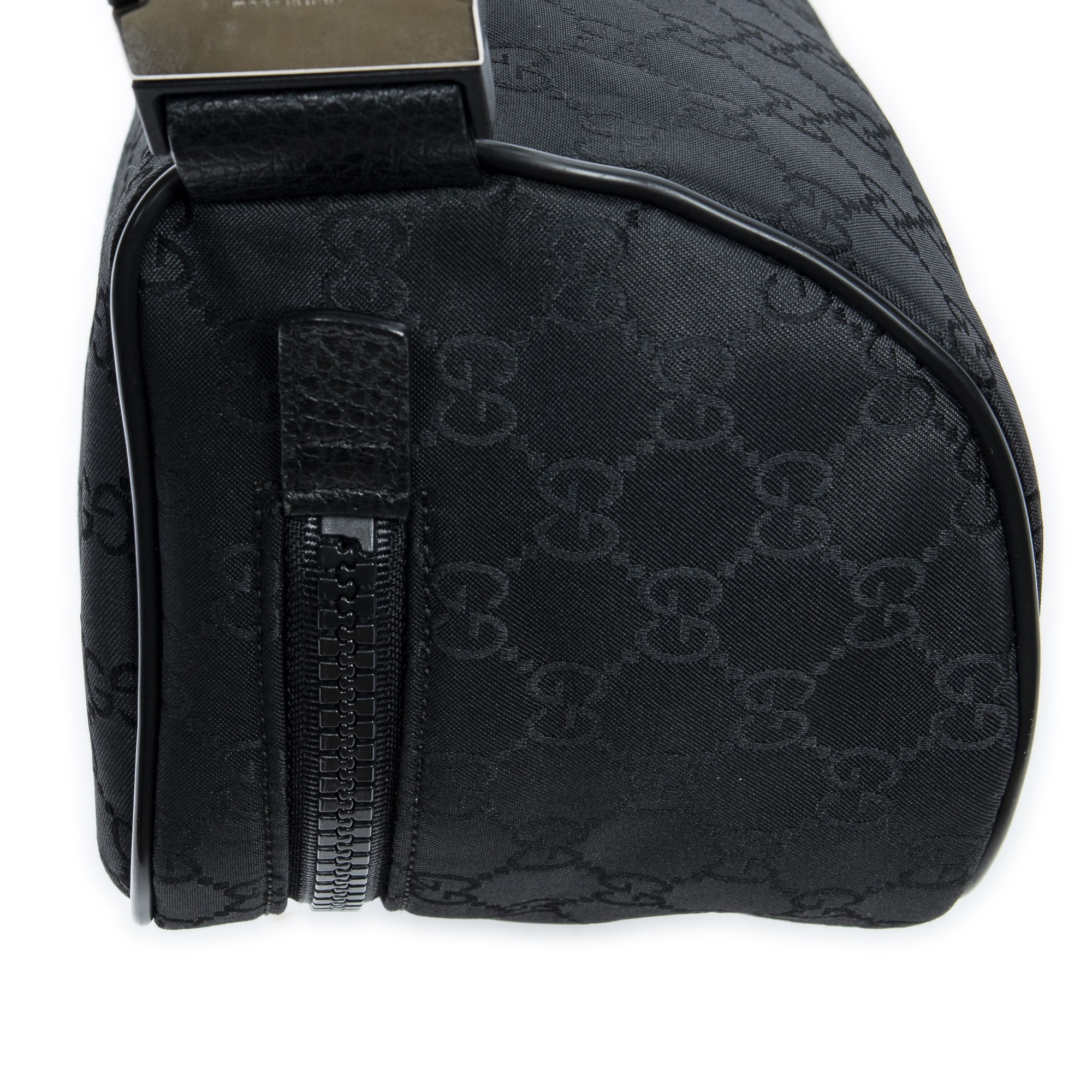 Gucci Waist Bag Web Belt Bag in Black Monogrammed Nylon Canvas and Silver hardware. The product is in Perfect Condition (AA).