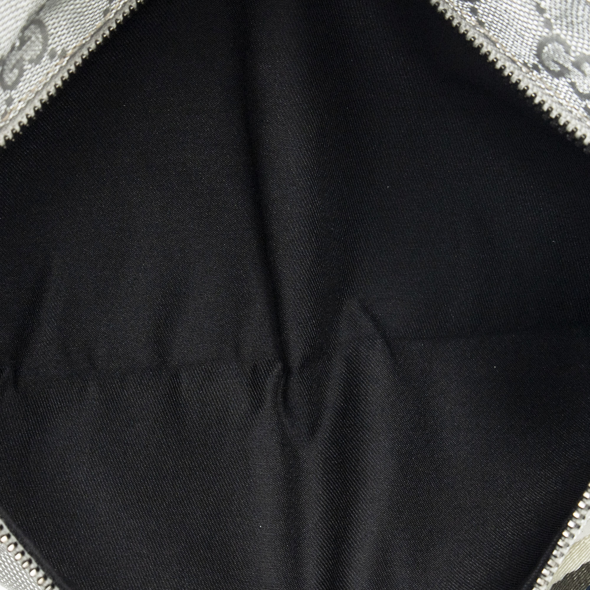 Gucci Waist Bag Web Waist Pouch in Silver Monogrammed Canvas and Silver hardware. The product is in Very Good Condition (AB).