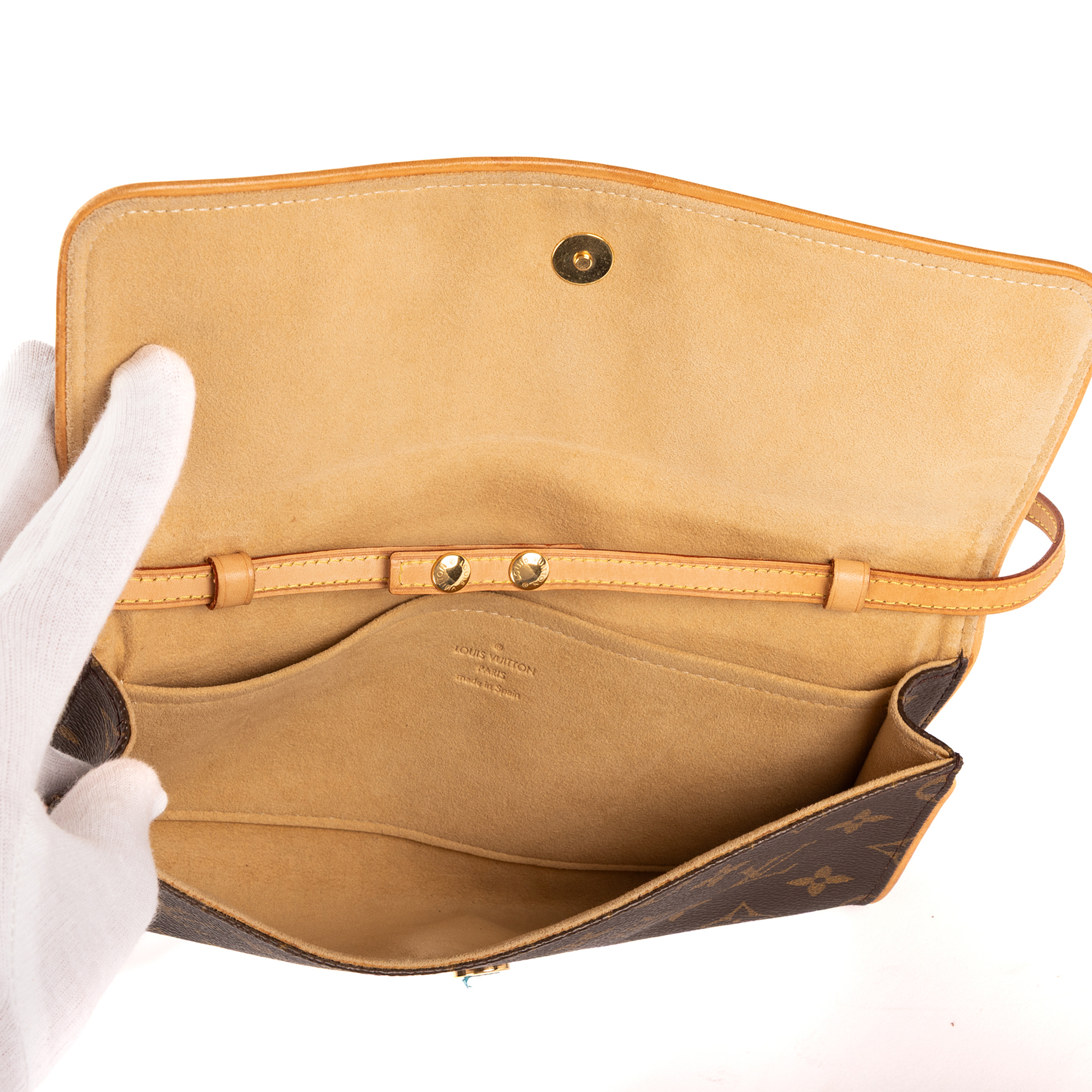 Louis Vuitton Crossbody Twin GM in Brown Monogram Canvas and Golden Brass hardware. The product is in Excellent Condition (A).