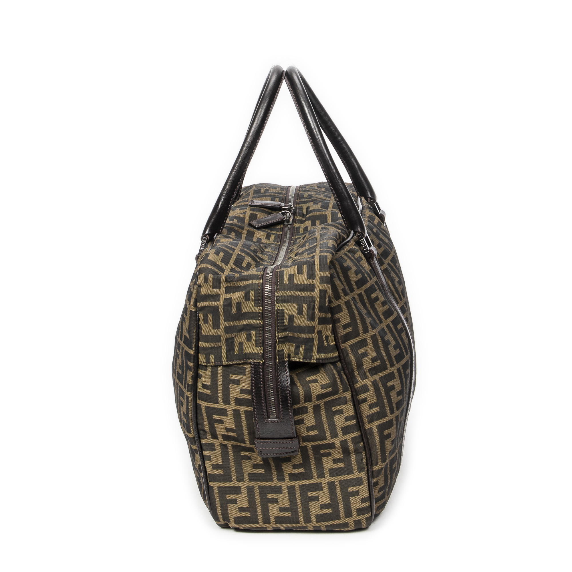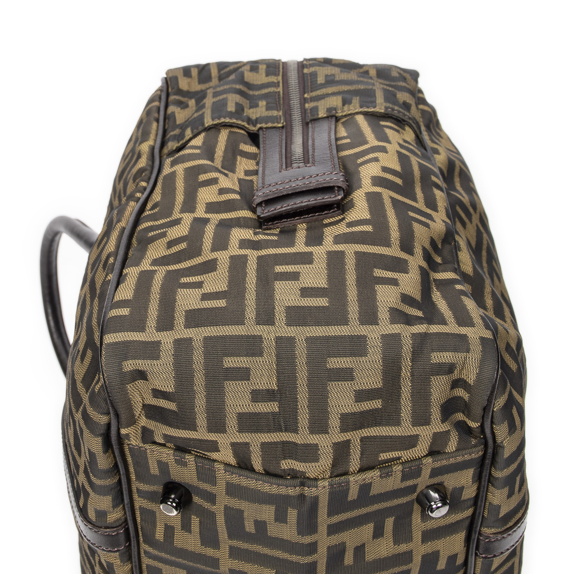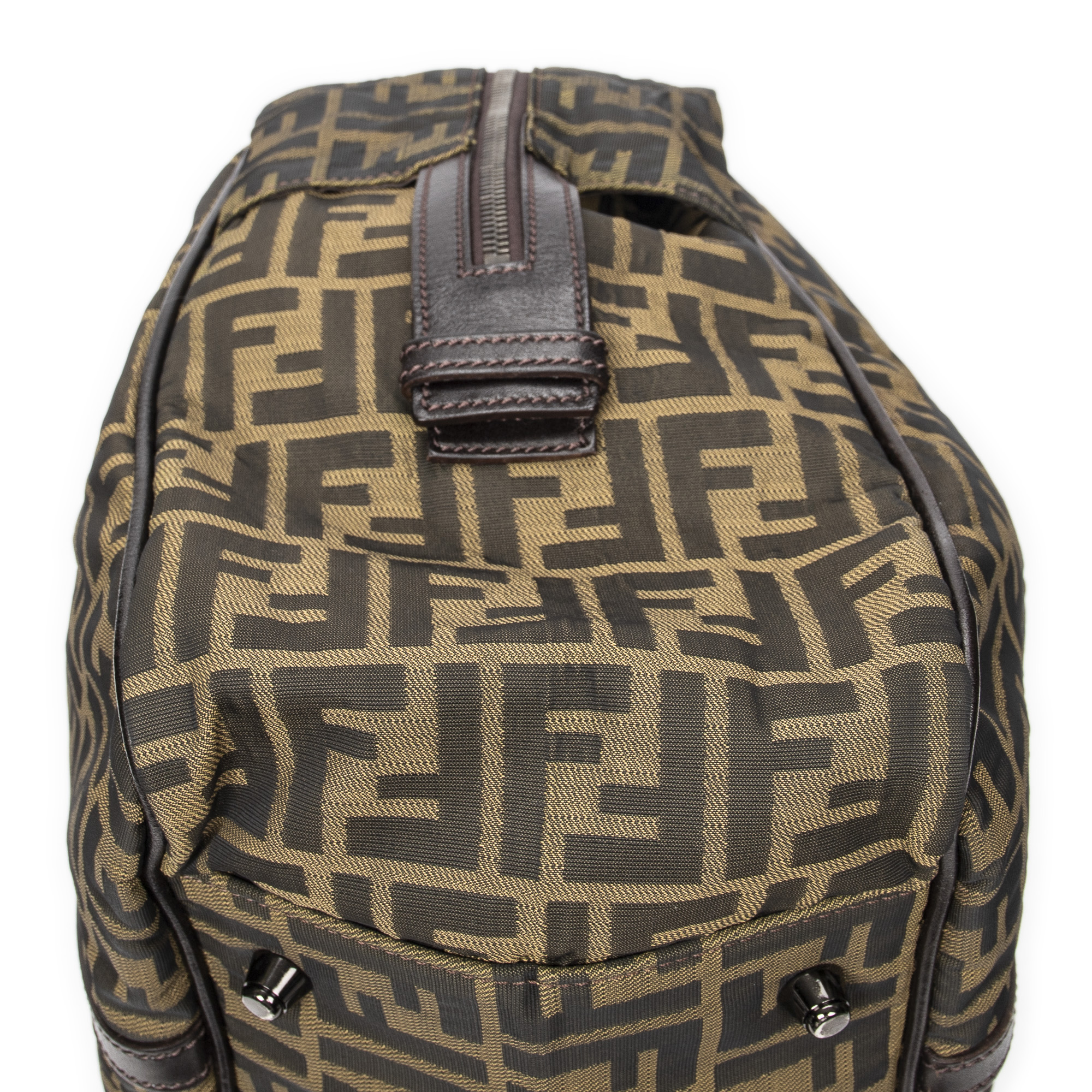 Fendi Handbag Duffle Bag in Tan/Dark Brown Zucca Canvas and Silver hardware. The product is in Excellent Condition (A).