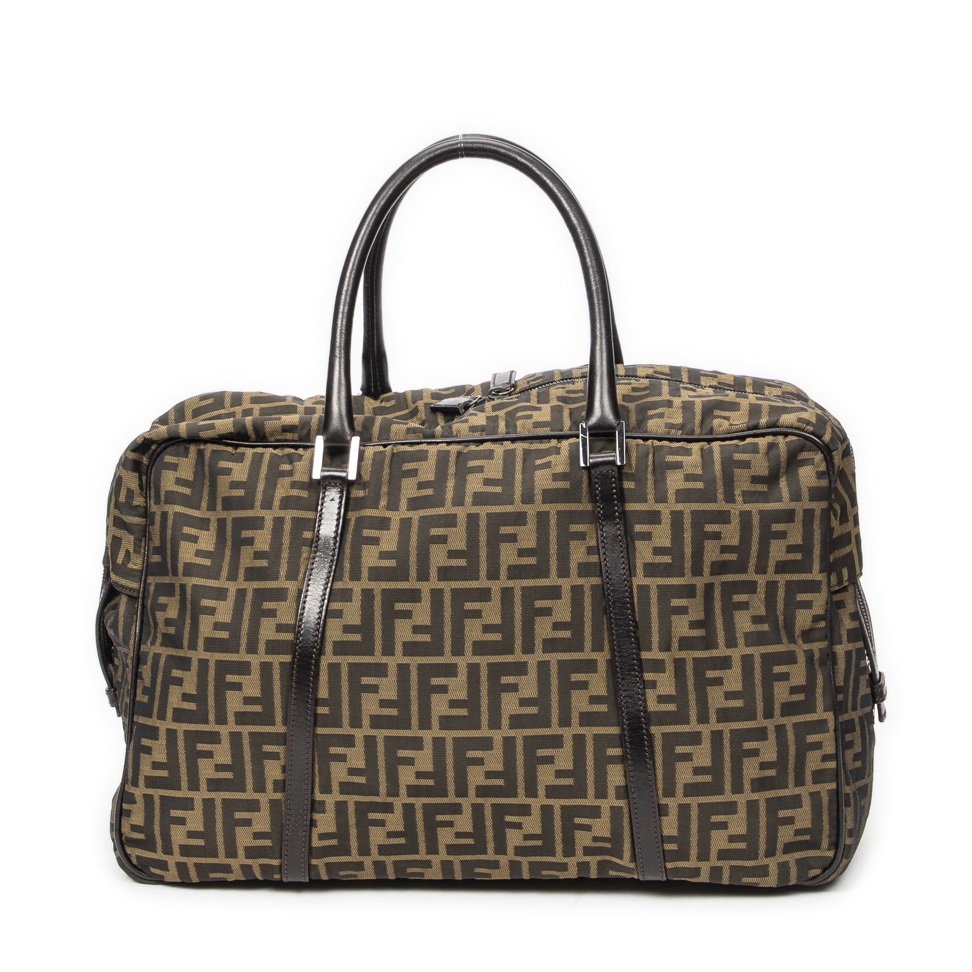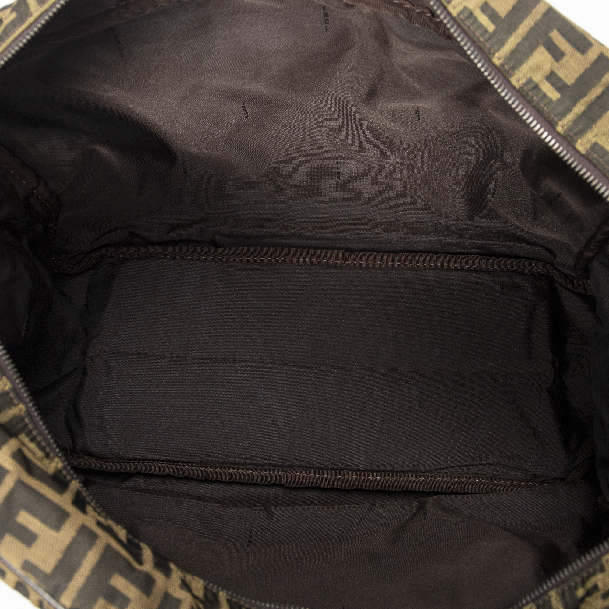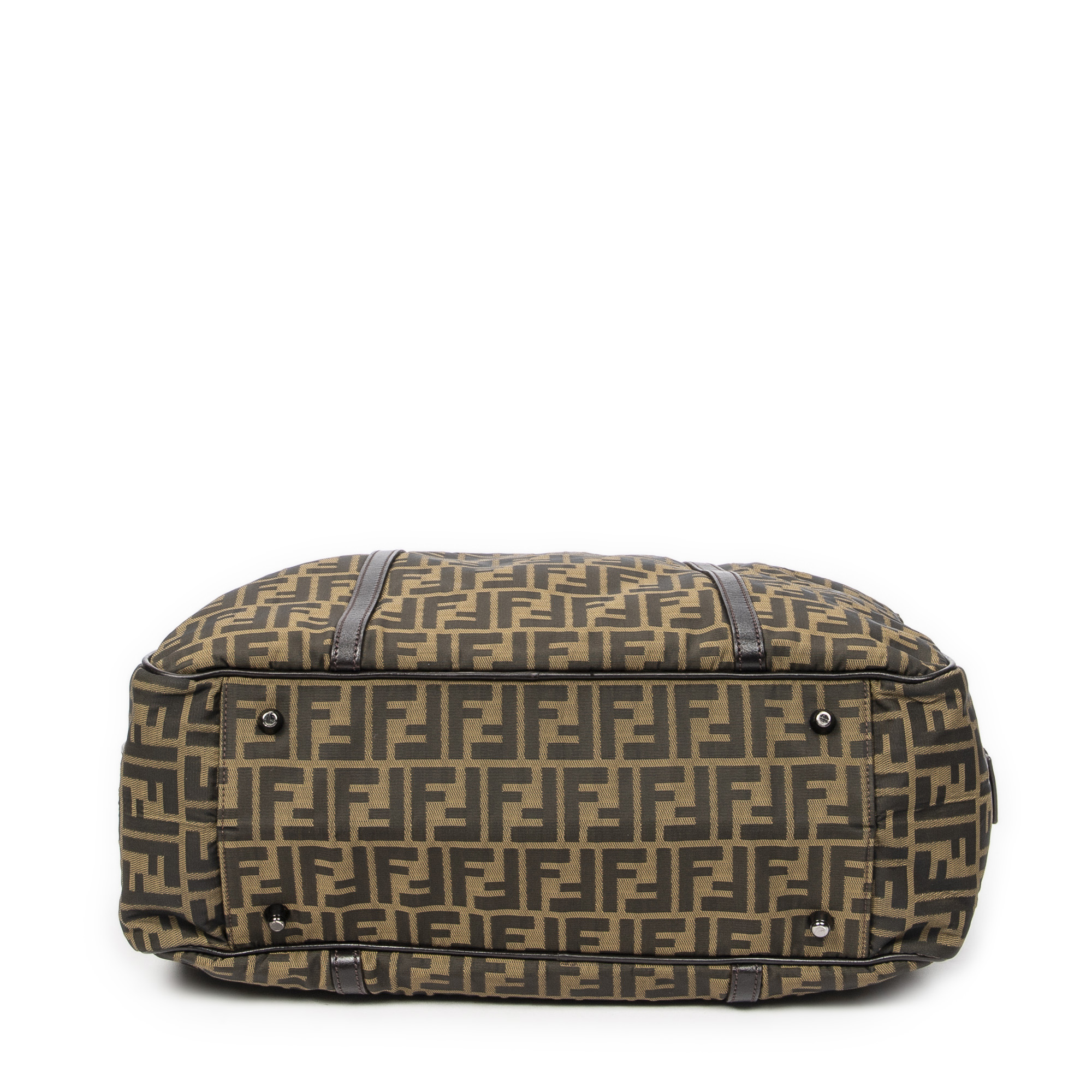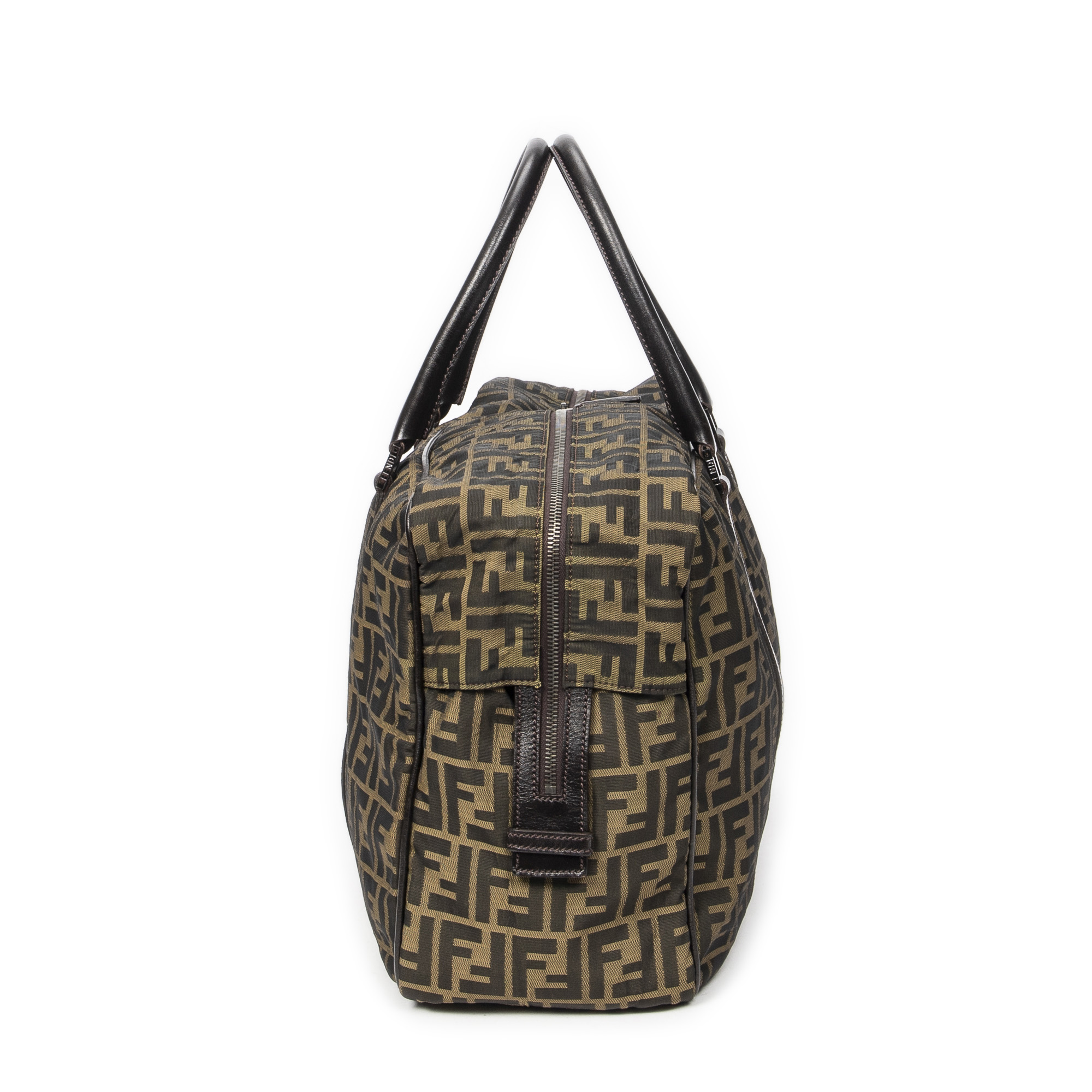 Fendi Handbag Duffle Bag in Tan/Dark Brown Zucca Canvas and Silver hardware. The product is in Excellent Condition (A).
