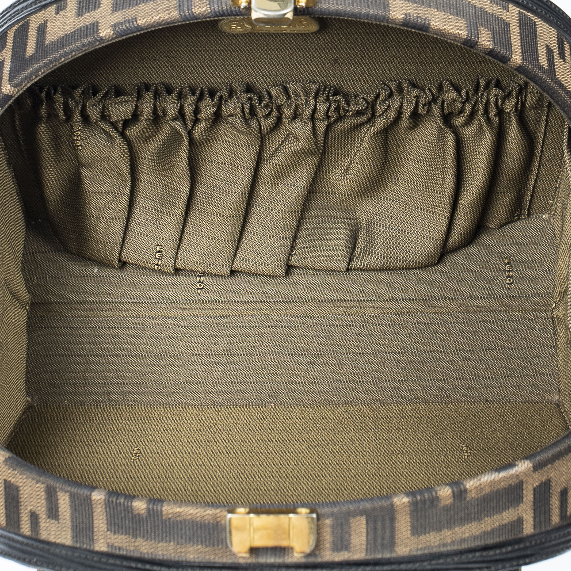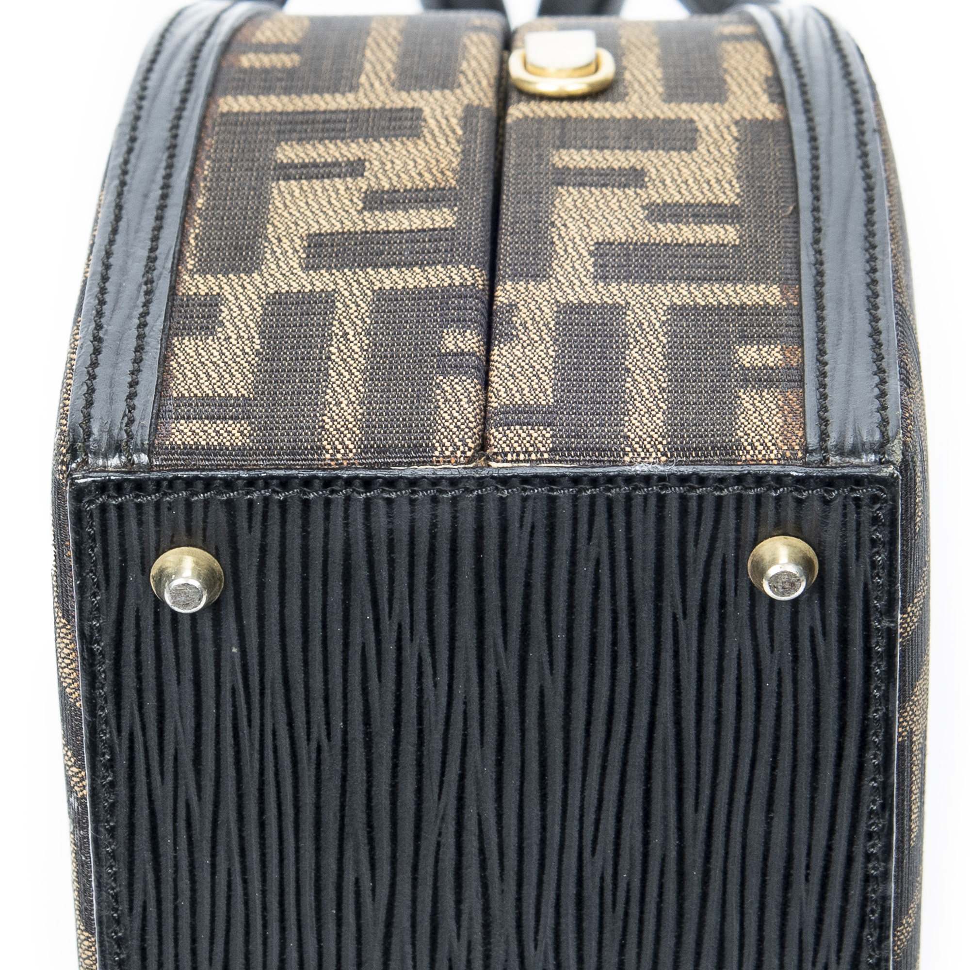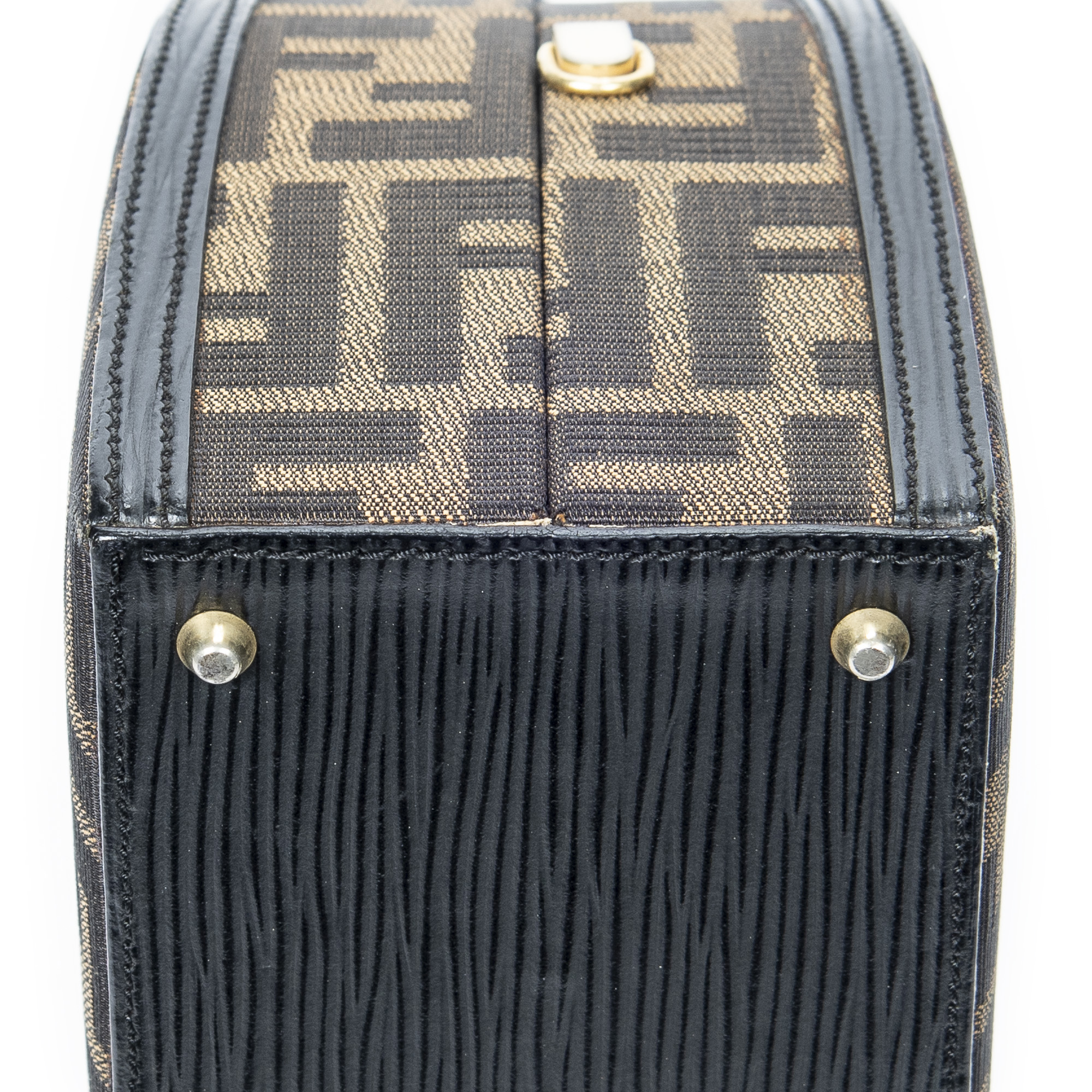 Fendi Handbag Frame Vanity Top Handle in Brown/Black Zucca Canvas and Gold hardware. The product is in Excellent Condition (A).