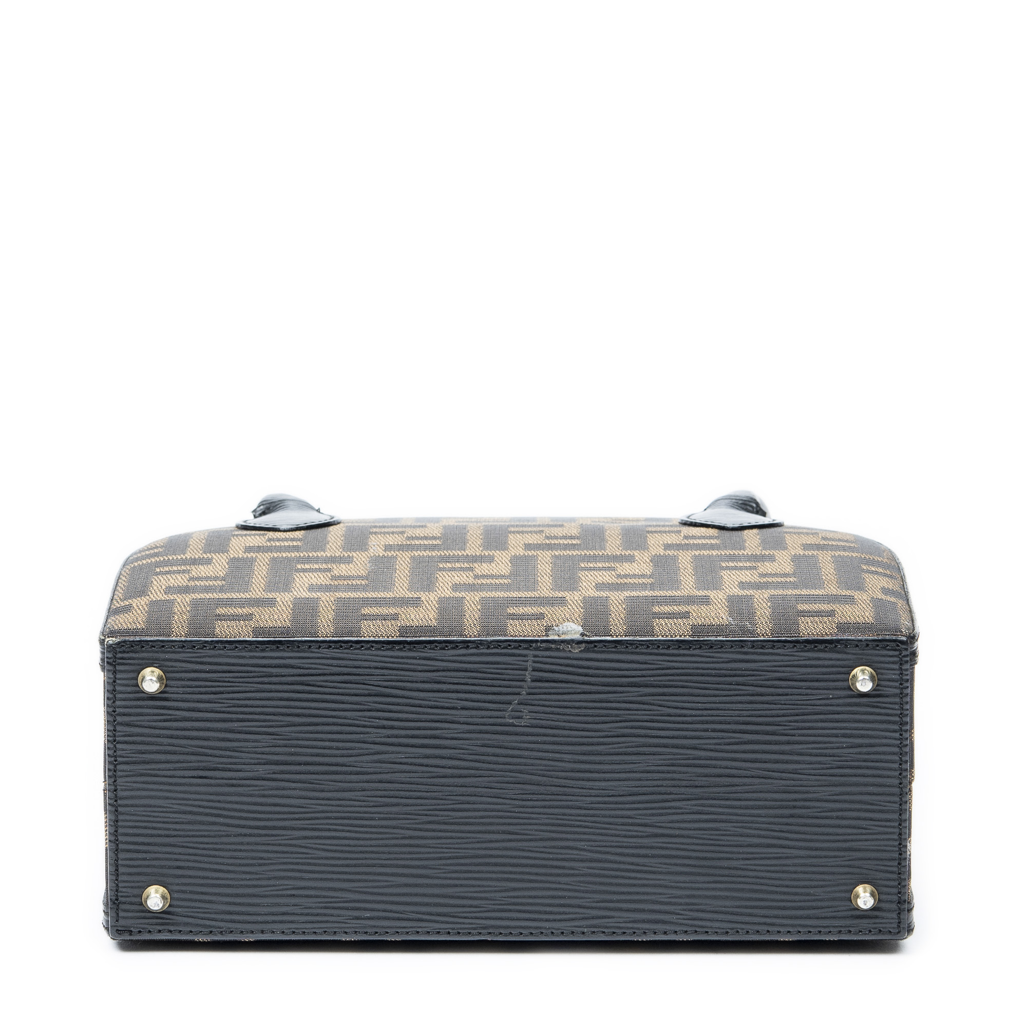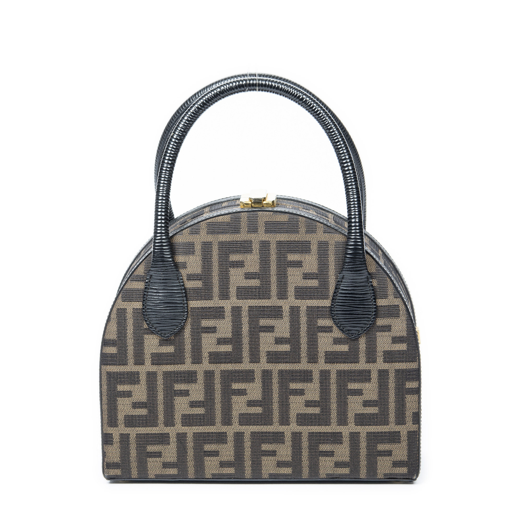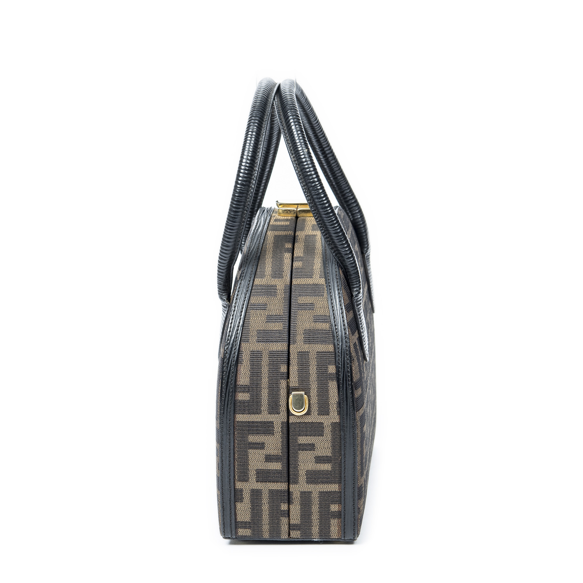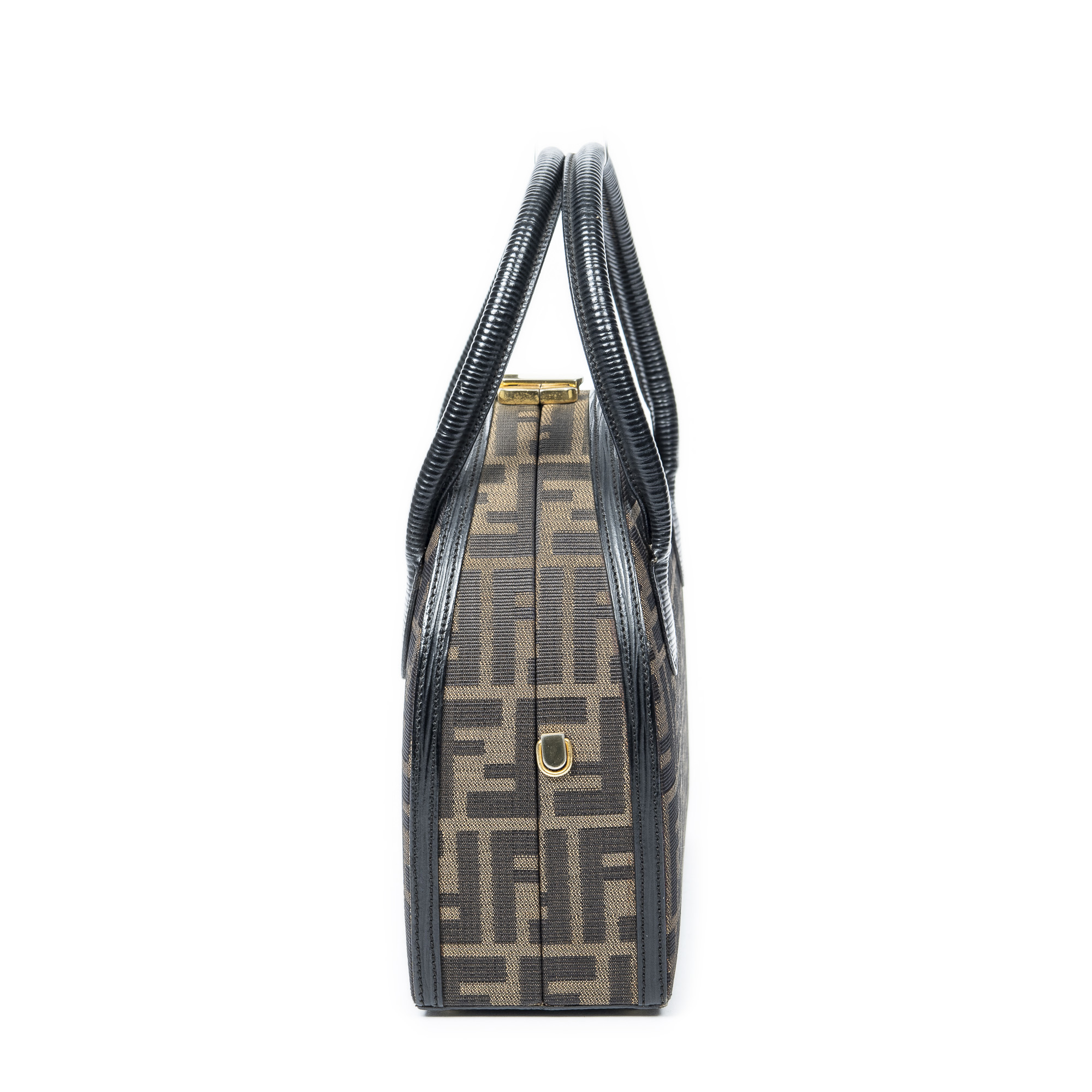 Fendi Handbag Frame Vanity Top Handle in Brown/Black Zucca Canvas and Gold hardware. The product is in Excellent Condition (A).