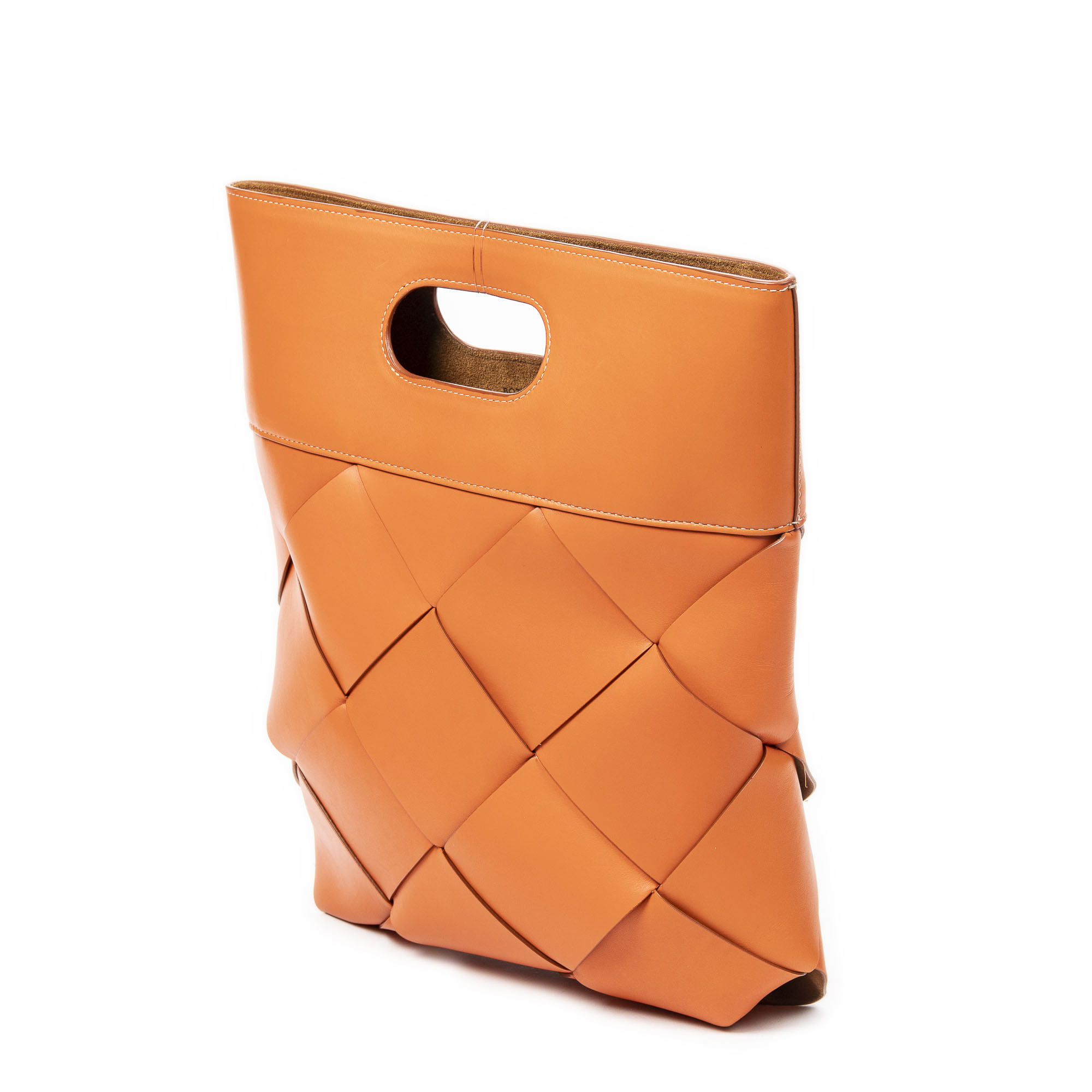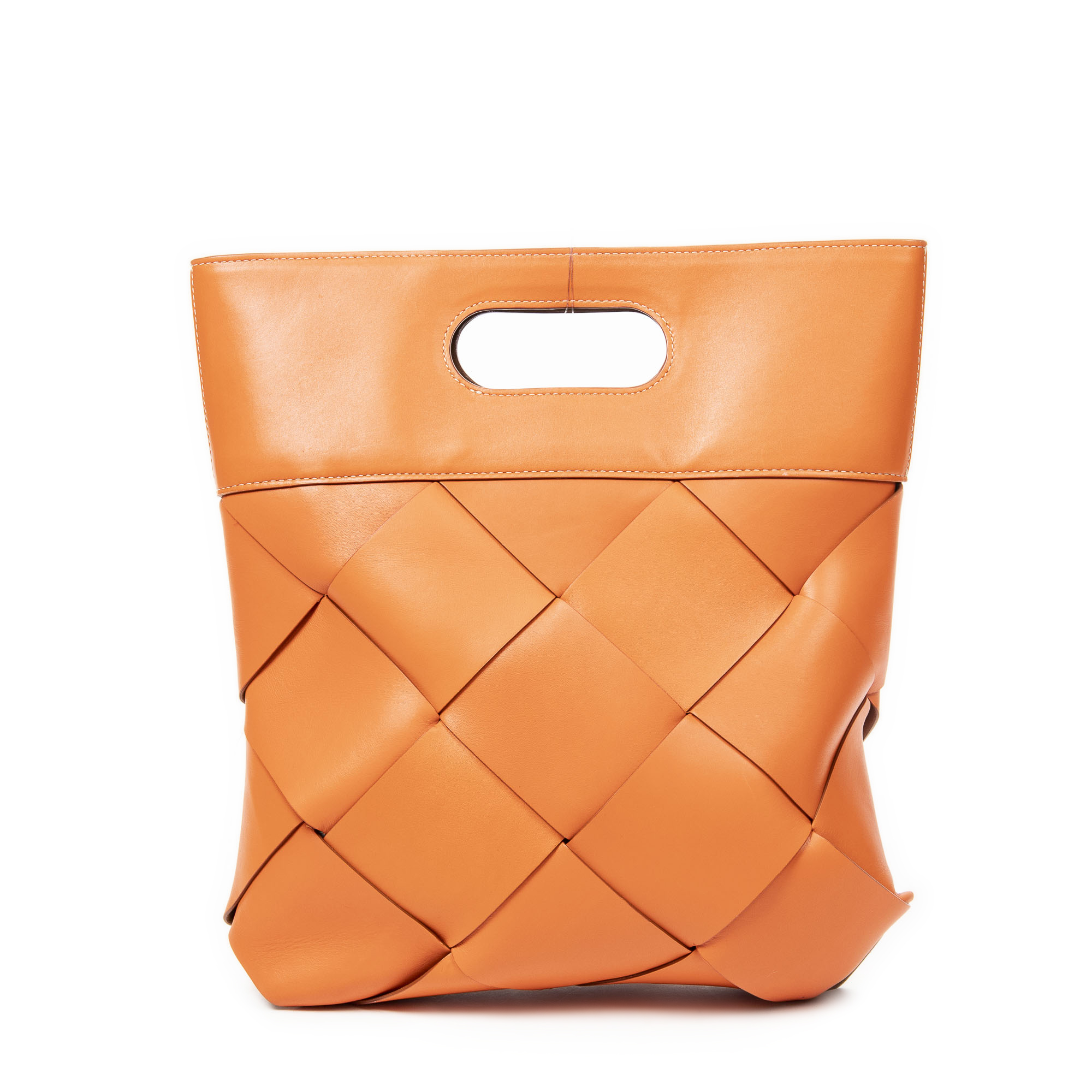 Bottega Veneta Handbag Slip Tote in Orange Maxi Intrecciato Leather and Gold hardware. The product is in Perfect Condition (AA).