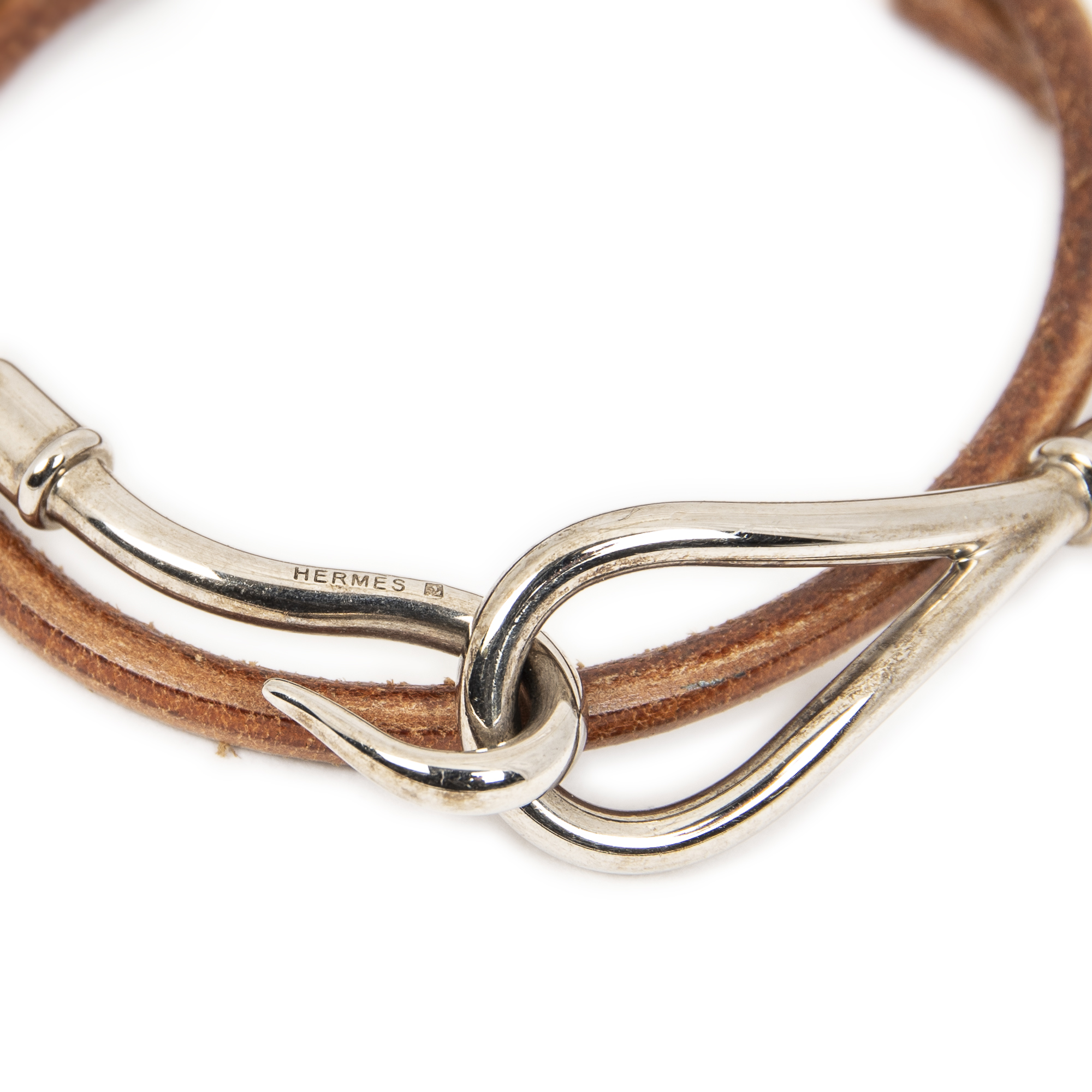 Hermès Bracelet Jumbo Hook Double Tour Bracelet in Brown Calfskin Leather and Silver hardware. The product is in Very Good Condition (AB).