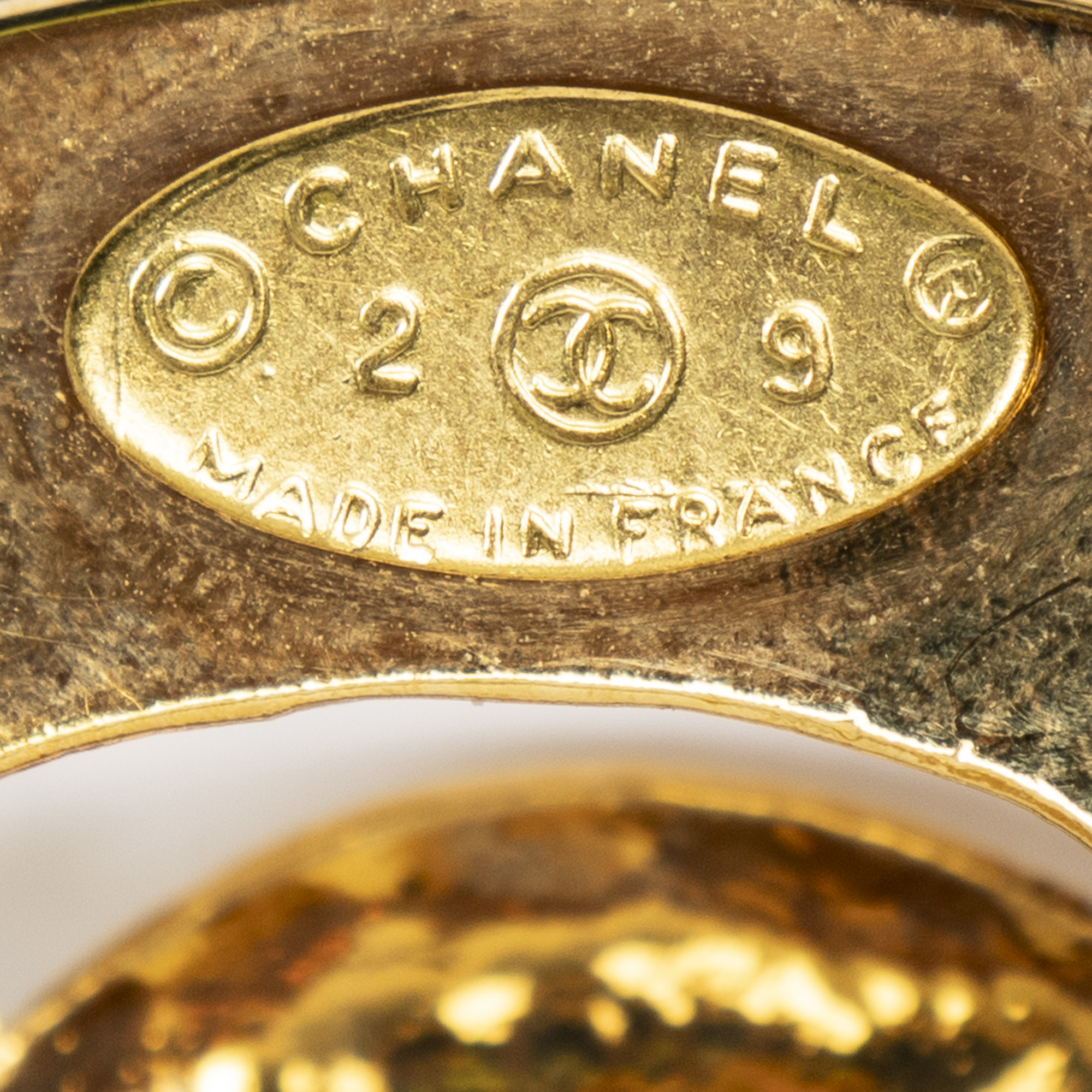 Chanel Brooch CC Oval Brooch in Gold Gold Plated and Gold Plated hardware. The product is in Excellent Condition (A).