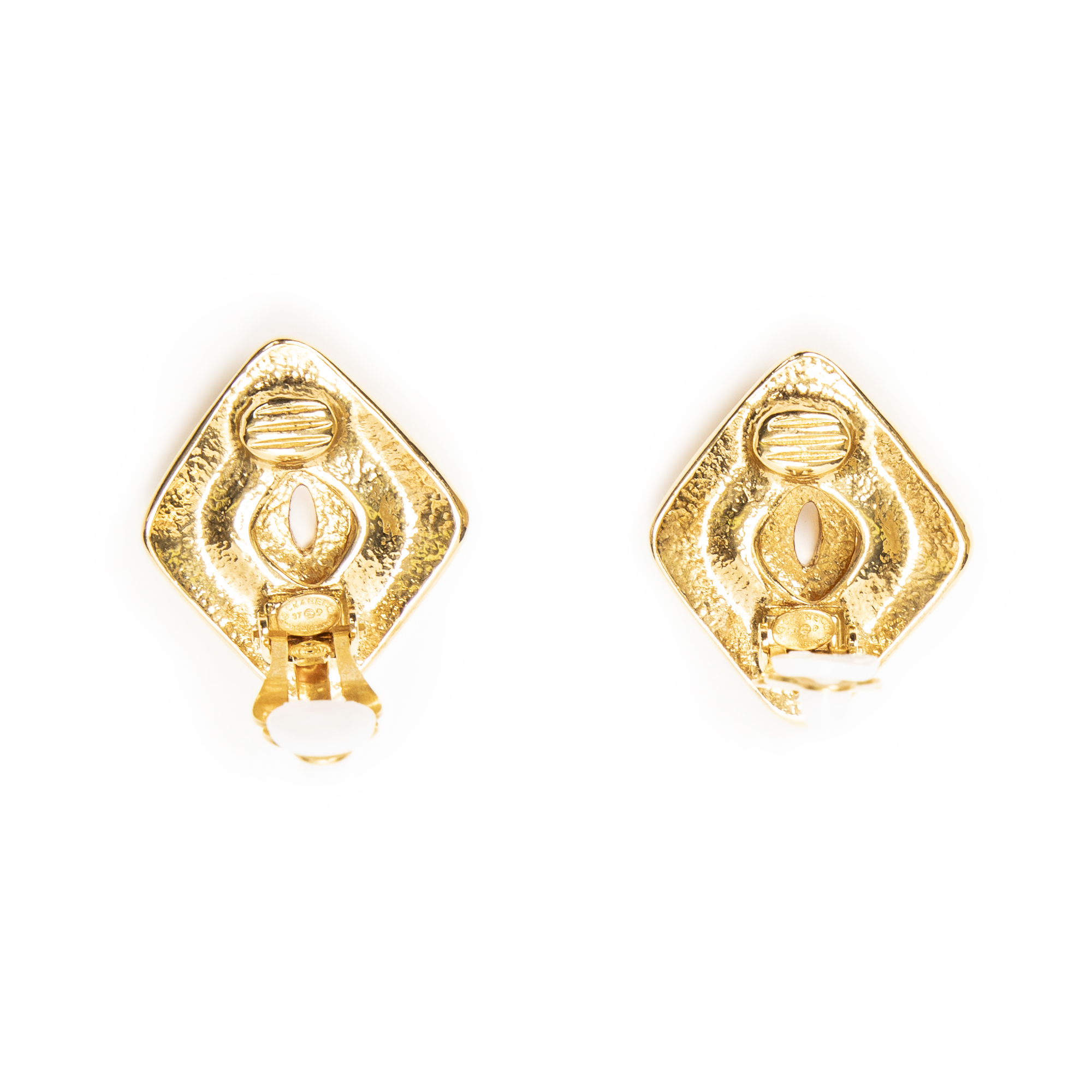 Chanel Earrings CC Diamond Clip On Earrings in Gold Gold Plated and Gold Plated hardware. The product is in Perfect Condition (AA).